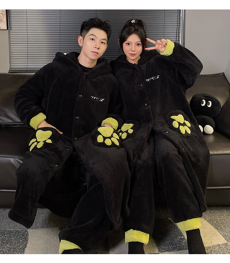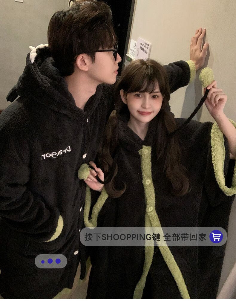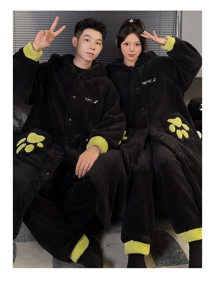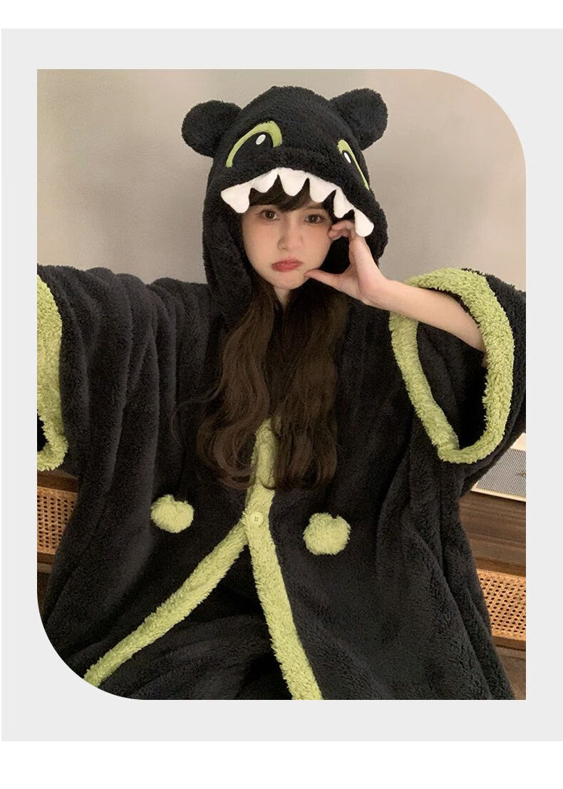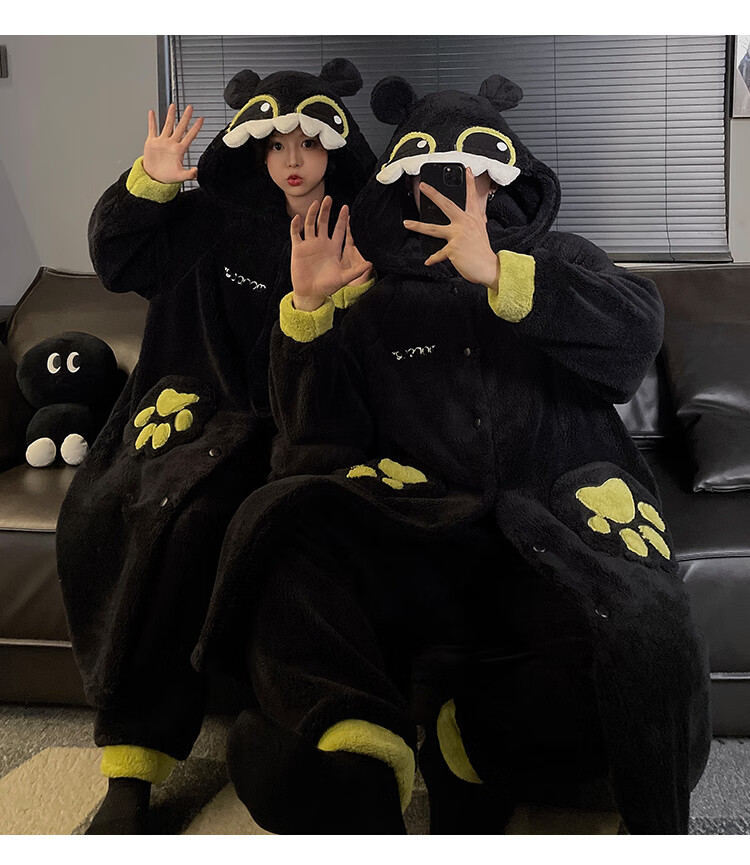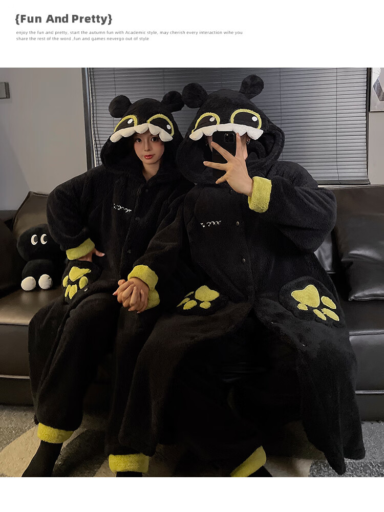 Toothless pajamas couple's pajamas women's autumn and winter coral velvet thickened flannel men's black home clothes winter nightgown + pants #66745 (girls are the wide-sleeved version) 66319 2XL male (weight 145-170