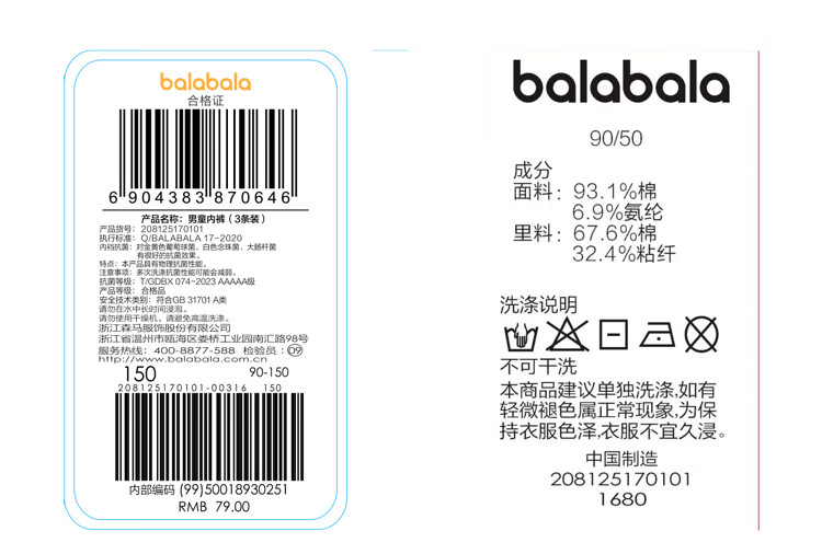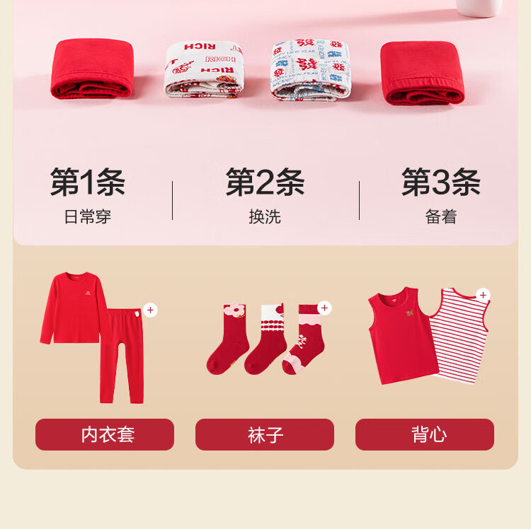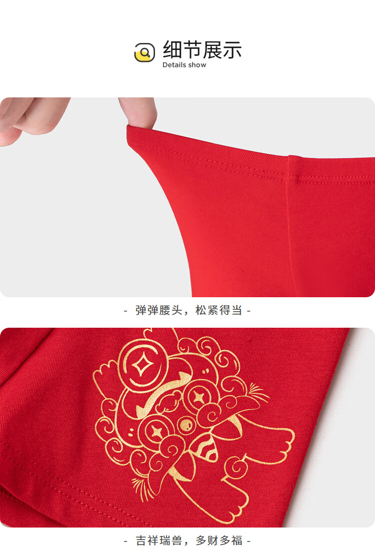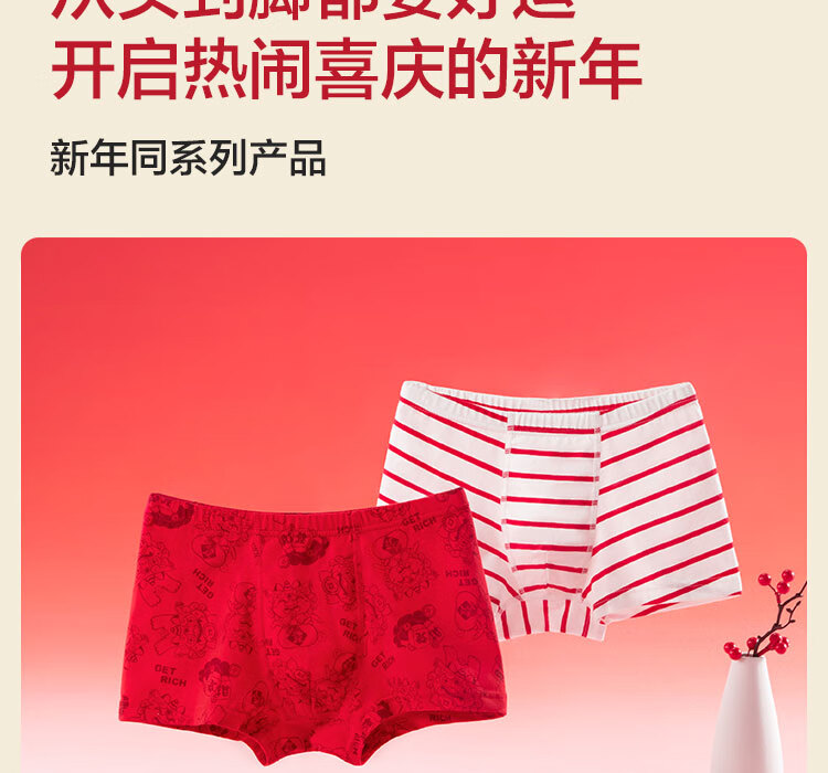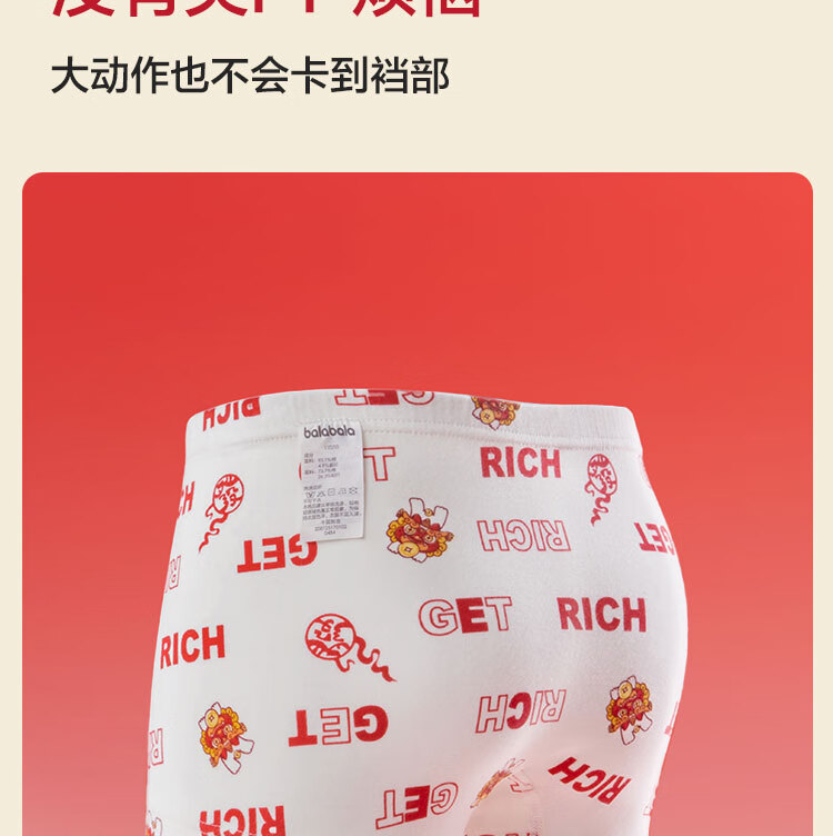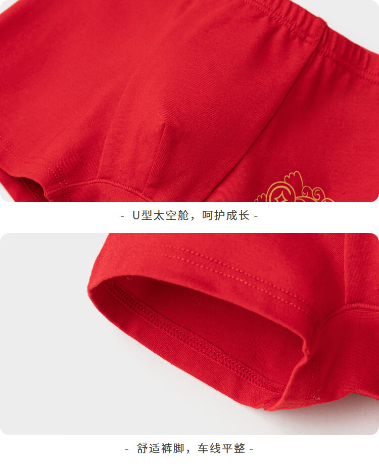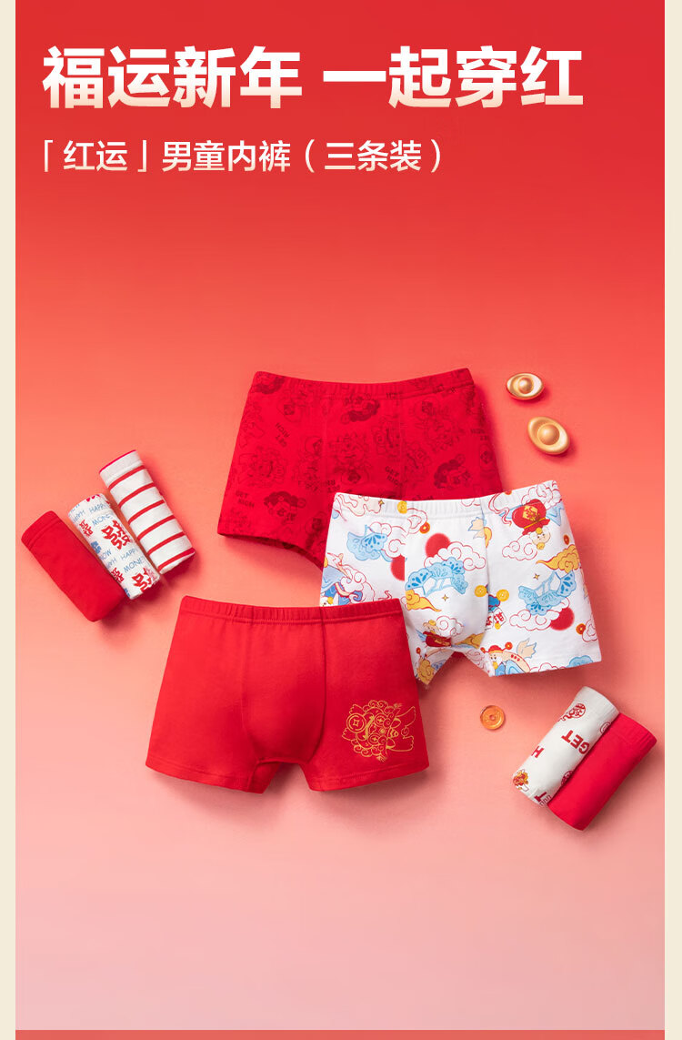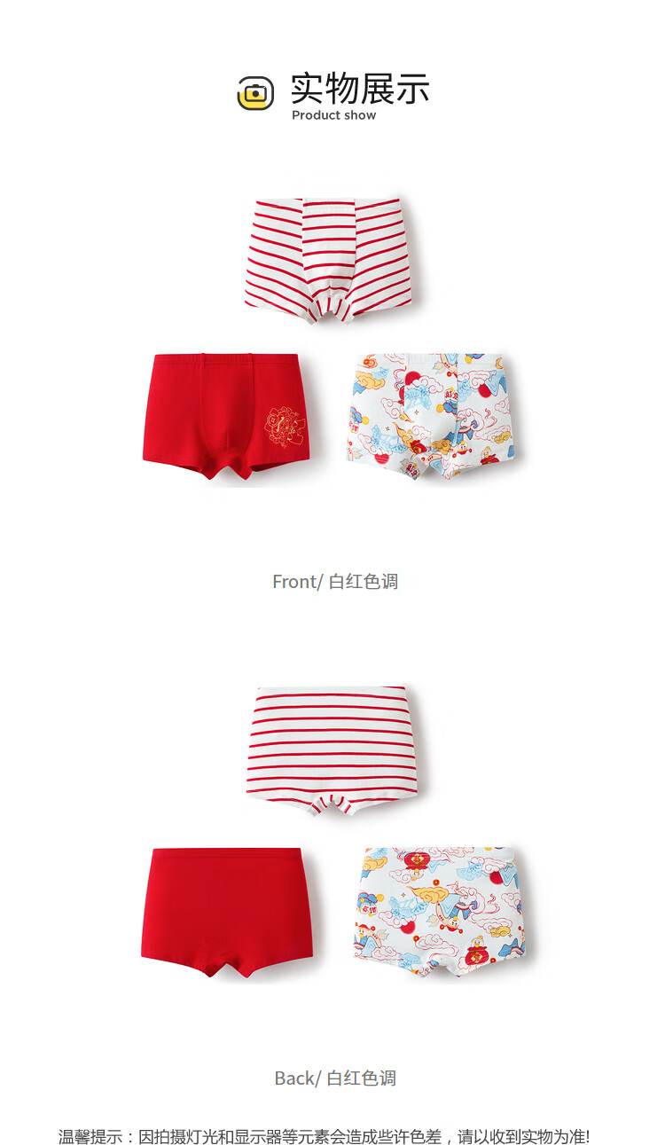 Balabala boys underwear boxer cotton animal year red children's shorts baby four-cornered snake year new year style underwear three-pack white and red tone 00316 3 pairs 110