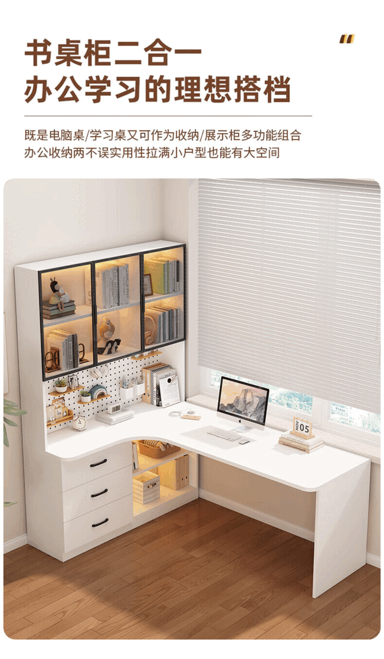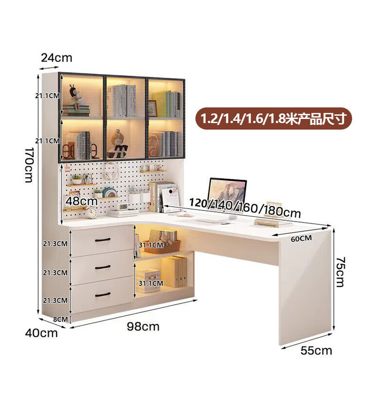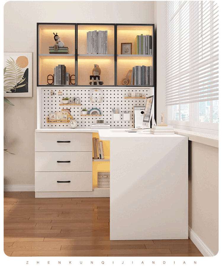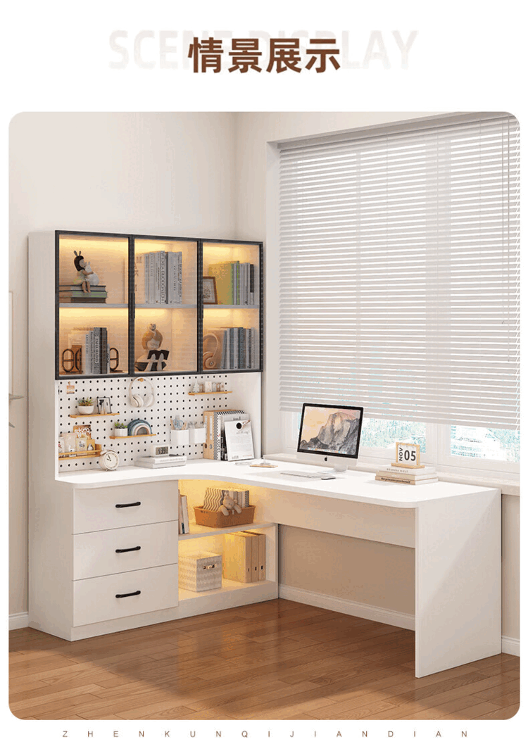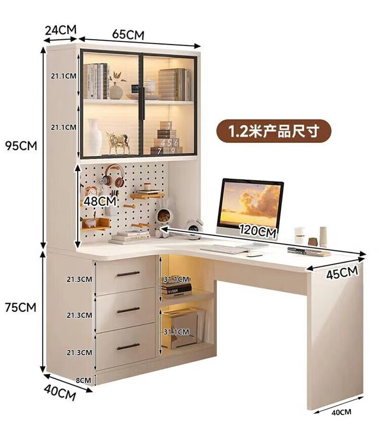 Suzhan solid wood desk and bookshelf integrated bedroom children's writing desk simple corner desk desktop office computer table solid wood ecological board cream white - bookcase on the left 120*65*170 bookcase two glass doors