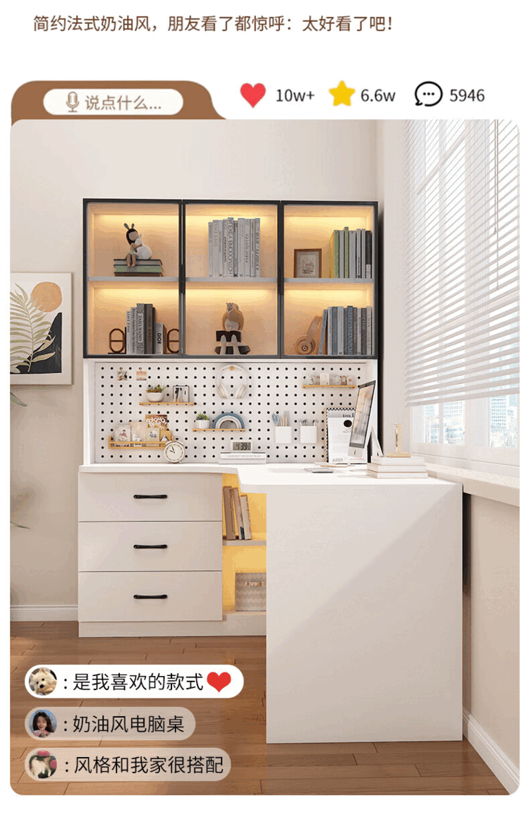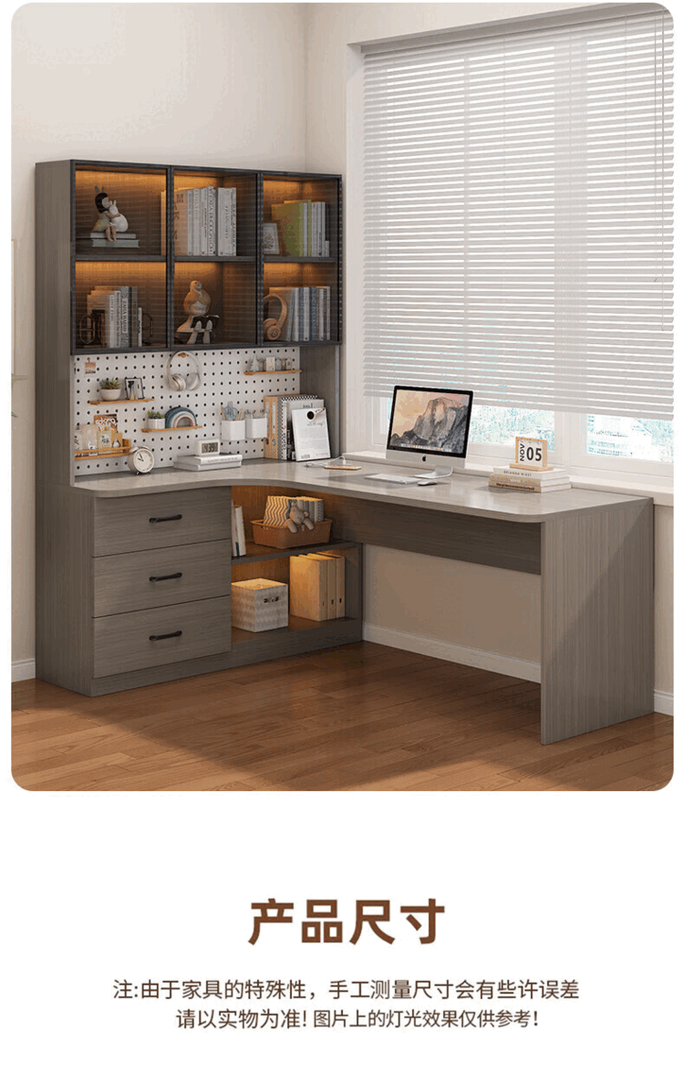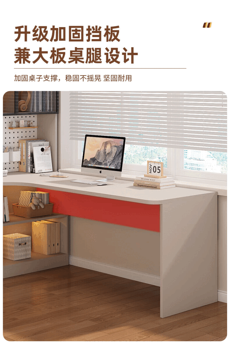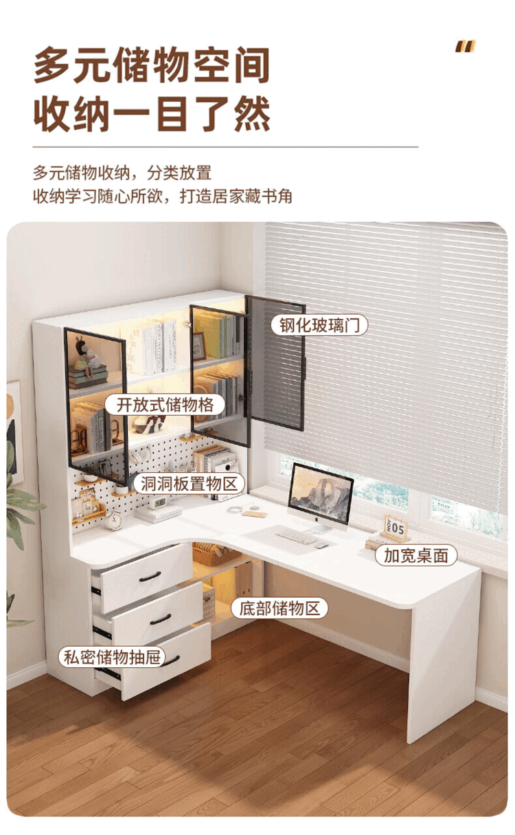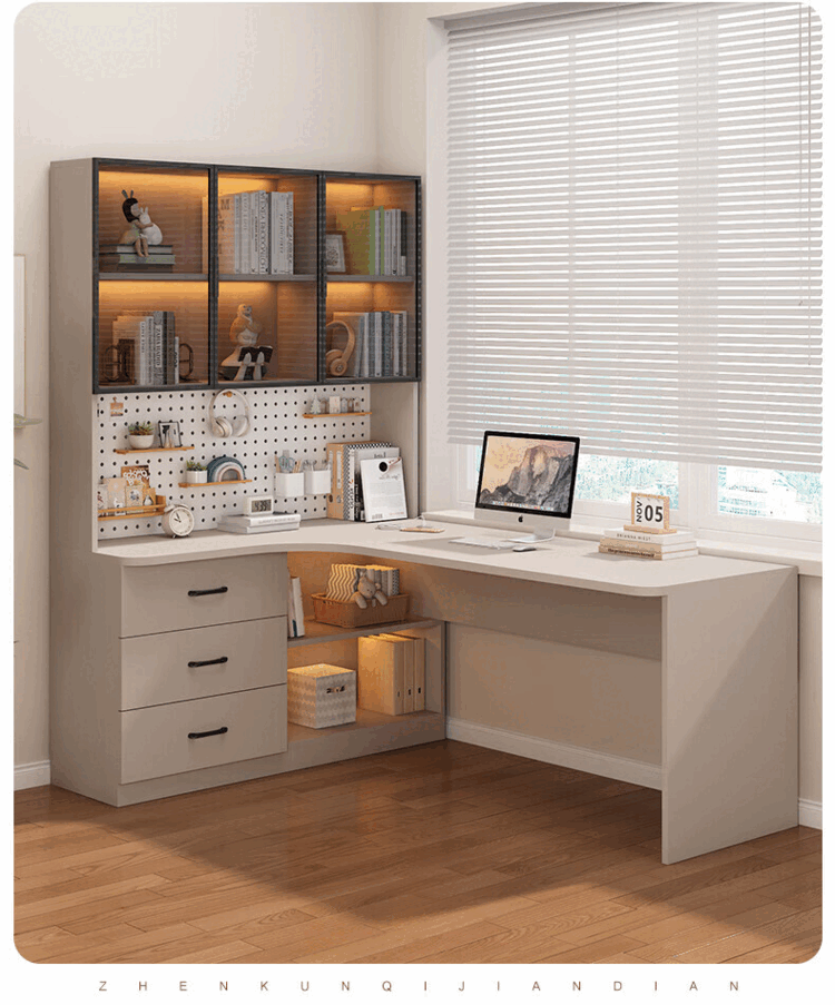 Suzhan solid wood desk and bookshelf integrated bedroom children's writing desk simple corner desk desktop office computer table solid wood ecological board cream white - bookcase on the left 120*65*170 bookcase two glass doors