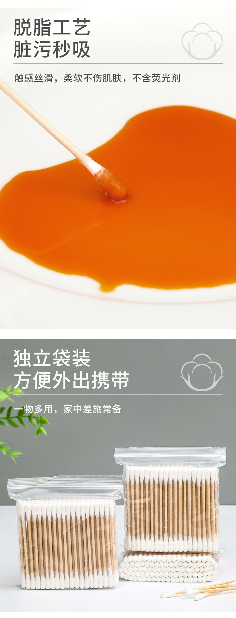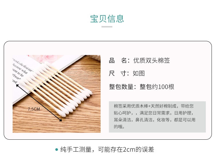 Qianhui 100 bags of cotton swabs, disposable double-ended sanitary cleaning cotton swabs, household makeup removal ear cotton swabs, 1 pack (100 pieces)
