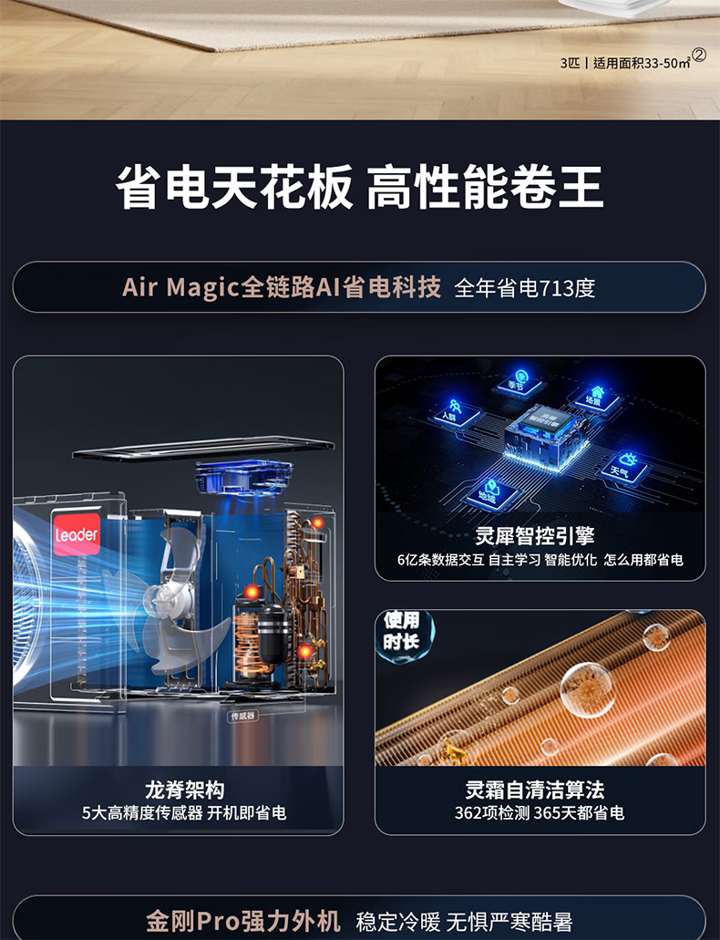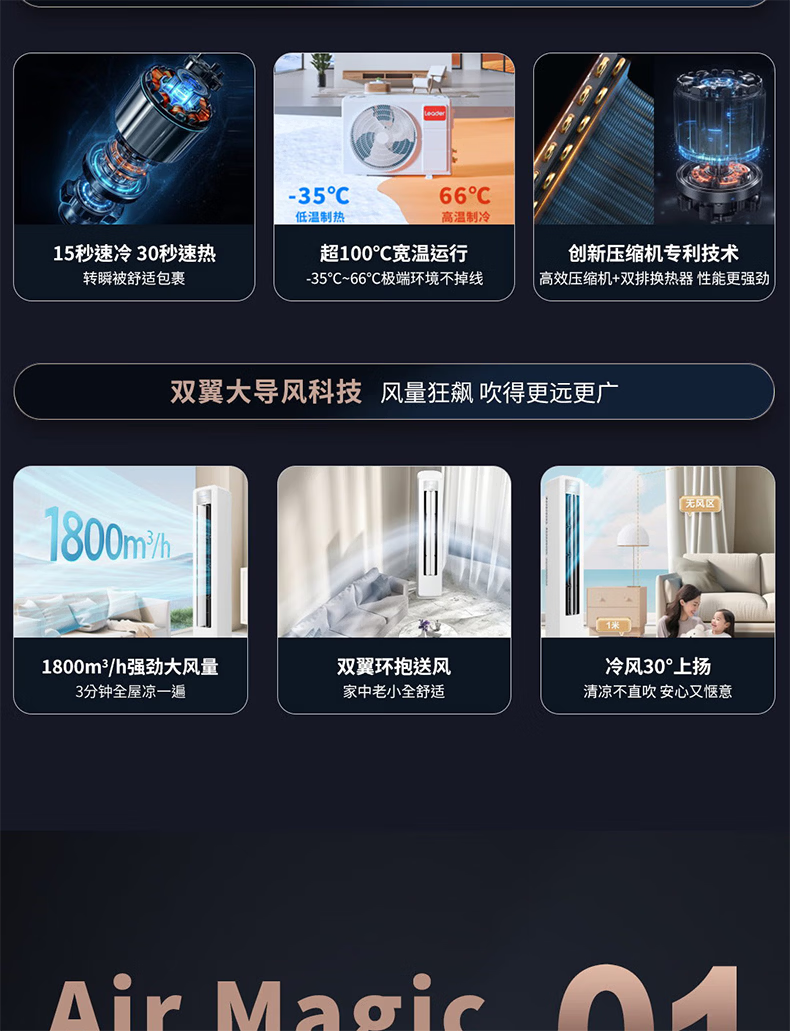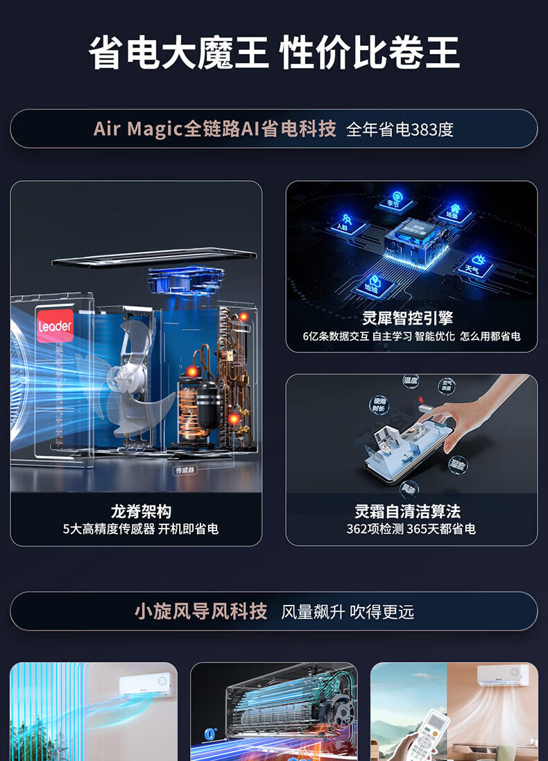 Haier Smart Home produces air conditioning set for three rooms and one living room, 3 hp cabinet unit 1.5 hp on-hook package, new level frequency conversion energy-saving home living room and bedroom air conditioner set, three rooms and one living room, 1.5 hp on-hook unit * 3+3 hp cabinet unit Leader