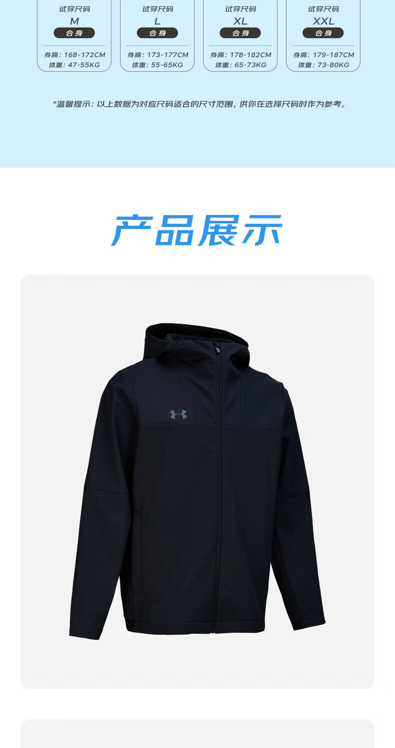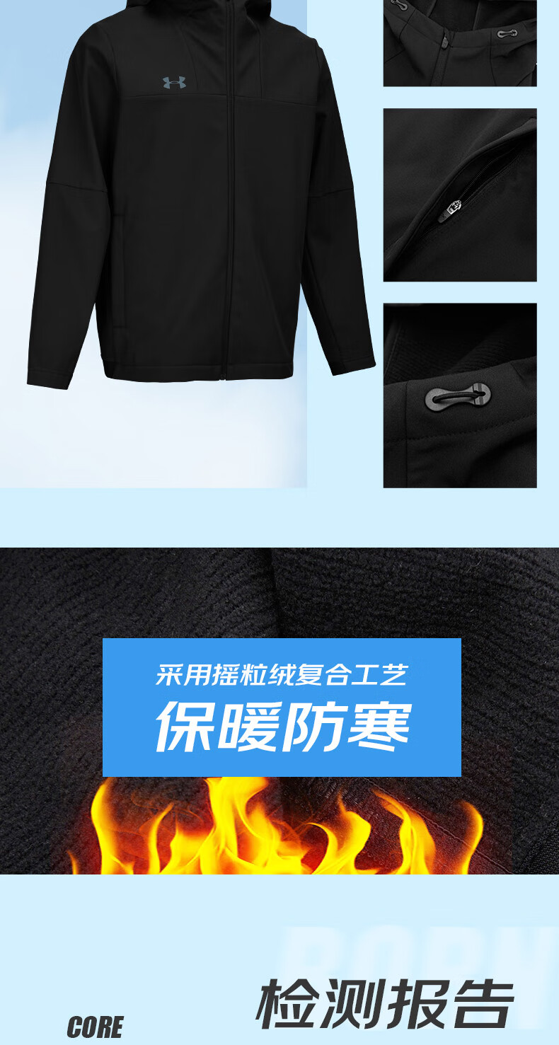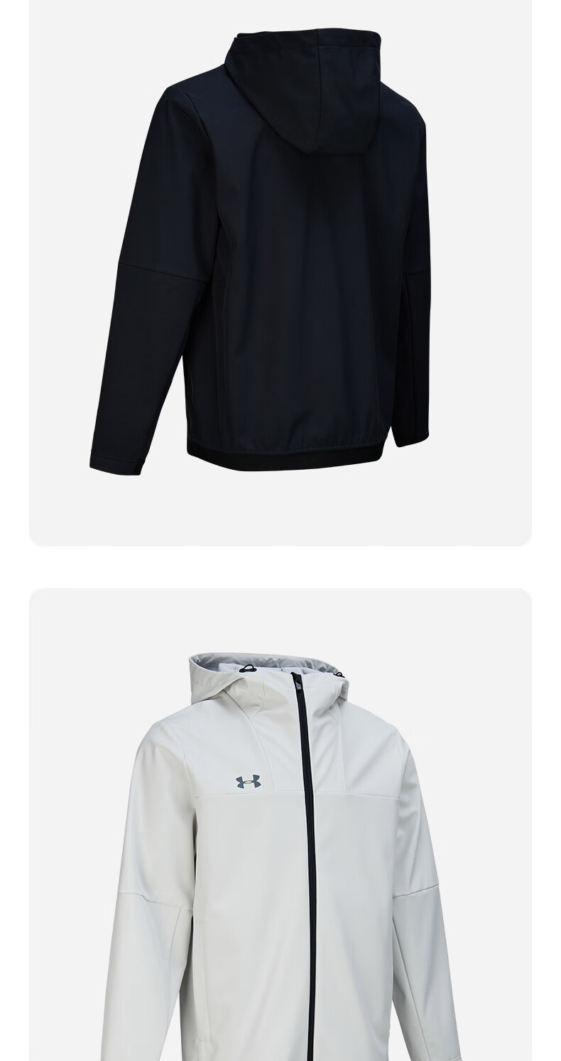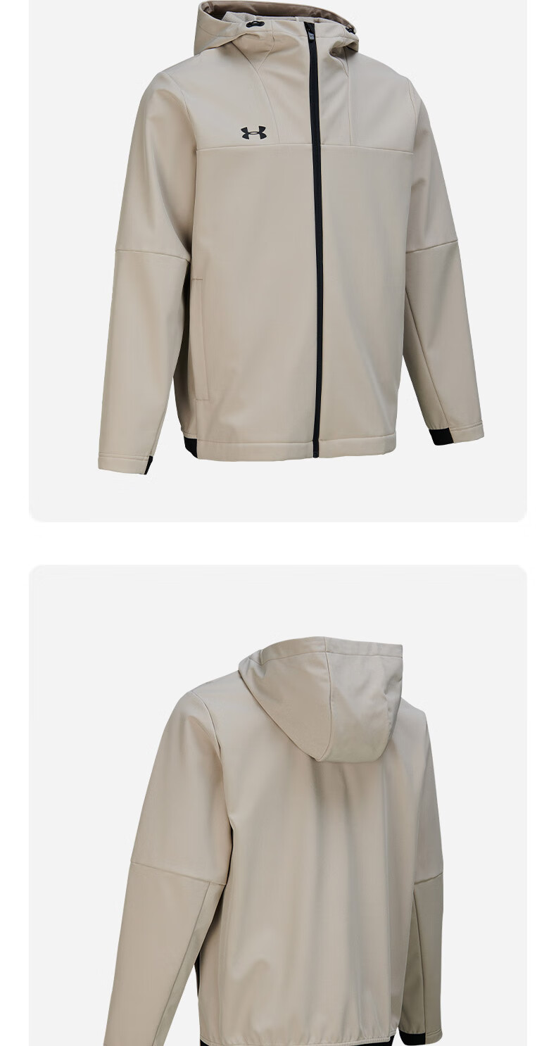 Under Armor UA Sports Jacket Men's Early Spring Velvet Hooded Woven Jacket Outdoor Windproof Casual Sportswear Black 24600408-001 XL (Recommended weight 160-180Jin Jin equals 0.5 kg)