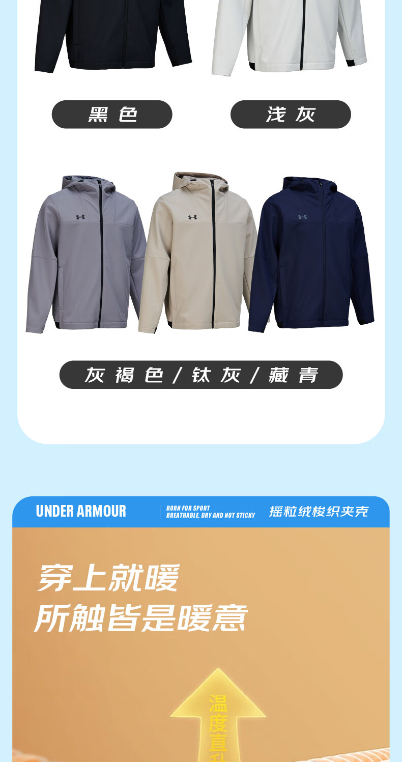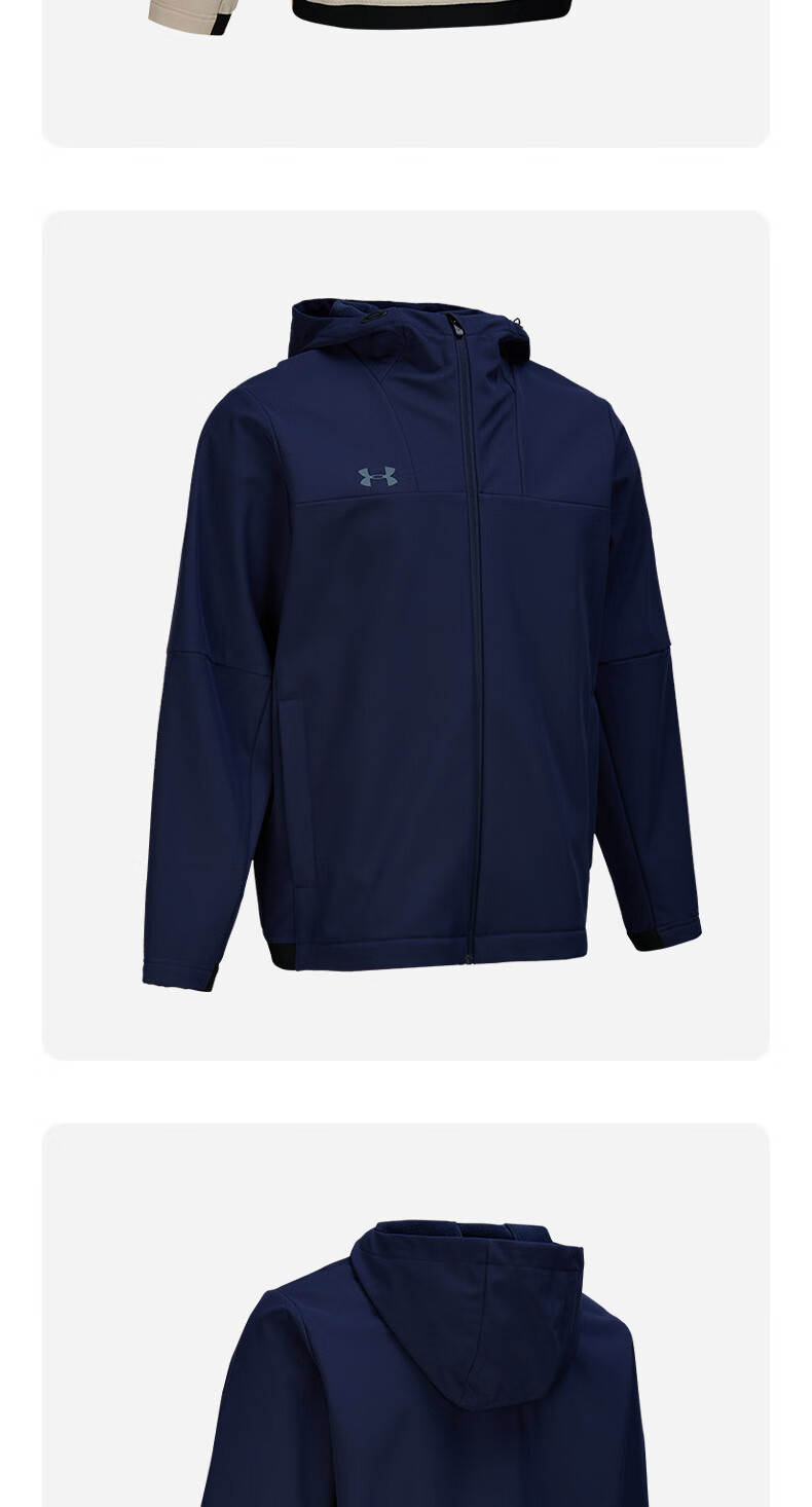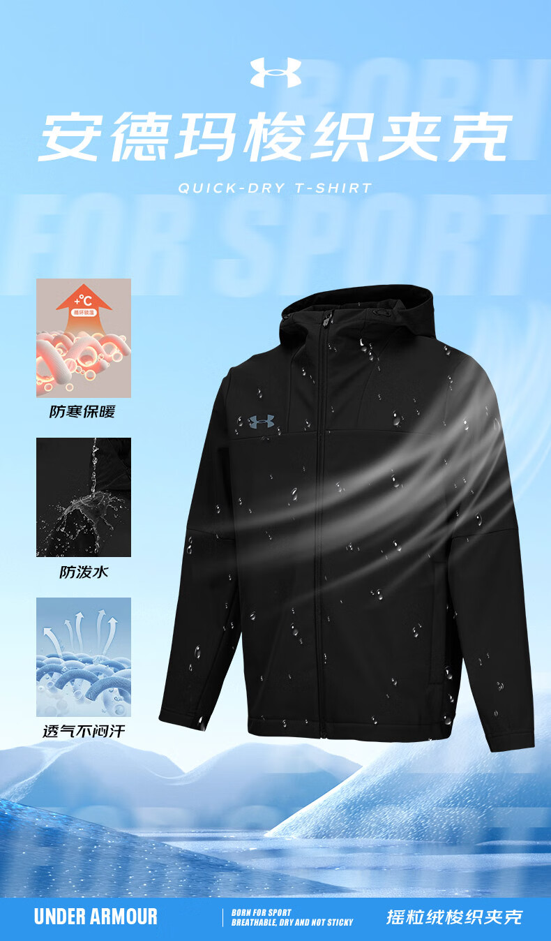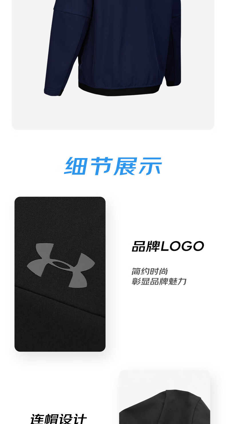 Under Armor UA Sports Jacket Men's Early Spring Velvet Hooded Woven Jacket Outdoor Windproof Casual Sportswear Black 24600408-001 XL (Recommended weight 160-180Jin Jin equals 0.5 kg)