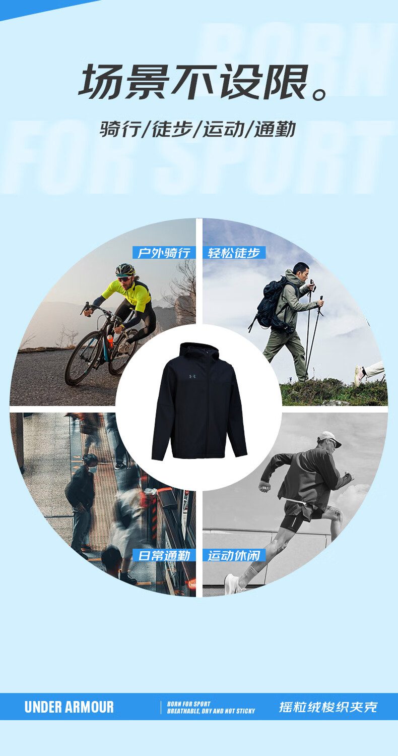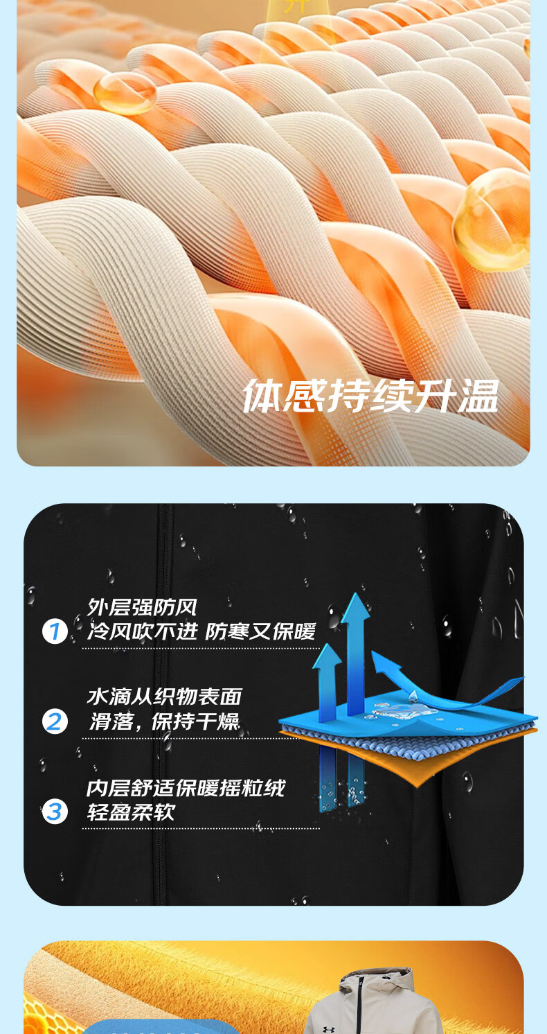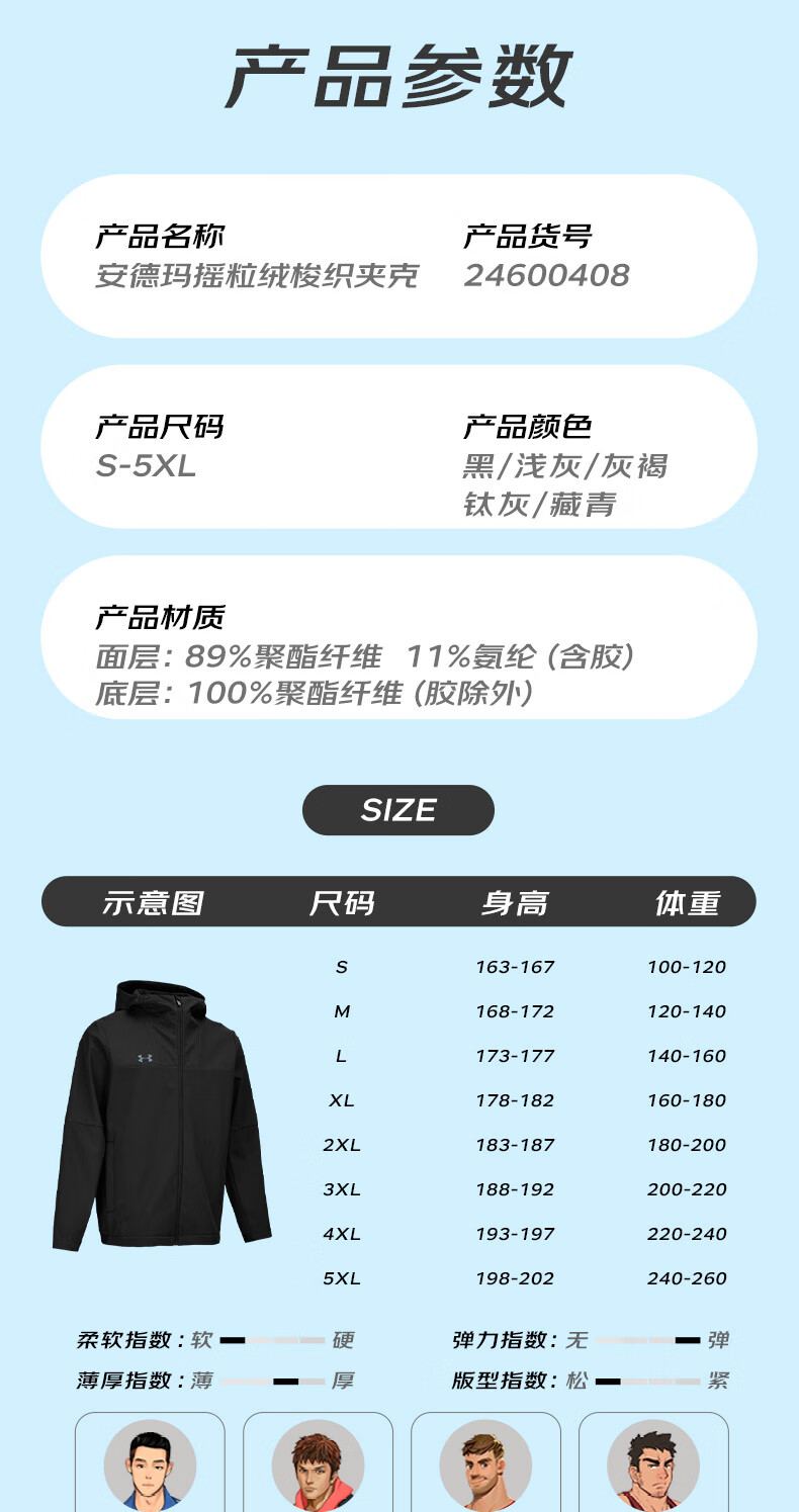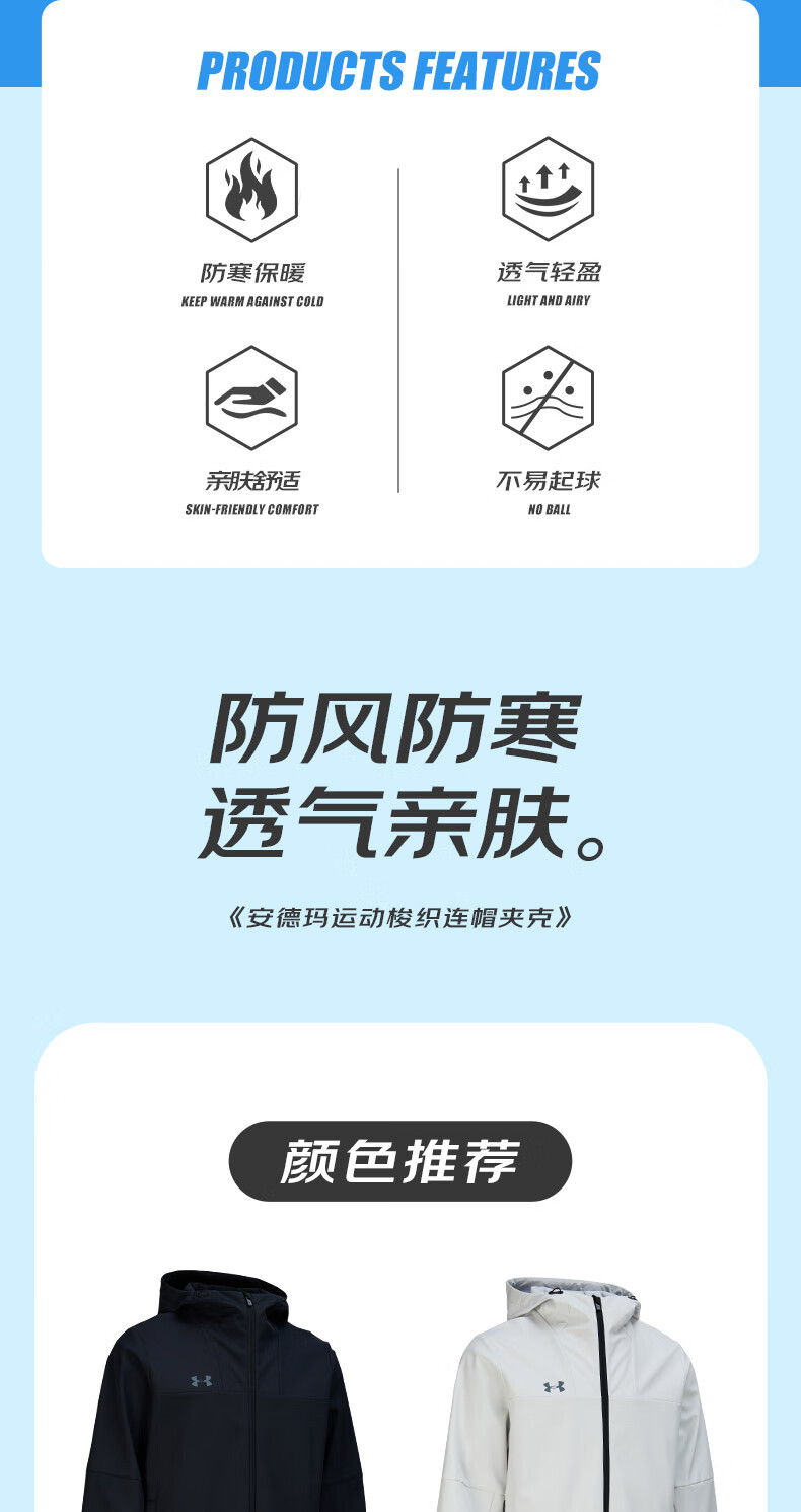 Under Armor UA Sports Jacket Men's Early Spring Velvet Hooded Woven Jacket Outdoor Windproof Casual Sportswear Black 24600408-001 XL (Recommended weight 160-180Jin Jin equals 0.5 kg)