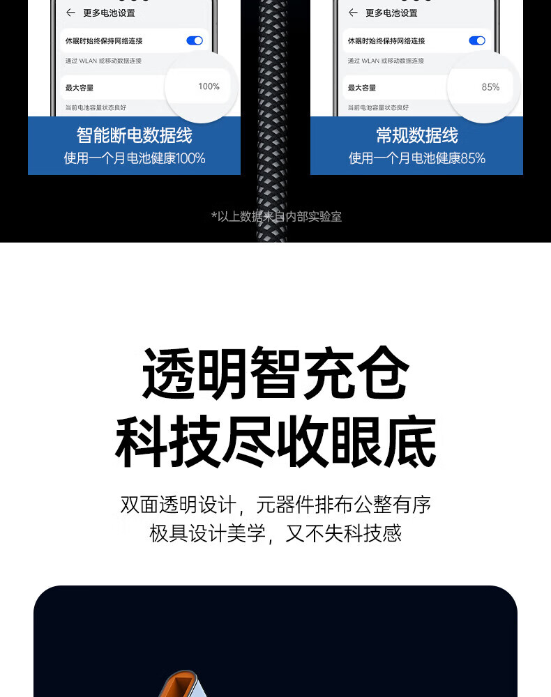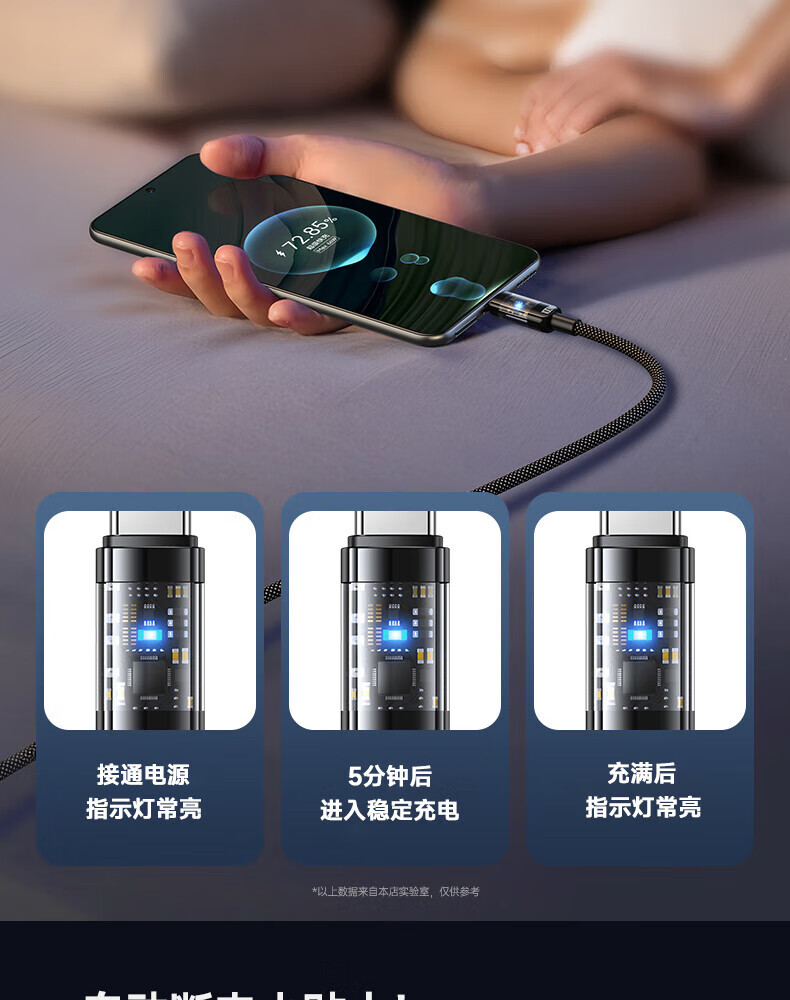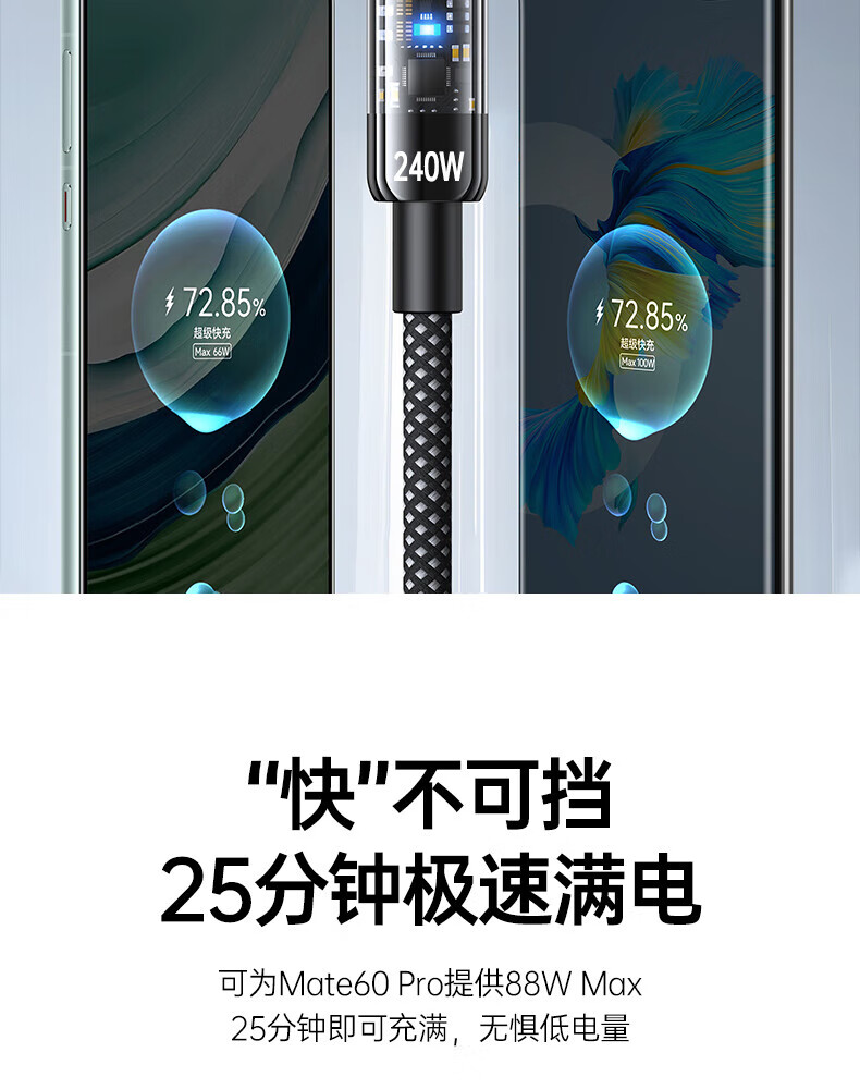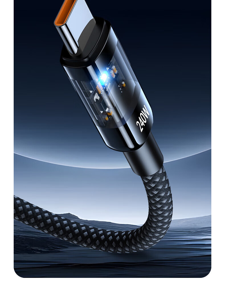 Aihaozhe 240W super fast charging Type-C data cable is suitable for Huawei vivo Honor p40p50p60p70 Xiaomi OPPO mobile phone charger cable transparent with light 10A set head + cable 240W accelerated flash charging automatic power off when full 1.5 meters real material / high quality pure copper / safe and durable