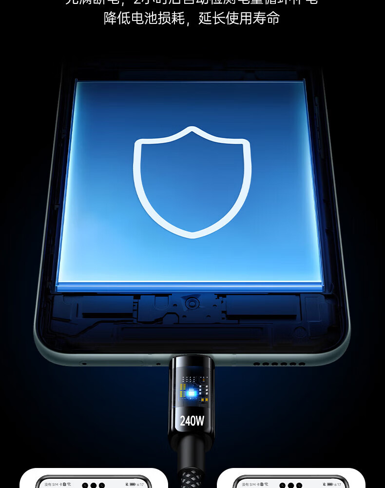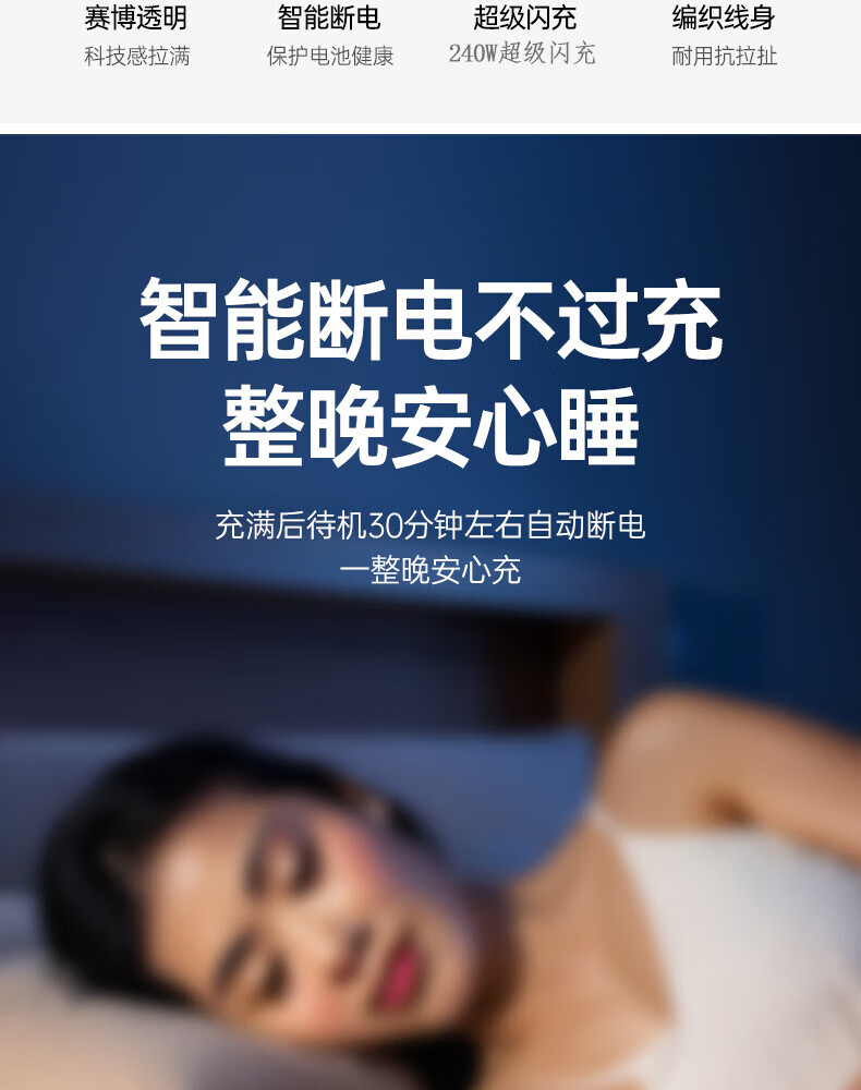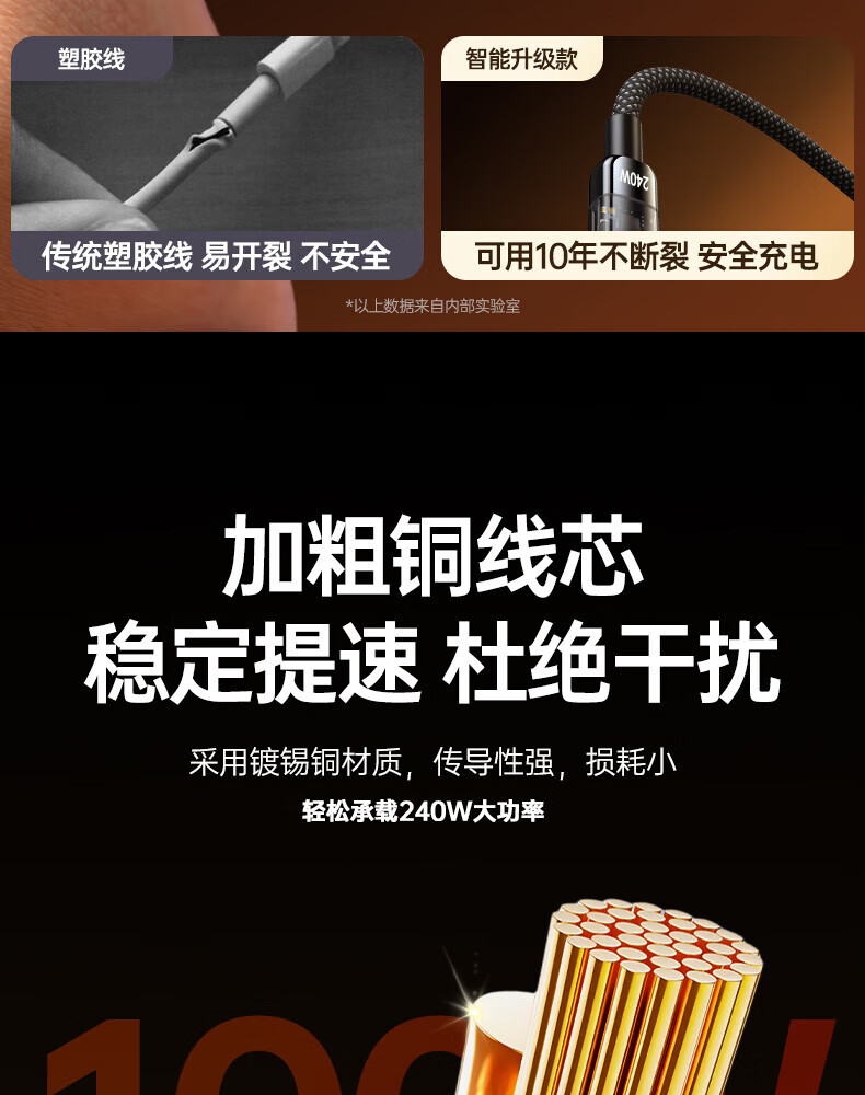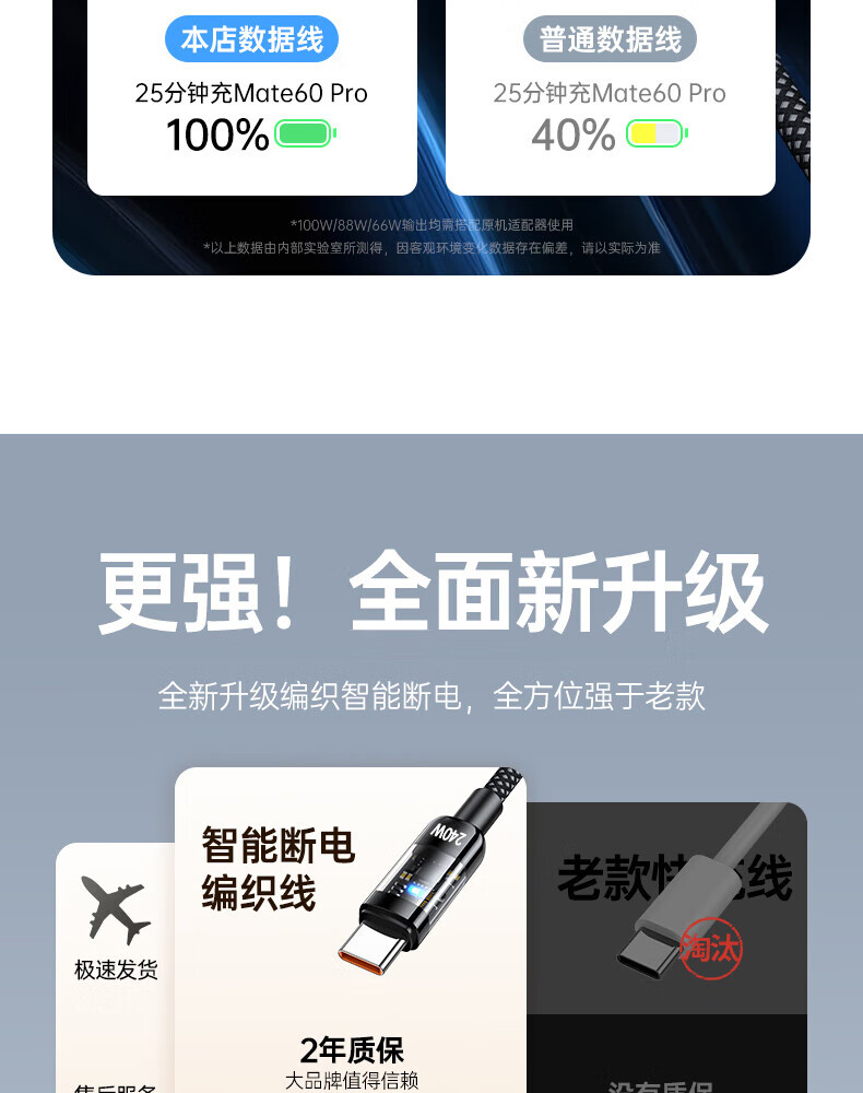 Aihaozhe 240W super fast charging Type-C data cable is suitable for Huawei vivo Honor p40p50p60p70 Xiaomi OPPO mobile phone charger cable transparent with light 10A set head + cable 240W accelerated flash charging automatic power off when full 1.5 meters real material / high quality pure copper / safe and durable