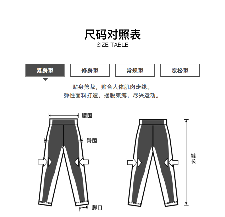 China (cm) 160-165/84-86 165-170 / 88-90 167-172 / 92-96 168-173 / 98-102 170-176 / 106-110
