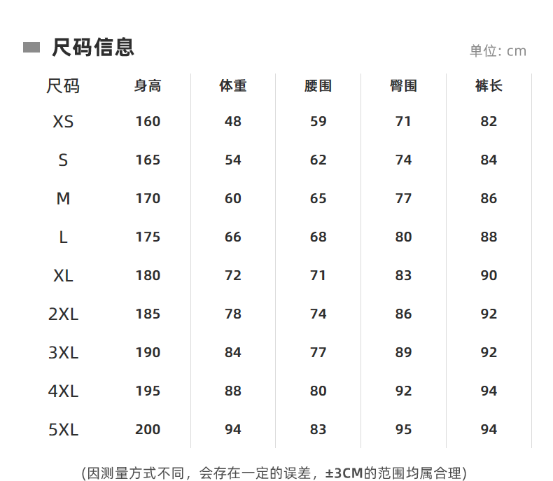 Outseam (cm) 99 cm 101.5 cm 104 cm 106.5 cm 109 cm