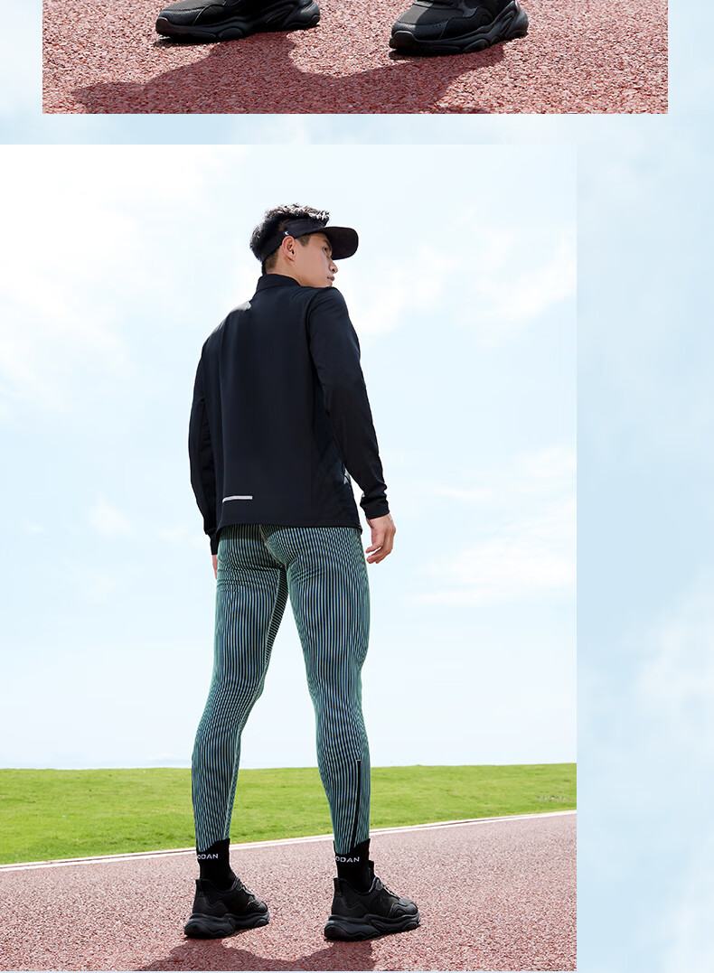 Jordan Feiying sweatpants men's running pants men's breathable elastic quick-drying track and field marathon compression tight semi-elastic pants black/shark gray/Jordan white L