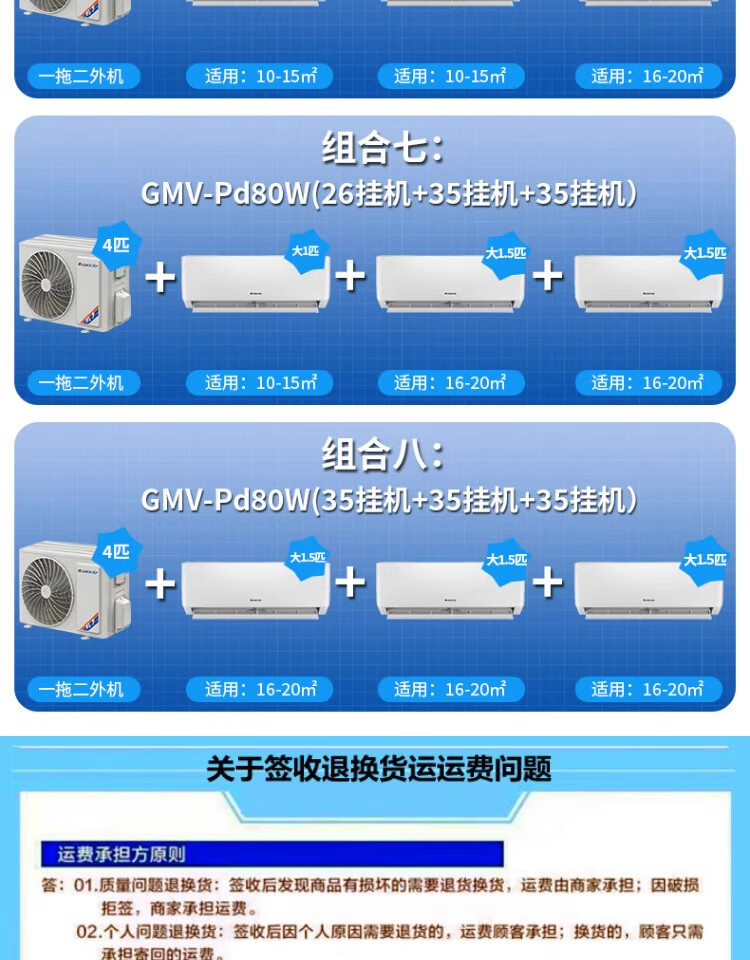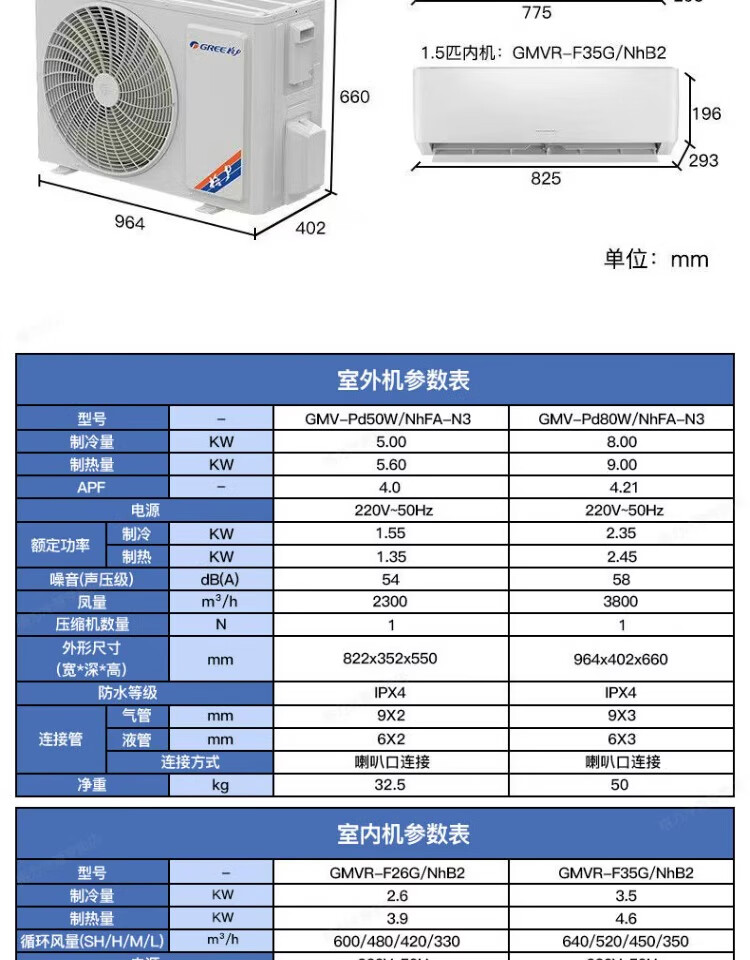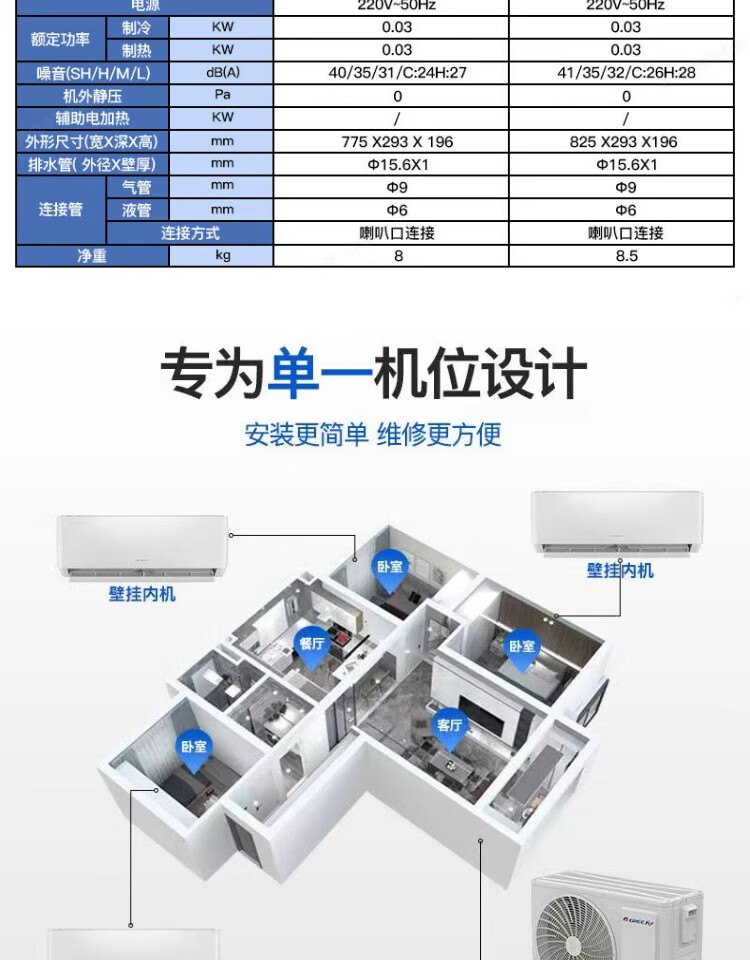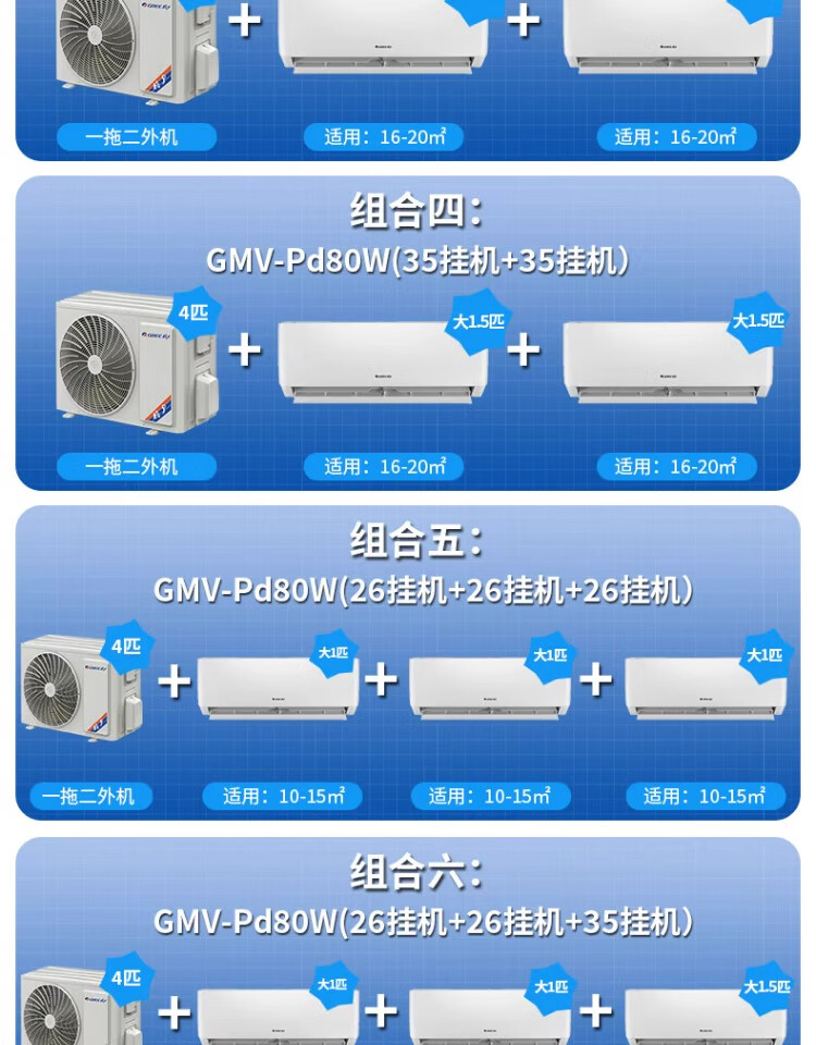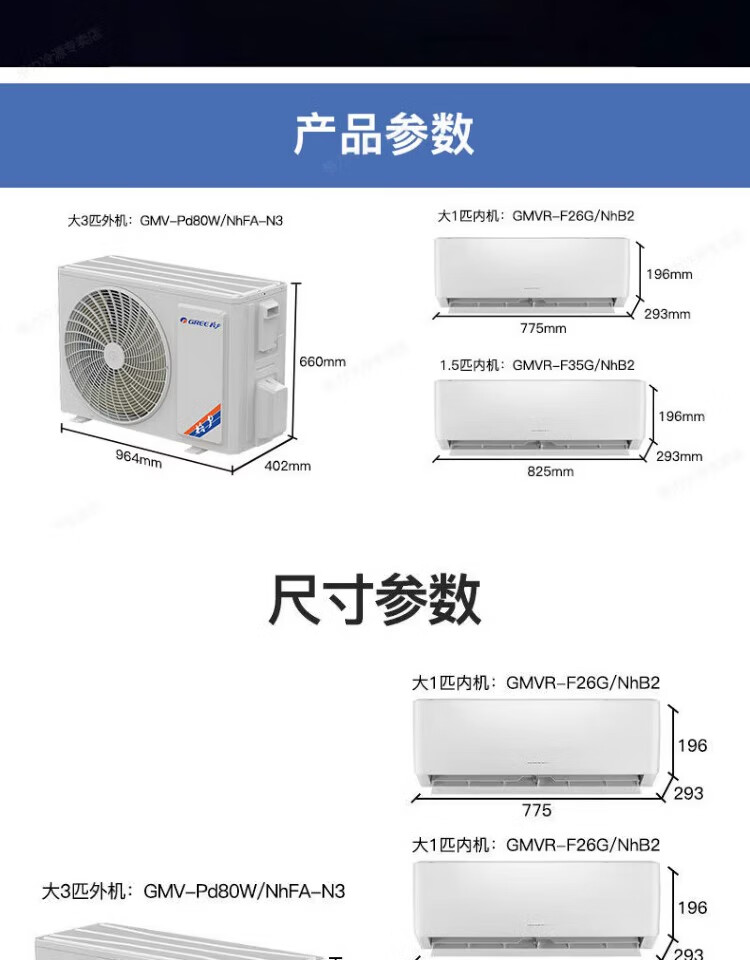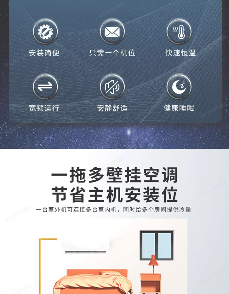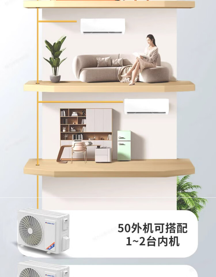 Gree air conditioner one to two inverter air conditioner hanging large 1 hp large 1.5 hp household one to three multi-connected central air conditioner huge power saving large 2 hp three-level energy efficiency one to two/1+1 without installation