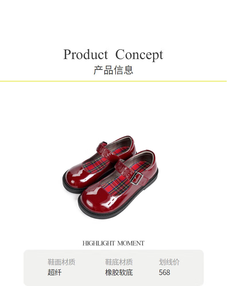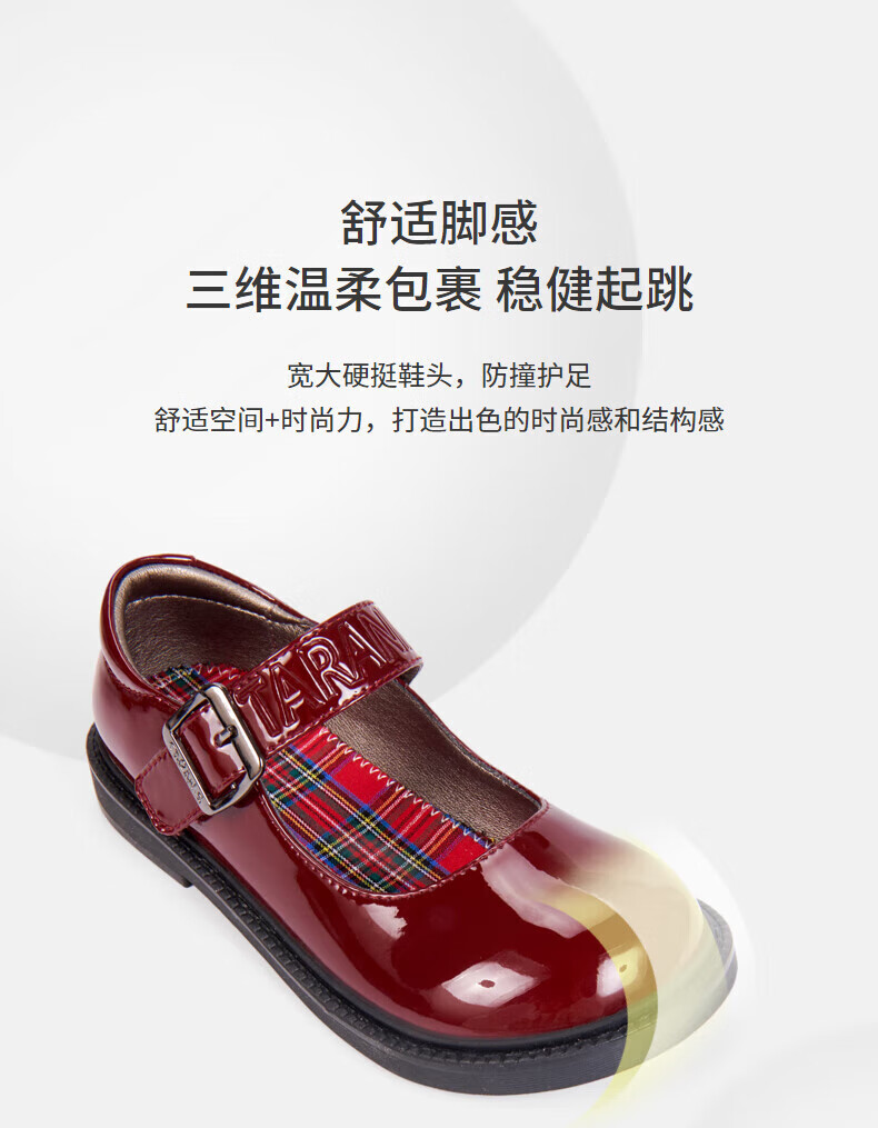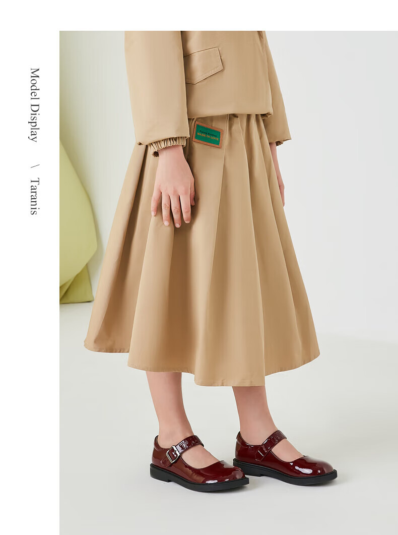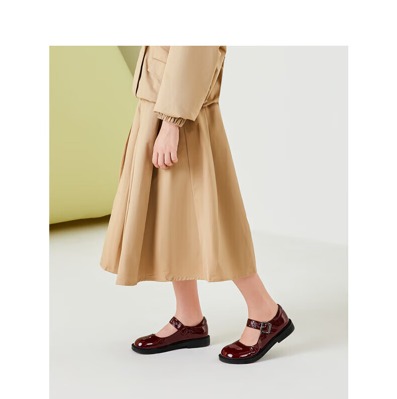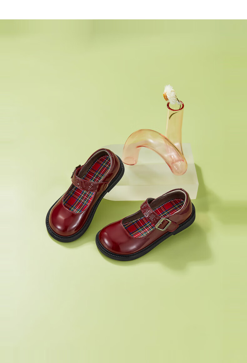 Terranis KIDS British style simple red children's small leather shoes elegant princess shoes retro summer Ma wine red 37 shoe inner length 23.5cm