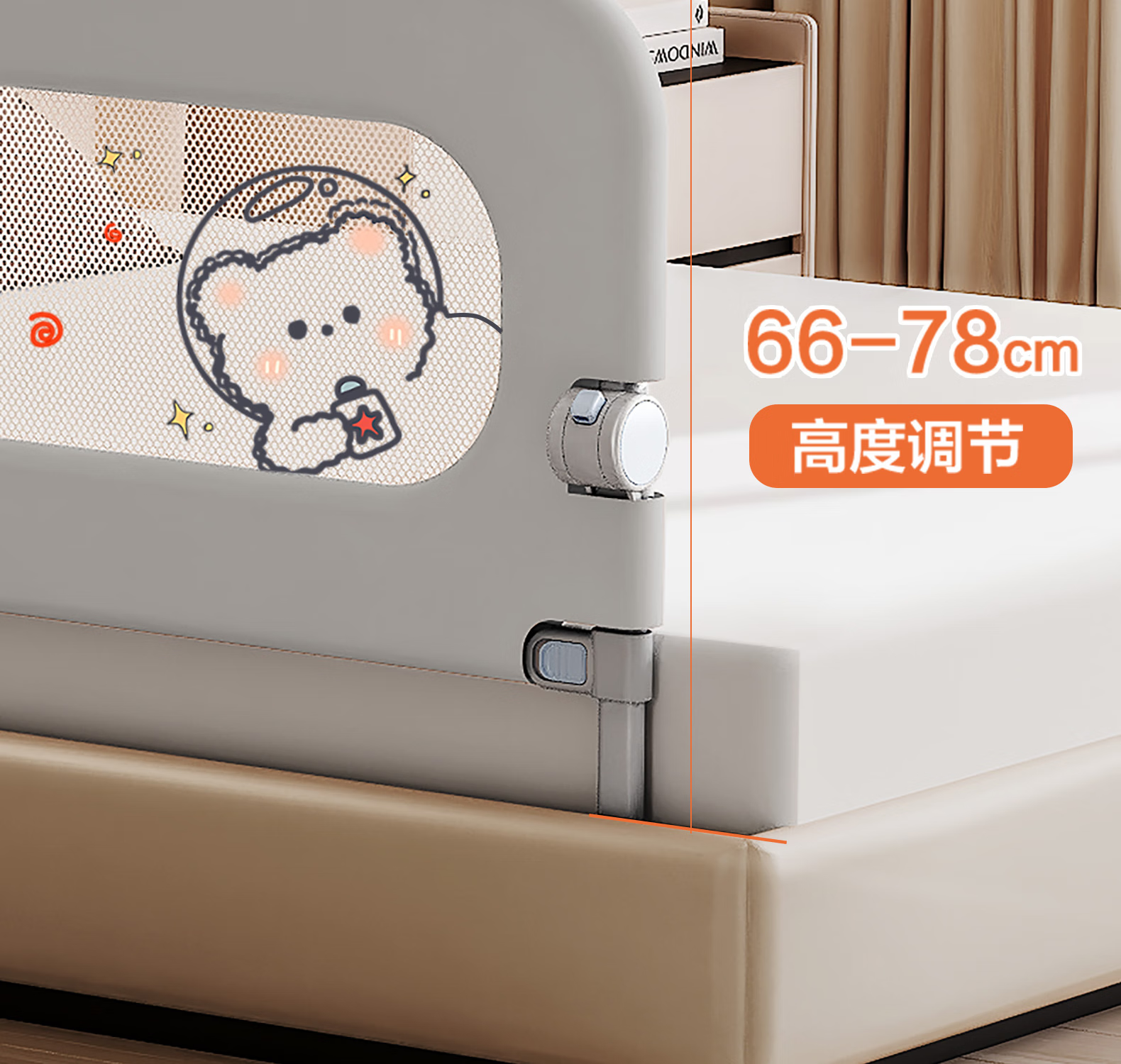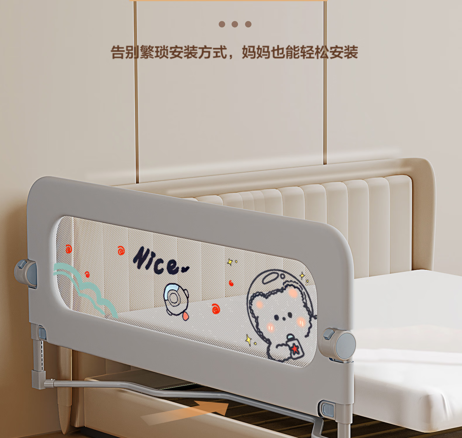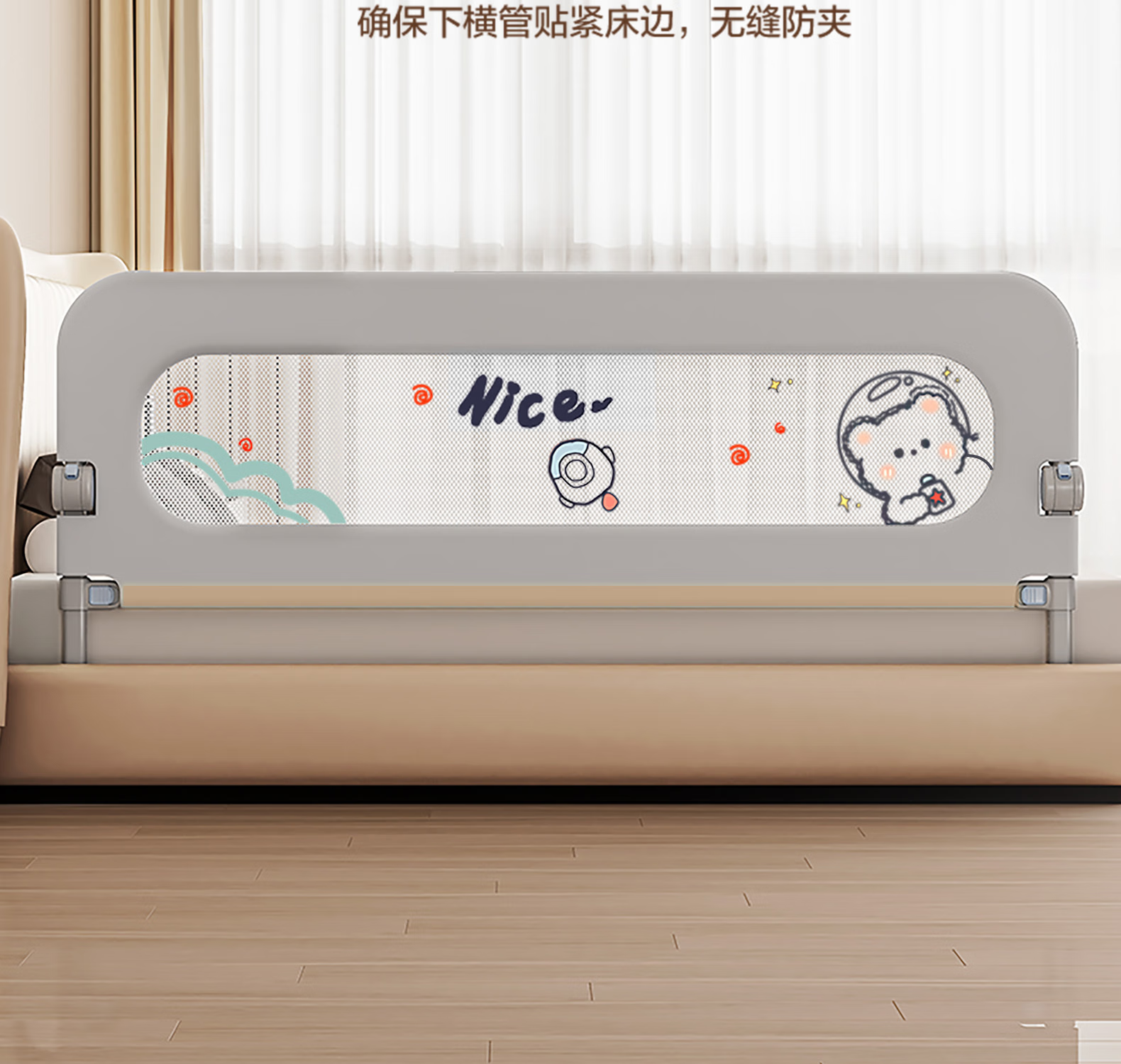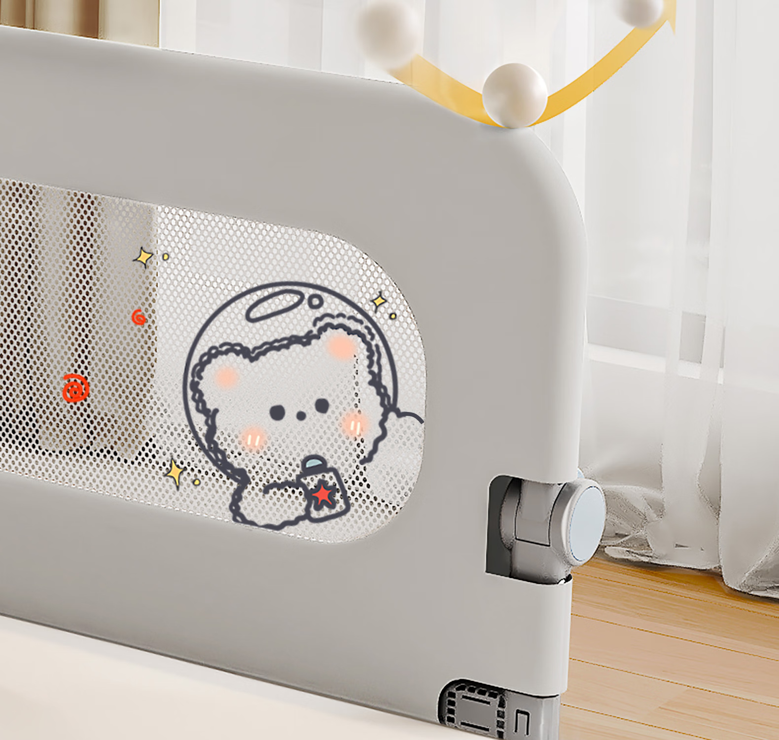 BABYBLIZ bed fence baby anti-fall guardrail baby anti-fall bedside children's bed bezel foldable guardrail one side Space Bear - suitable for high and low beds + one-hand folding 1.8 meters