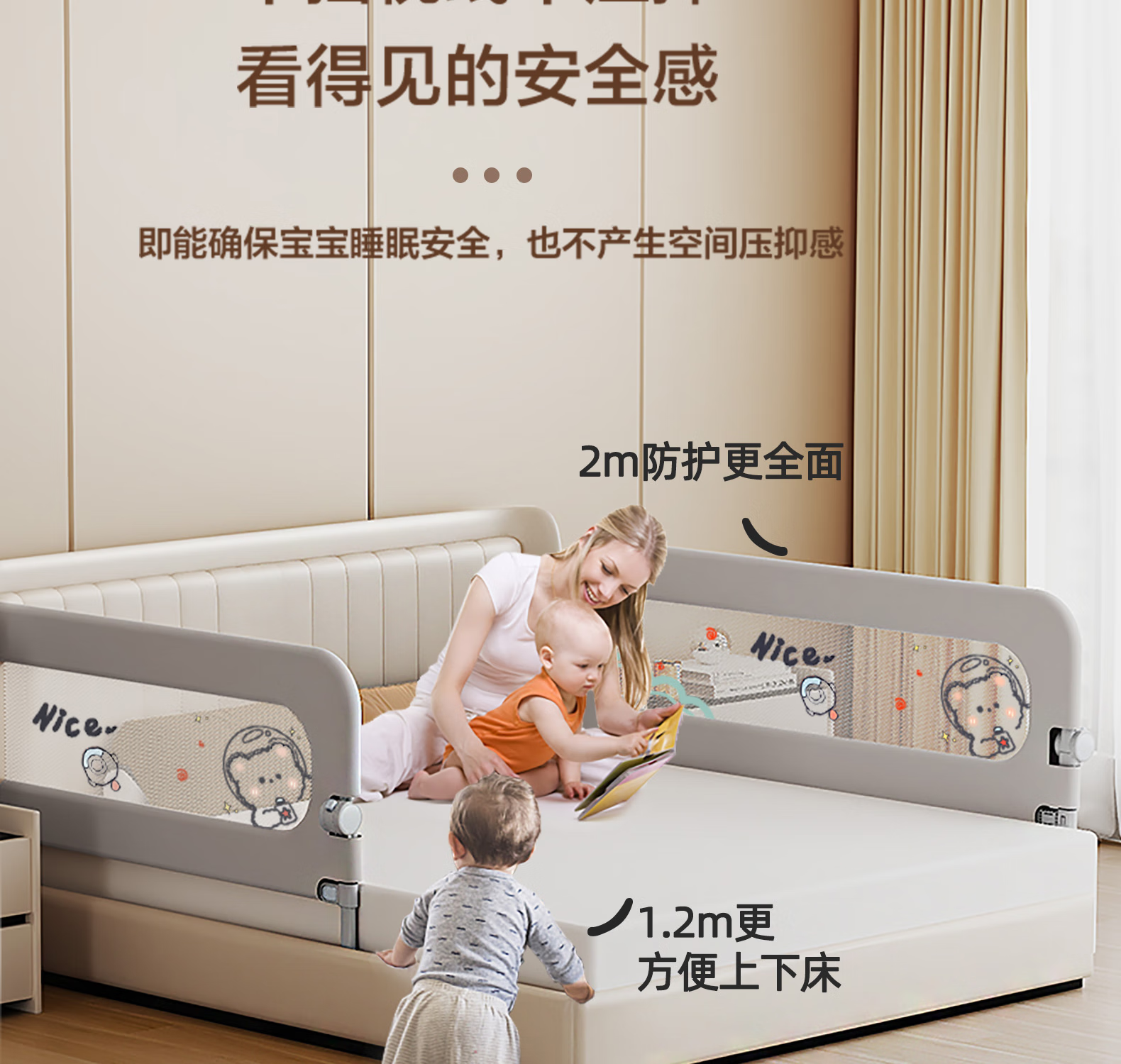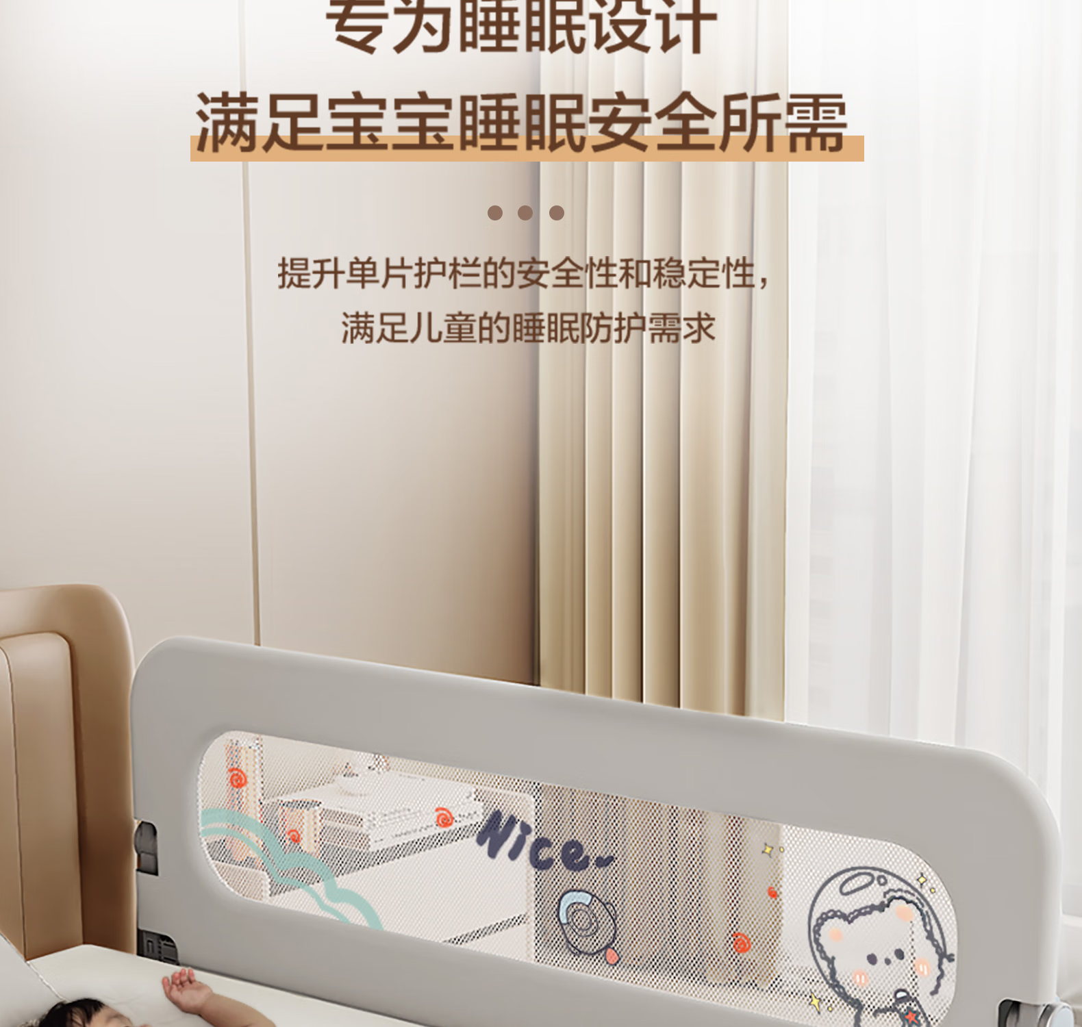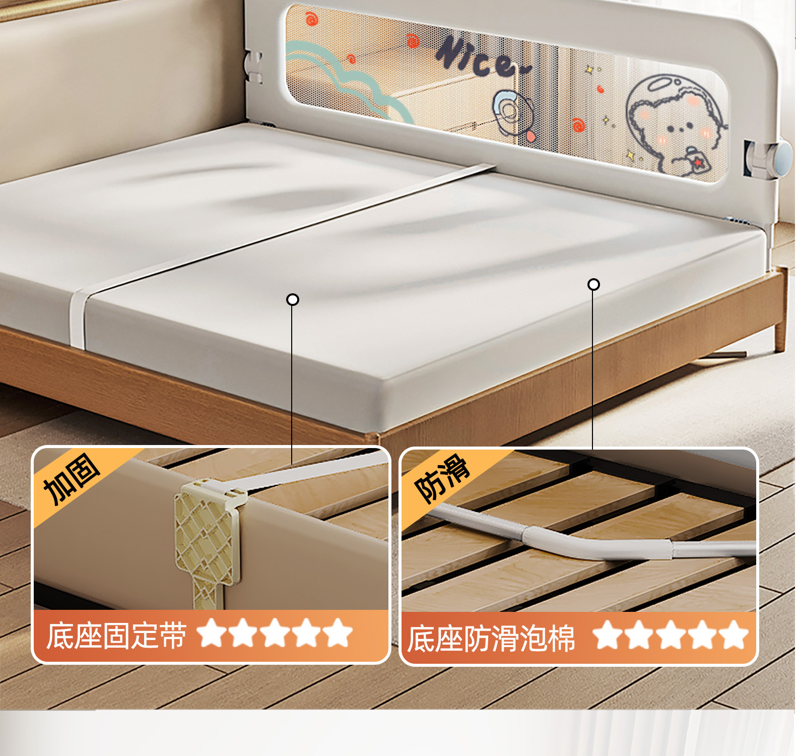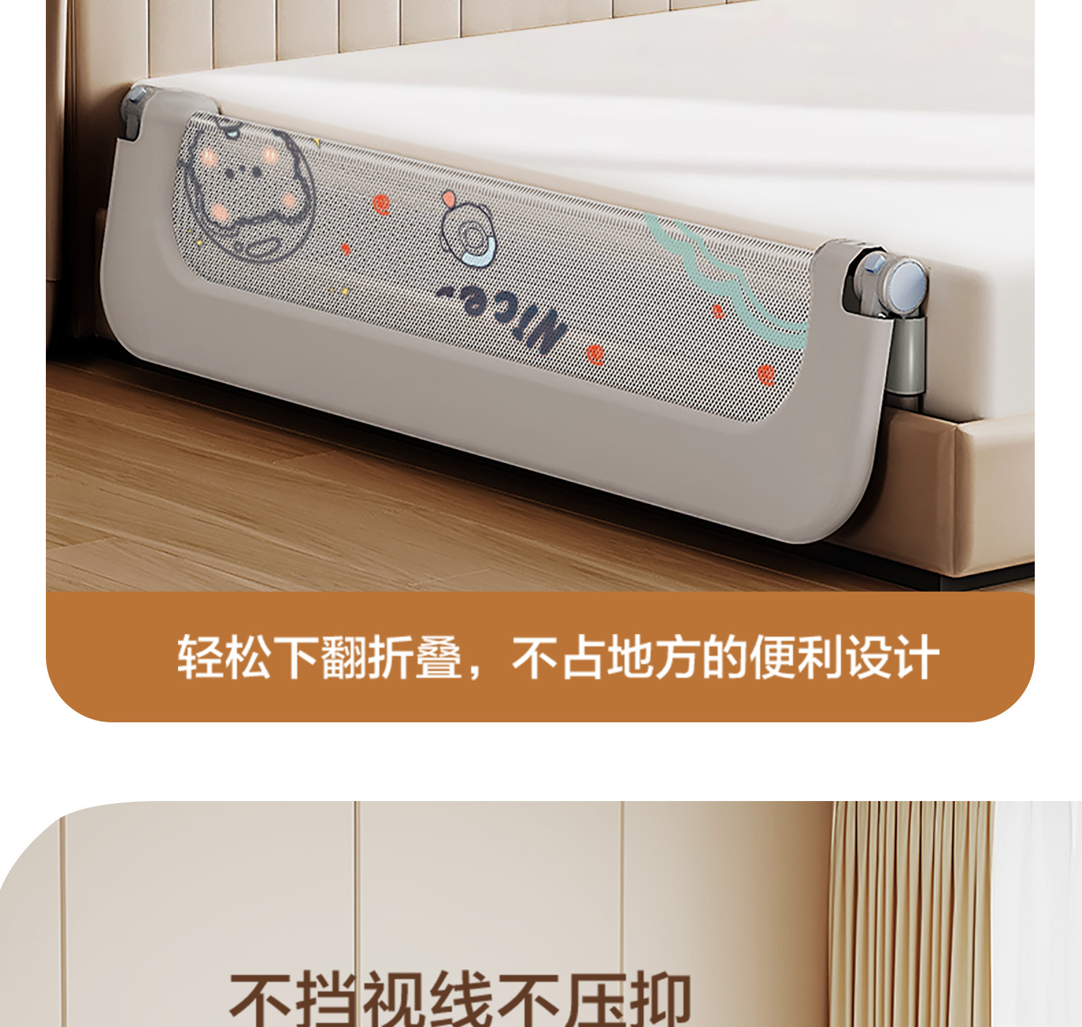 BABYBLIZ bed fence baby anti-fall guardrail baby anti-fall bedside children's bed bezel foldable guardrail one side Space Bear - suitable for high and low beds + one-hand folding 1.8 meters