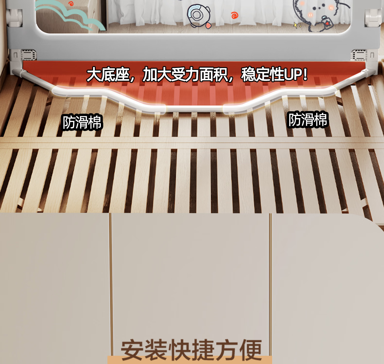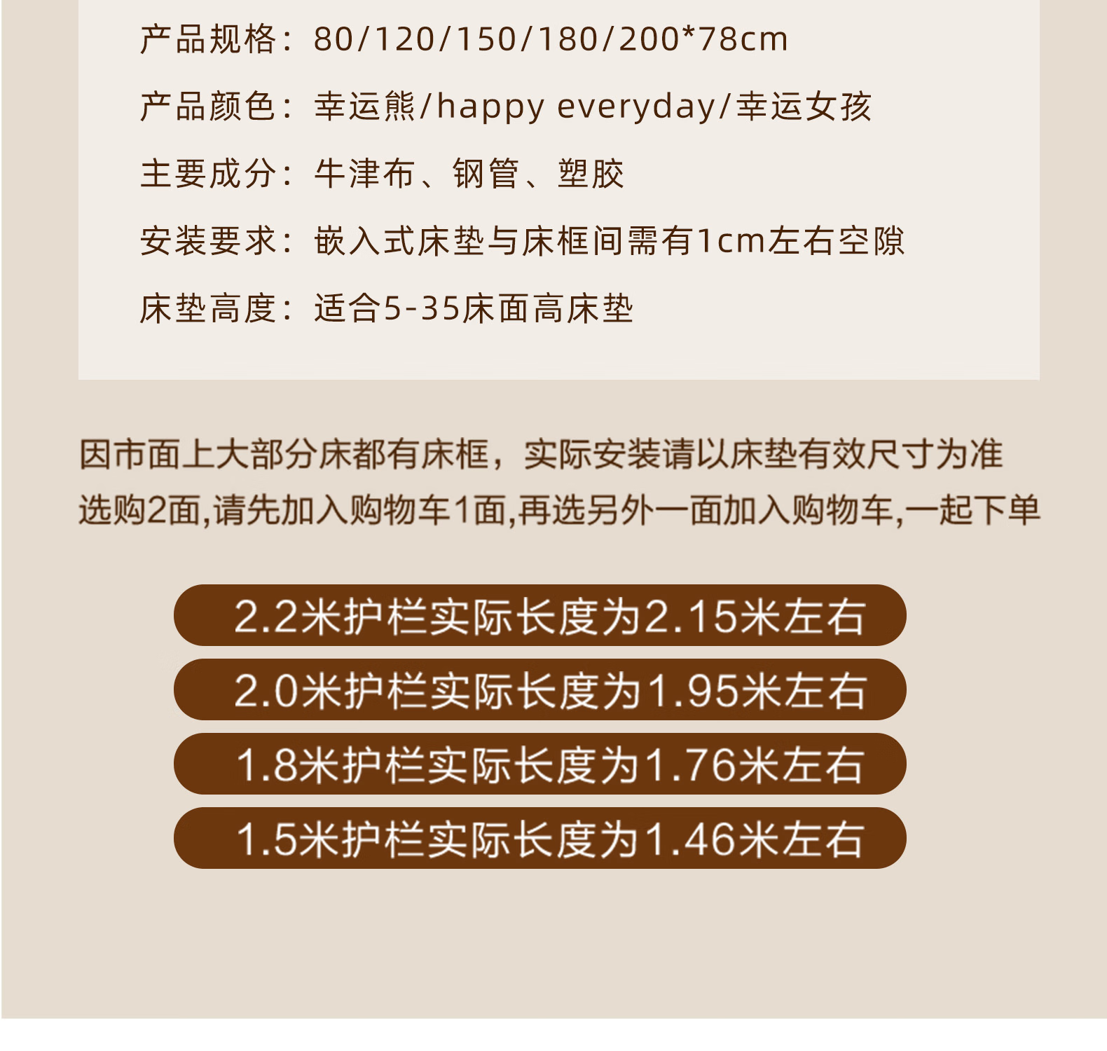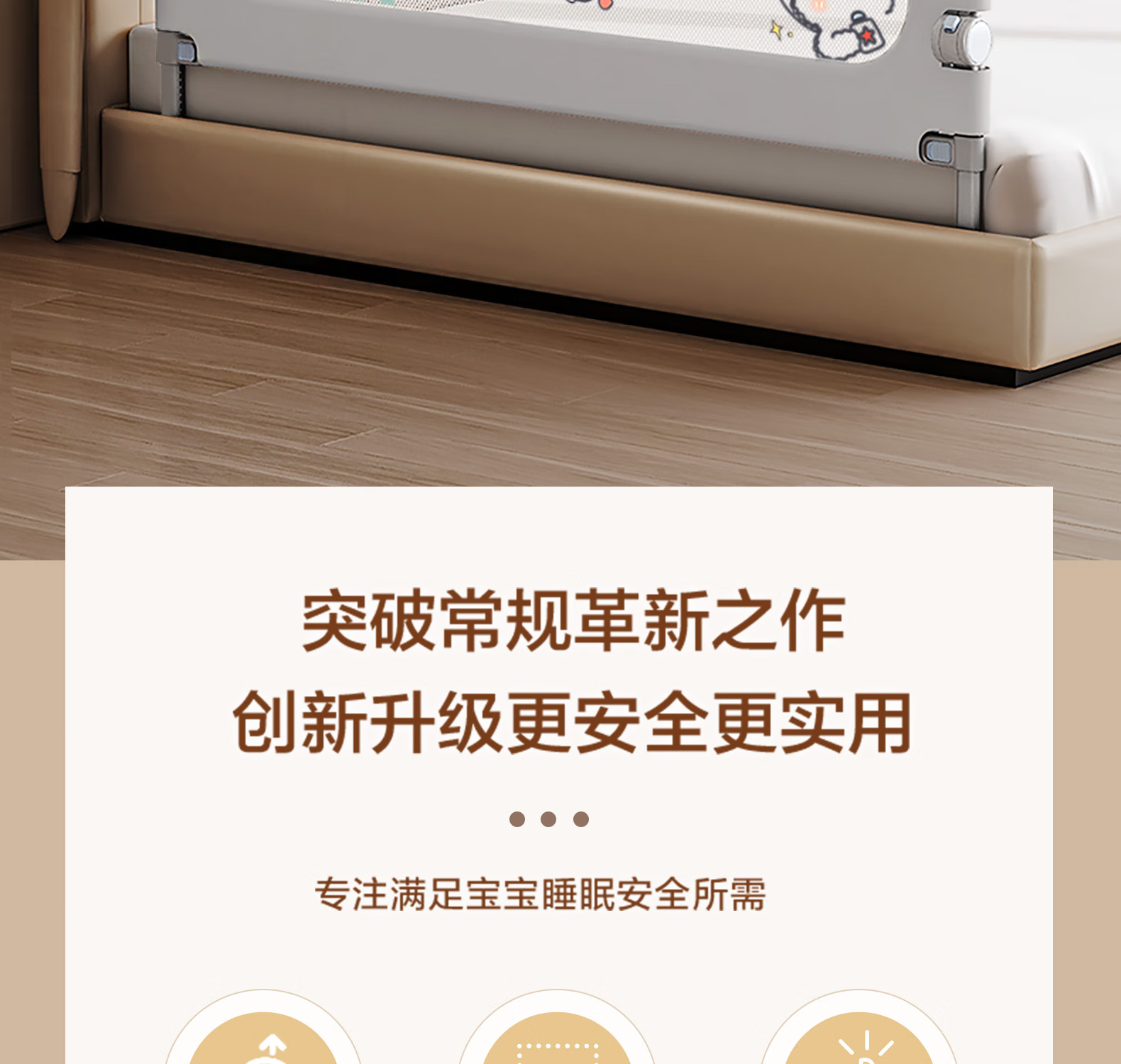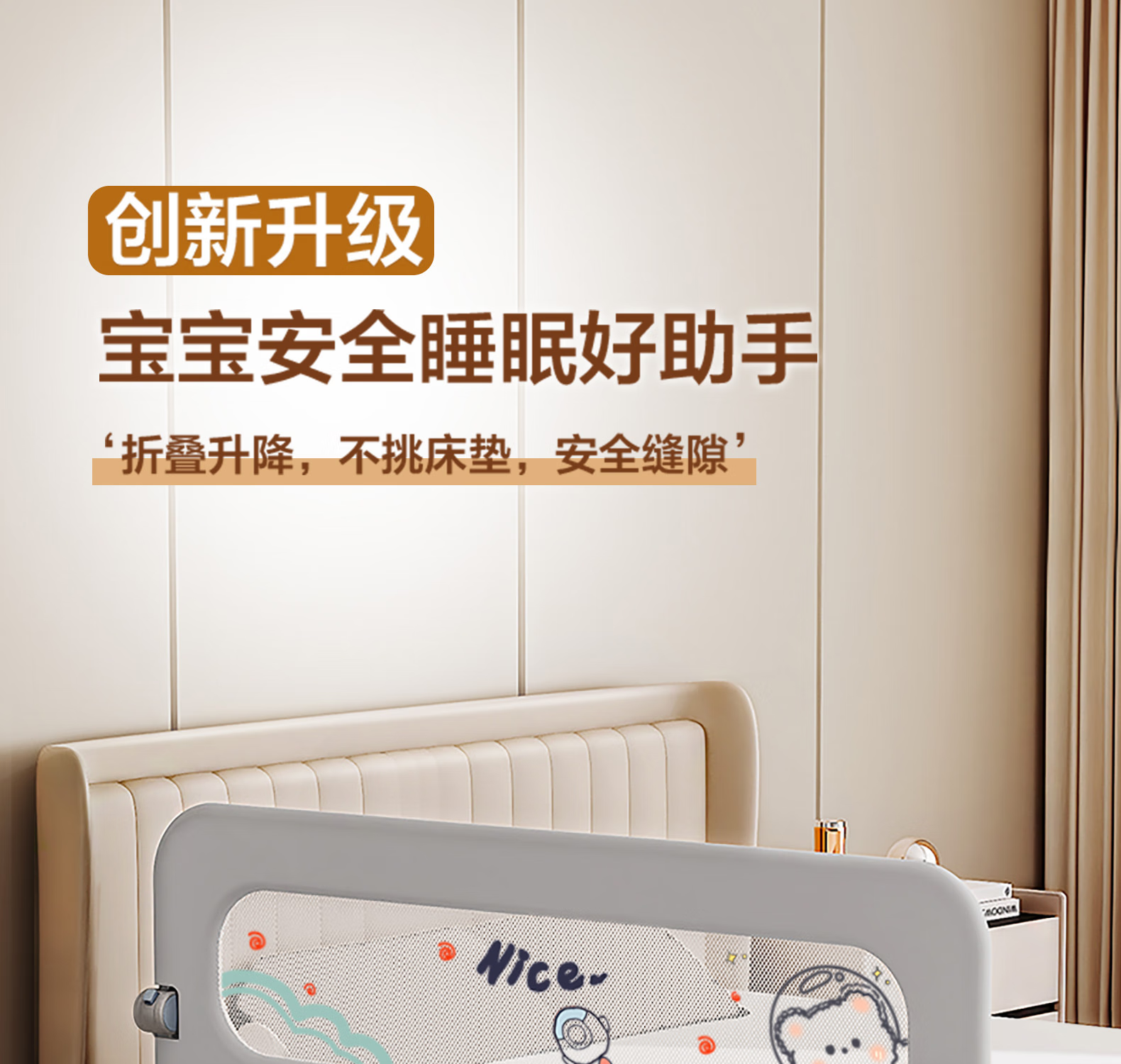 BABYBLIZ bed fence baby anti-fall guardrail baby anti-fall bedside children's bed bezel foldable guardrail one side Space Bear - suitable for high and low beds + one-hand folding 1.8 meters