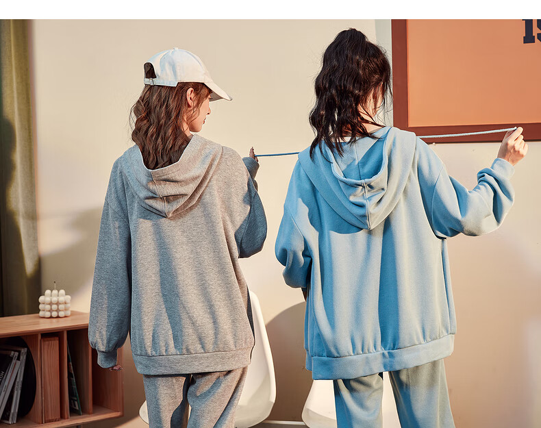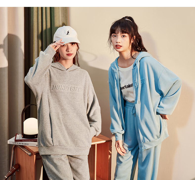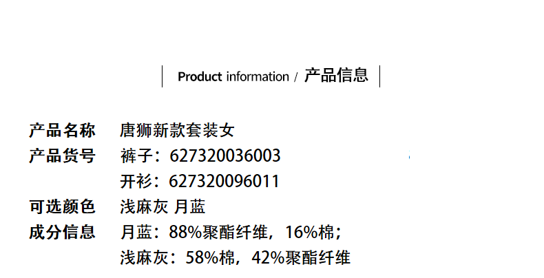 Tang Shi Women's Drawstring Knitted Pants Suit Women's Cardigan Moon Blue L