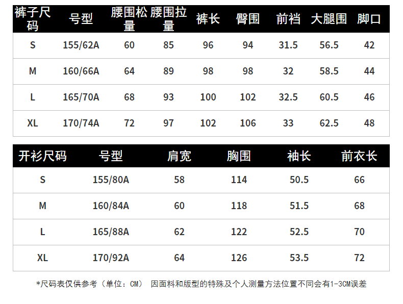 China (cm) 160-165/84-86 165-170 / 88-90 167-172 / 92-96 168-173 / 98-102 170-176 / 106-110