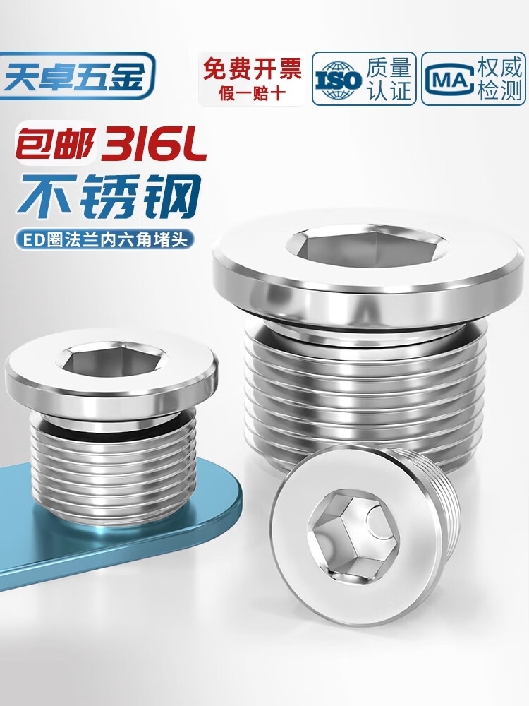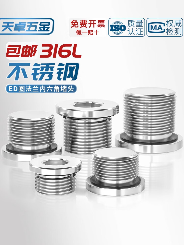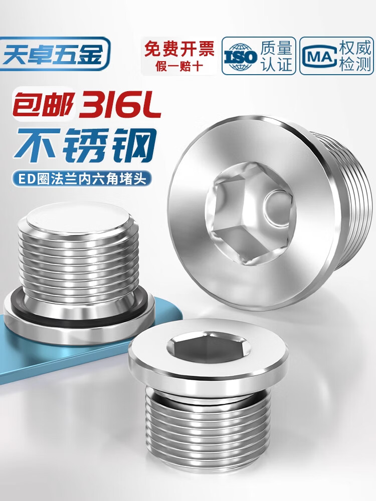 Tianzhuo Hardware 316L stainless steel inner hexagonal ED ring sealing plug with flange edge oil plug British wire plug G1/2 3 points M10*1 1 piece 316L material