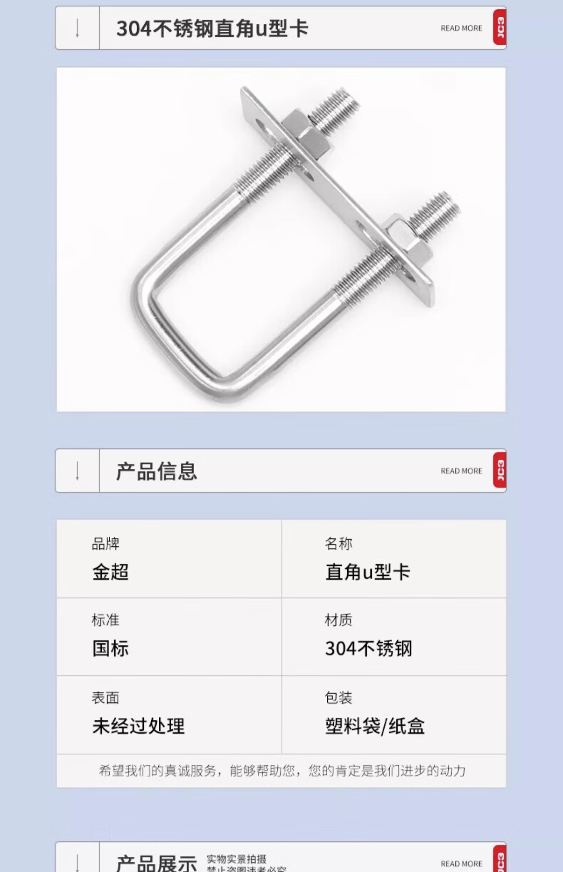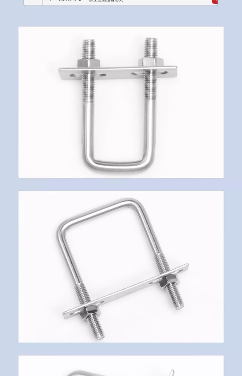 Jinchao 304 stainless steel square card, right-angle card, U-bolt, right-angle screw, U-shaped square card, square pipe clamp, pipe clamp, M10*100*150 1 set (including baffle nut)