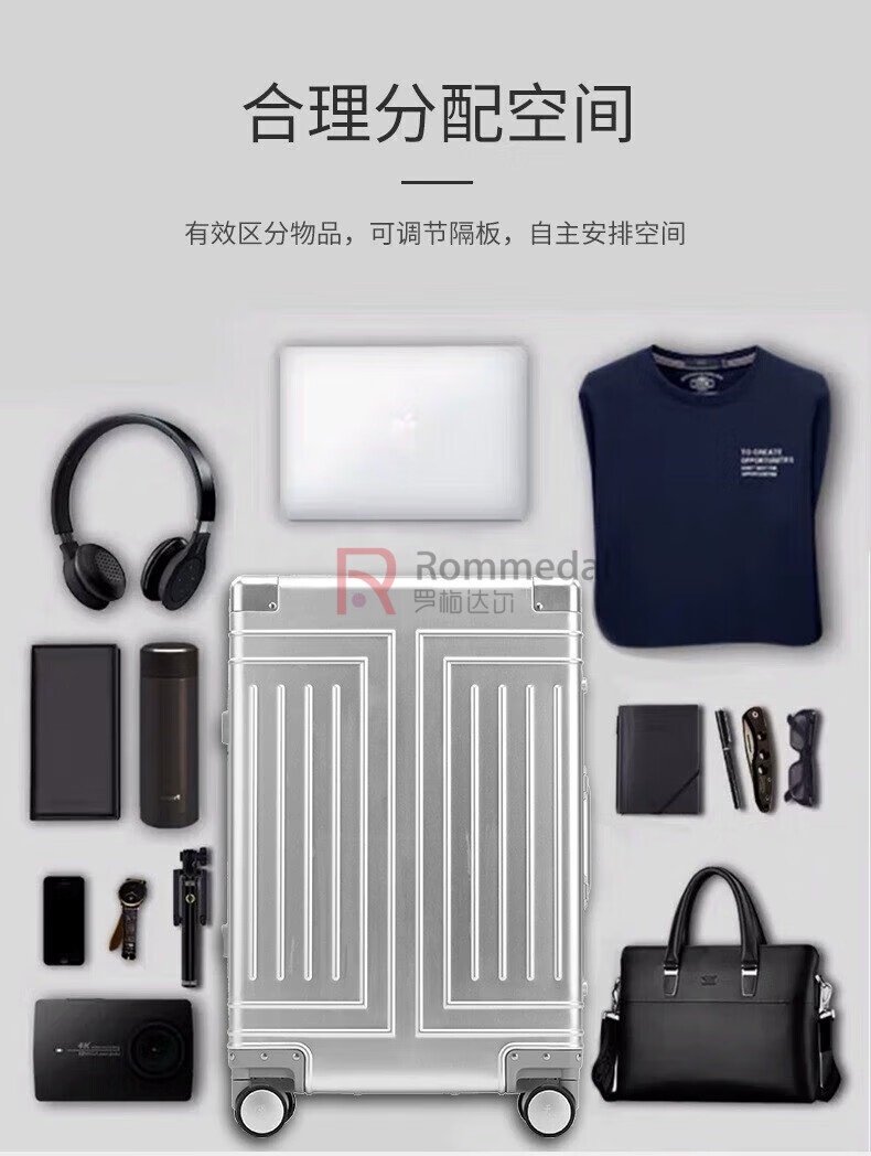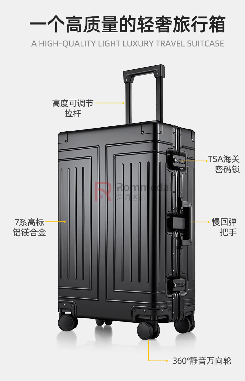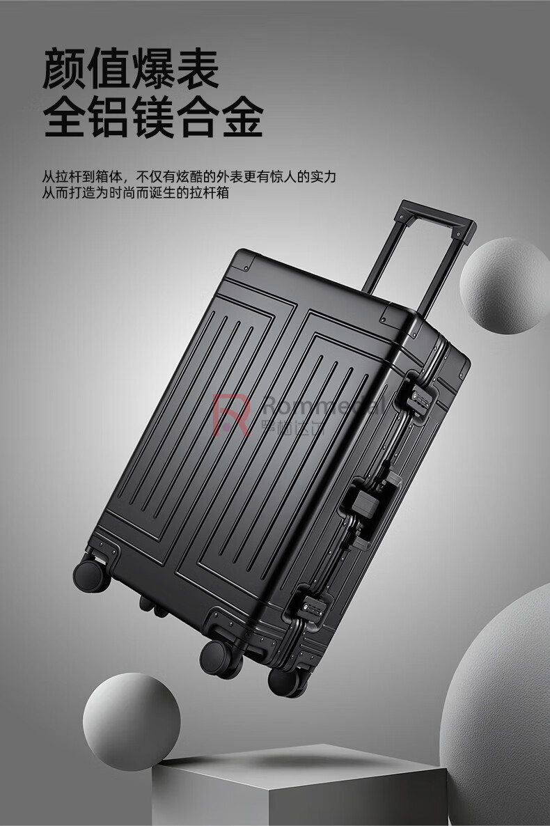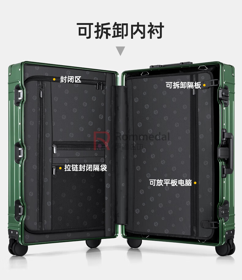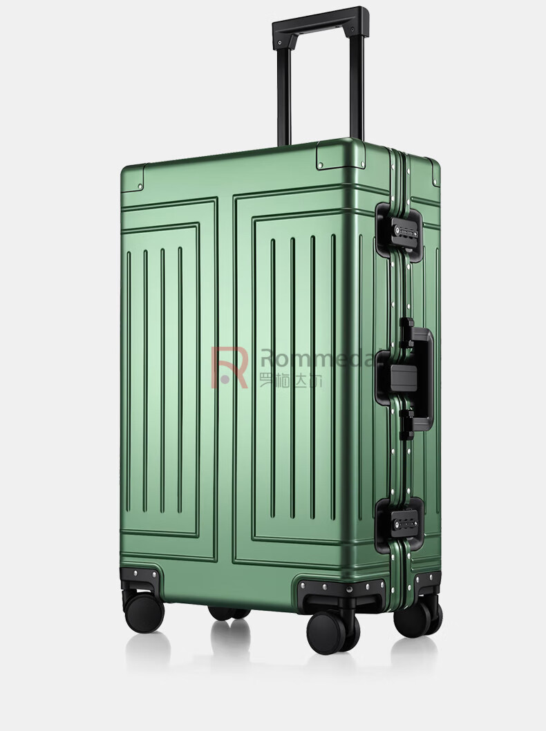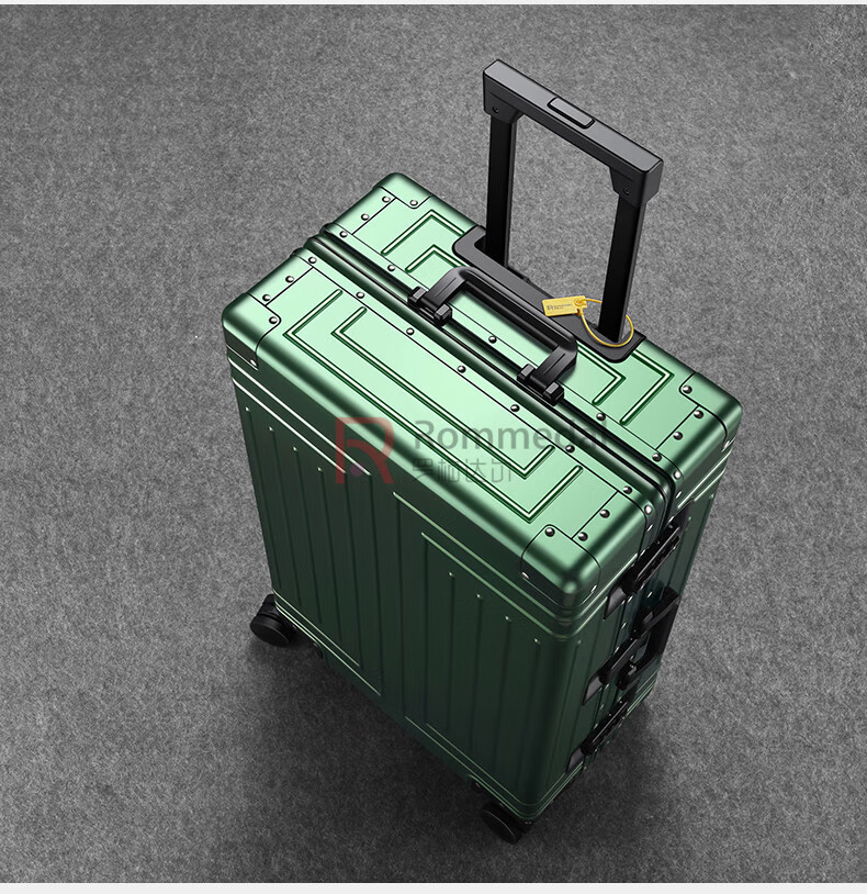 Rommedal high-end luggage for men and women, retro aluminum frame, aluminum-magnesium alloy trolley case, business trip suitcase, checked boarding case, dark green 28 inches