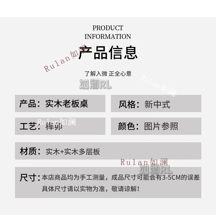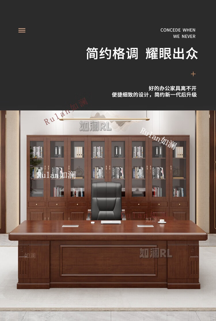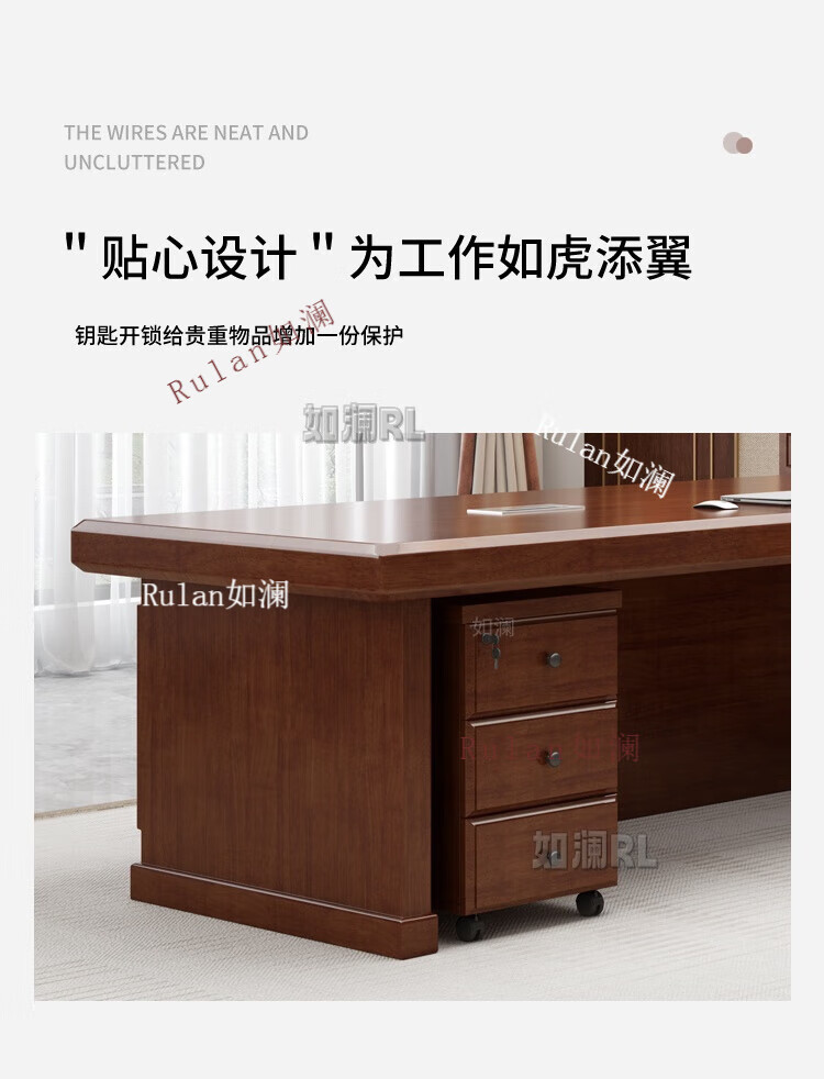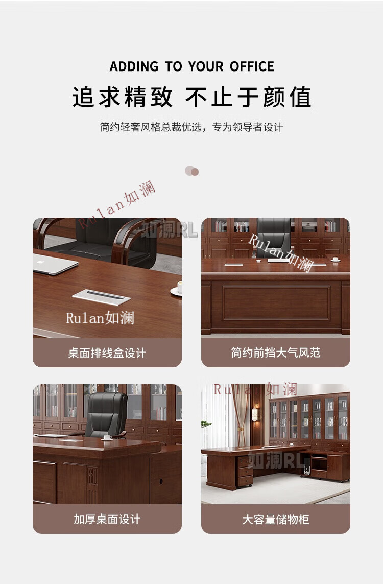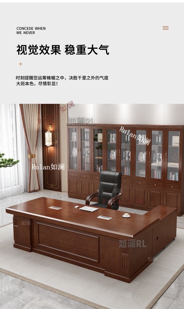 Rulan solid wood boss desk desk president desk simple modern executive desk new Chinese style office desk and chair combination boss desk + long and short deputy cabinet + chair + 6-door bookcase 2.0 meters
