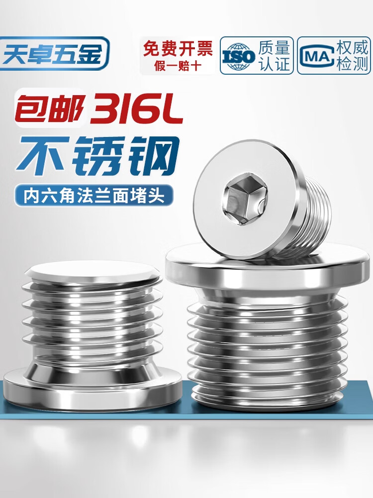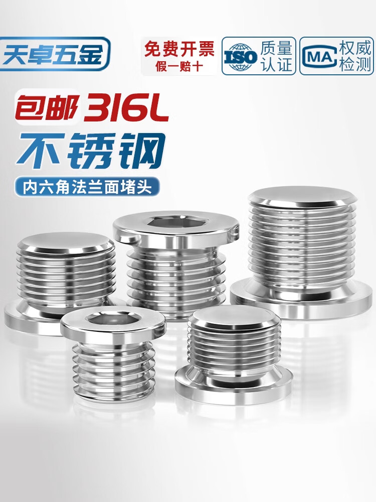 Tianzhuo Hardware 316L stainless steel with side pipe plug inner hexagonal flange oil plug bulk head G1 points 2 points 4 points 6 points 1 inch 2 M12*1.5 316L stainless steel