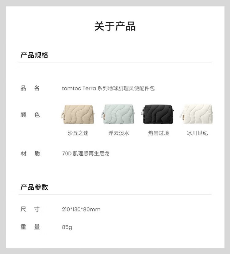 Tomtoc Earth Texture Computer Accessories Bag Data Cable Storage Bag Travel Portable Storage Charger Multi-Function Storage Bag Fuyun Freshwater One Size