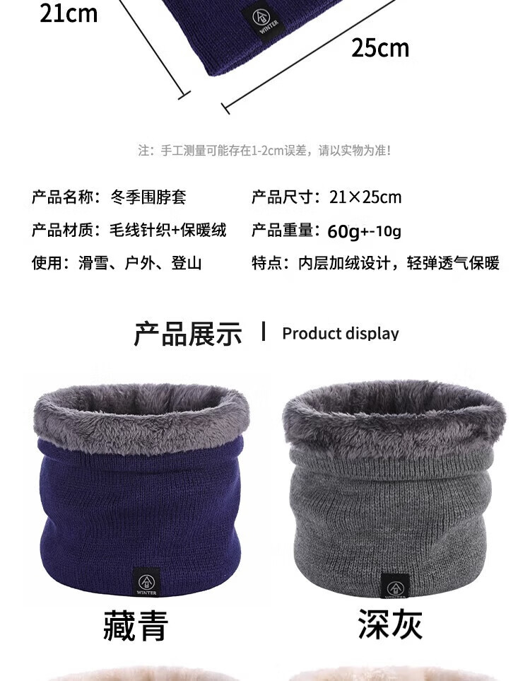 Pengjing Outdoor Winter Men's Warm Neck Warm Women's Velvet Thickened Cold Mask Cycling Windproof Face Protection Neck Scarf Knitted Thickened Neck Warm Black