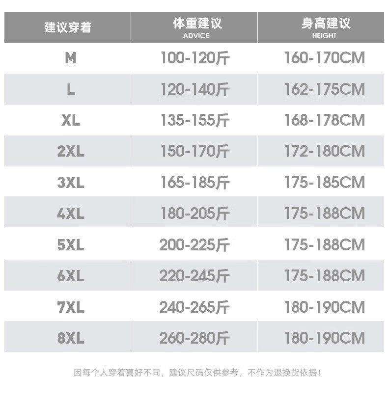 China (cm) 165 / 88-90 170 / 96-98 175 / 108-110 180 / 118-122 185 / 126-130