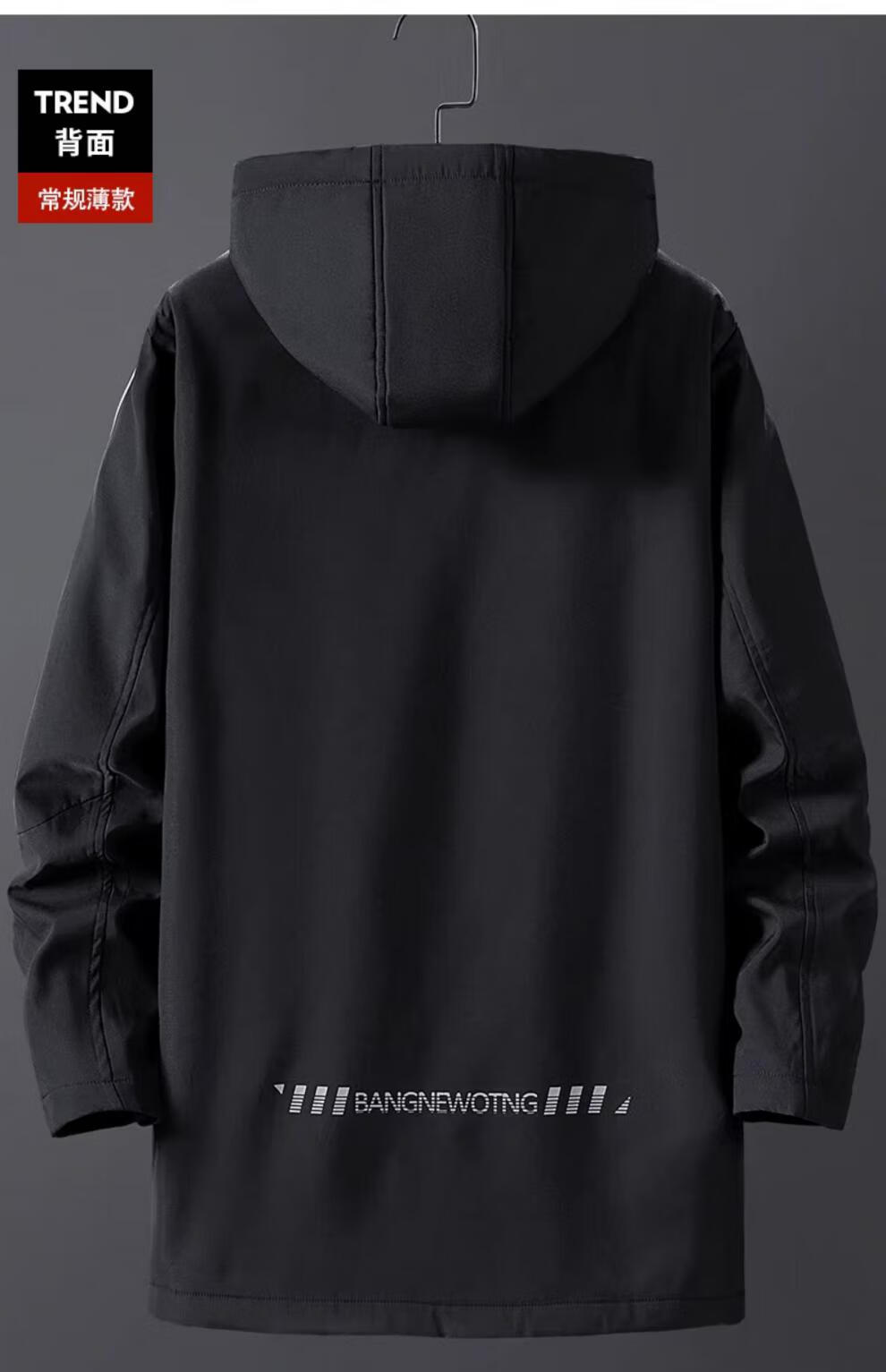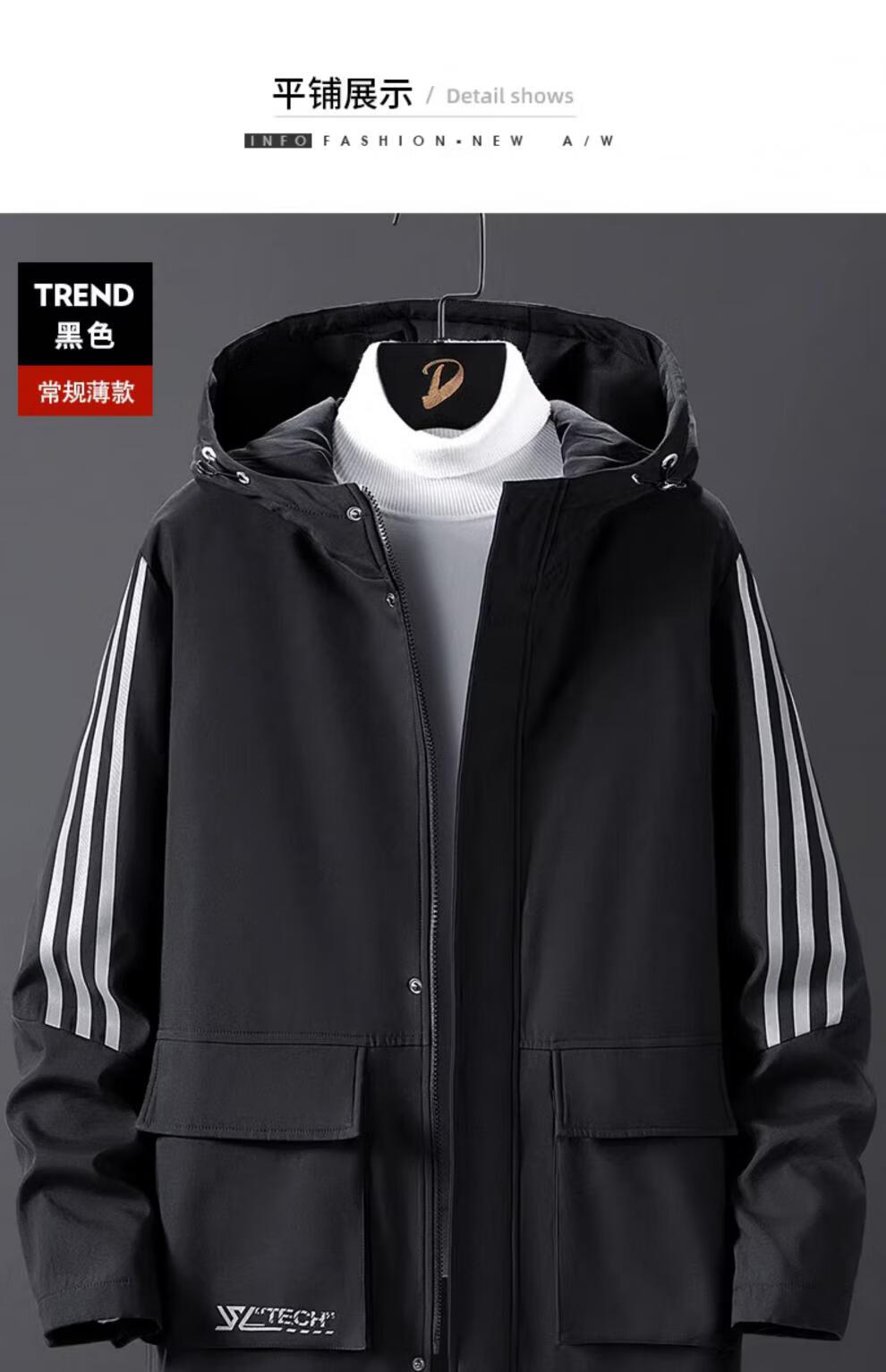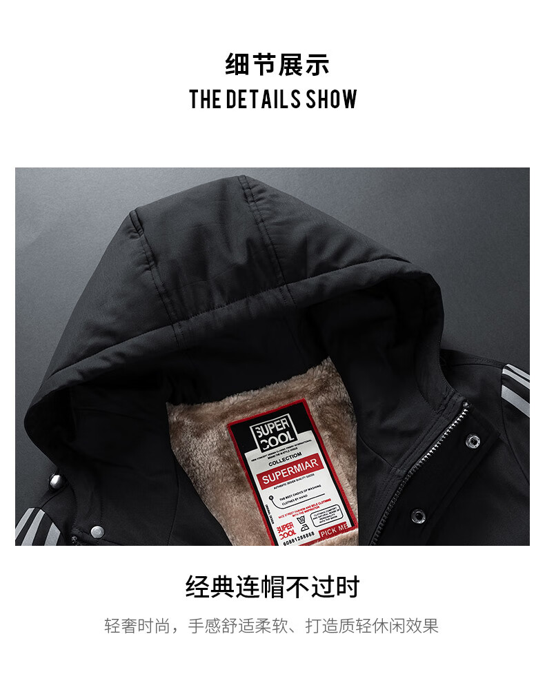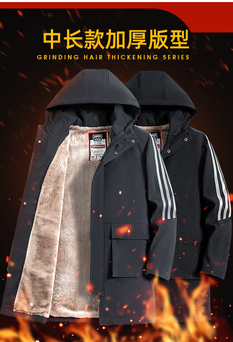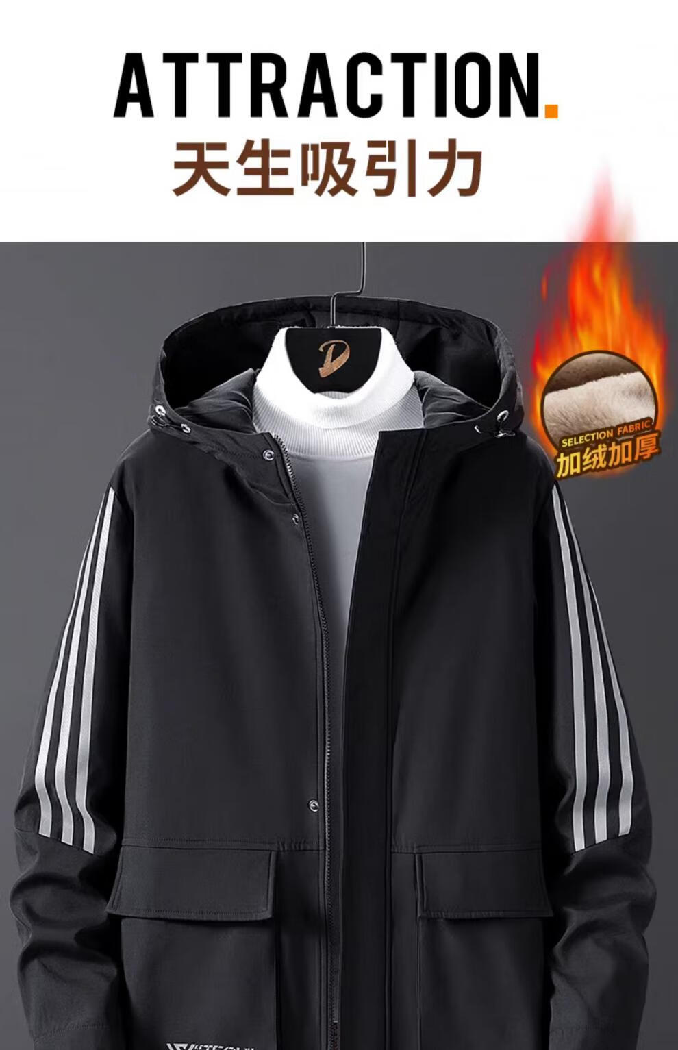 JEEP SPIRIT spring, autumn and winter thickened large size windbreaker men's medium-length coat loose thin velvet trendy fat casual coat new style men's black (plus velvet and thickened) 6XL 225-244Jin Jin equals 0.5 kg