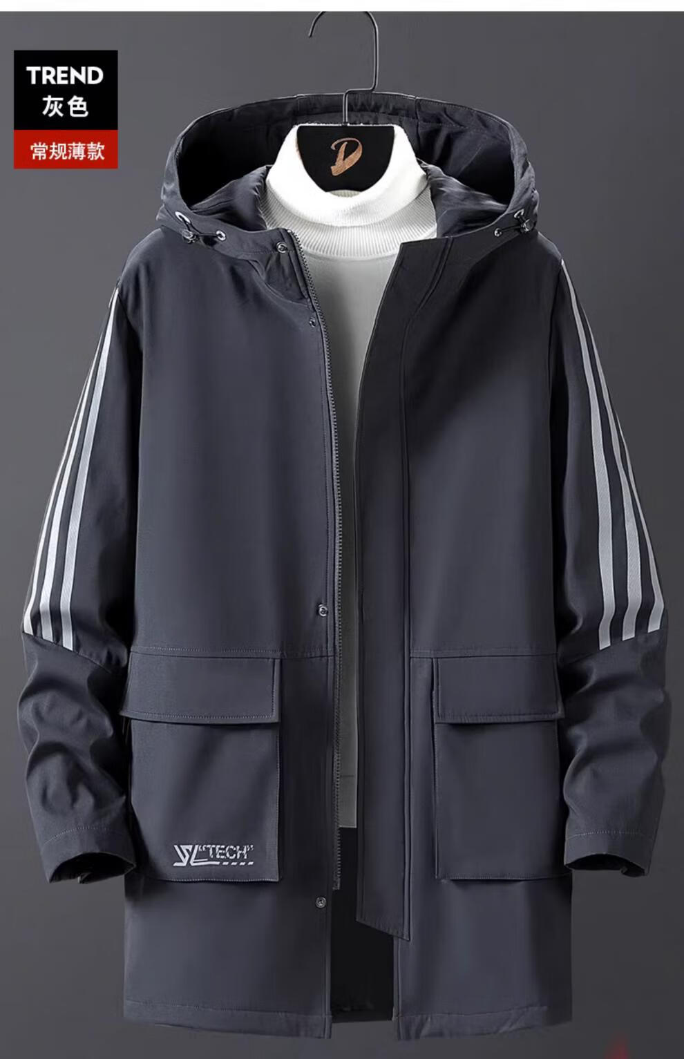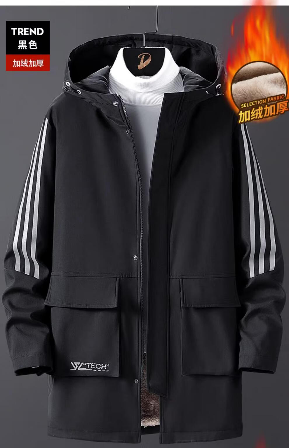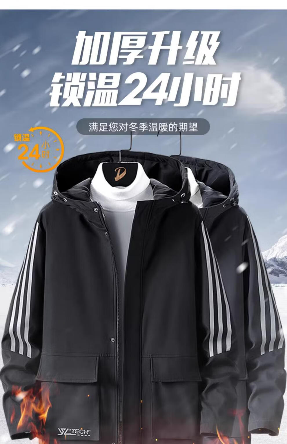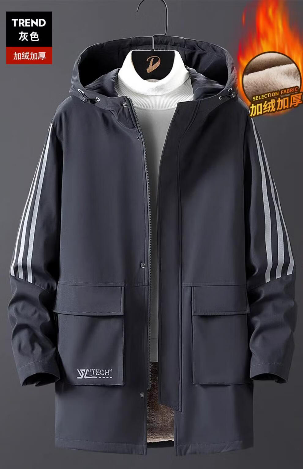 JEEP SPIRIT spring, autumn and winter thickened large size windbreaker men's medium-length coat loose thin velvet trendy fat casual coat new style men's black (plus velvet and thickened) 6XL 225-244Jin Jin equals 0.5 kg