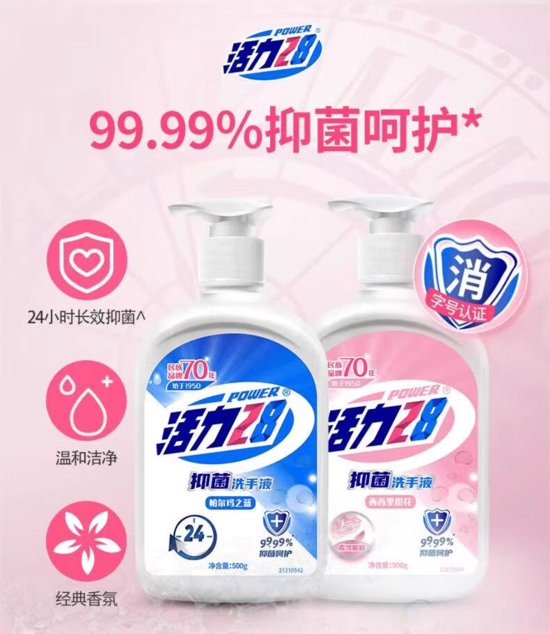 Vitality 28 antibacterial hand sanitizer 500g bottled fragrance, decontamination, gentle skin care, easy to carry, home and commercial use Parma Blue 500g*3 bottles