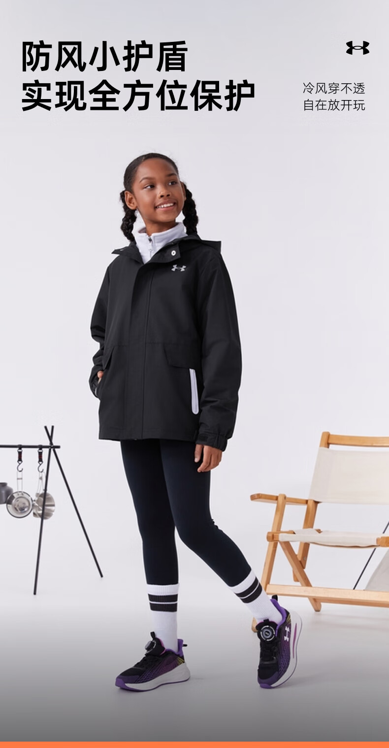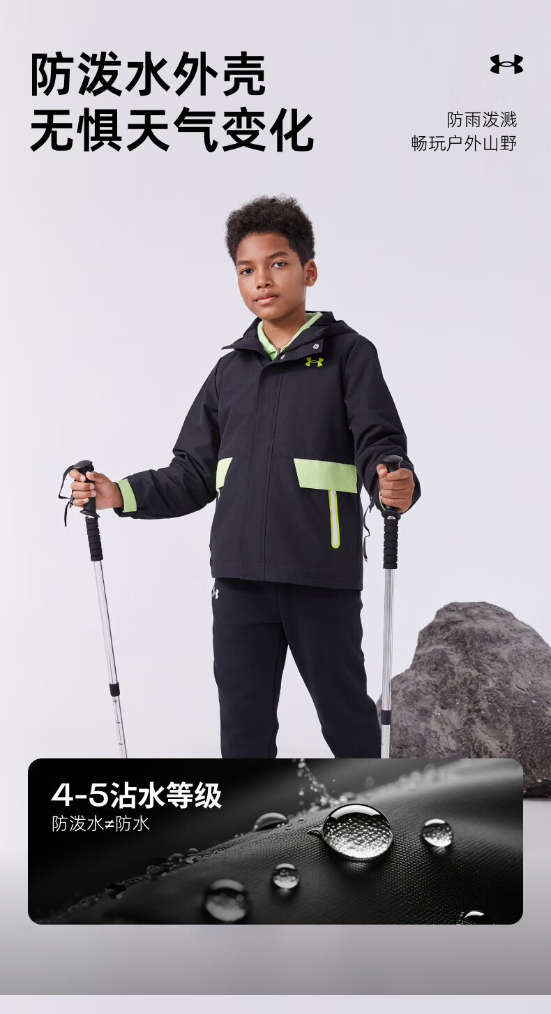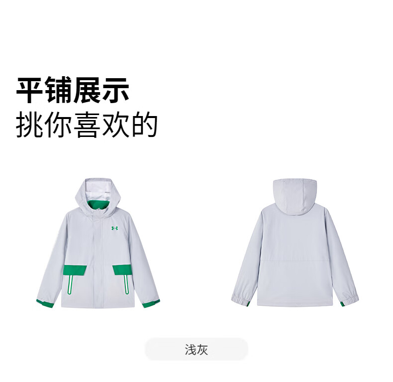 Under Armor children's clothing children's woven outdoor two-piece set for boys and girls hooded spring detachable jacket 244122340 black/grey 170