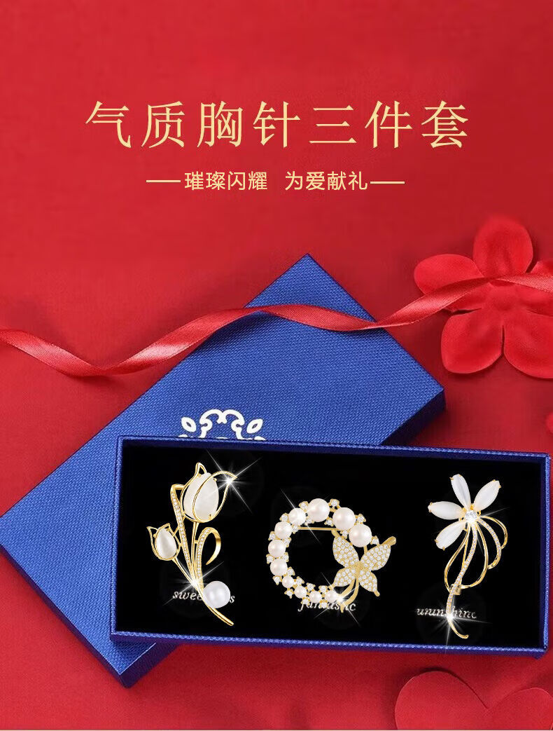 Ancient brooch, high-end women's exquisite niche corsage gift box, light luxury and elegant pin, silk scarf button, birthday gift for women, practical temperament brooch three-piece gift box