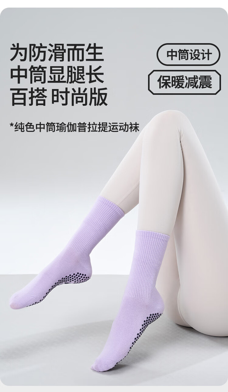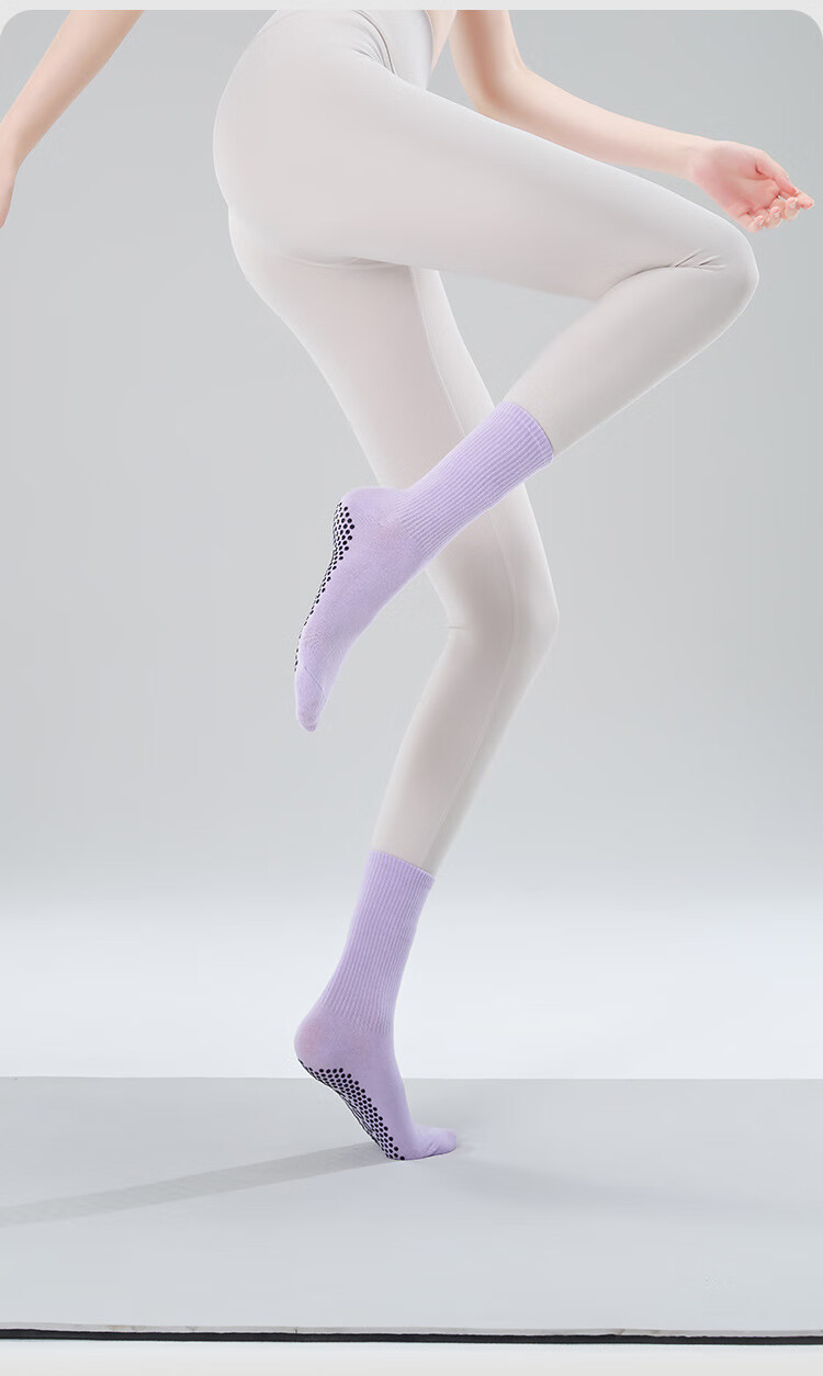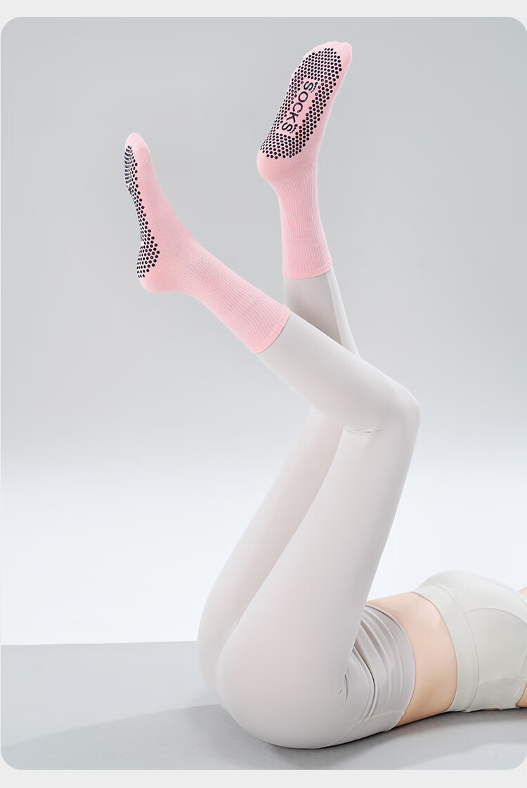 ClescKasu solid color mid-calf Pilates socks for women in autumn and winter non-slip fitness dance sports socks yoga socks rouge powder one size