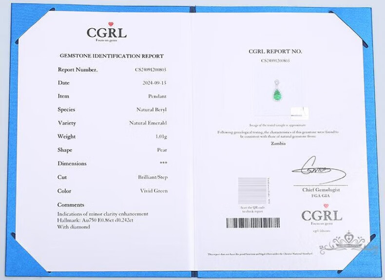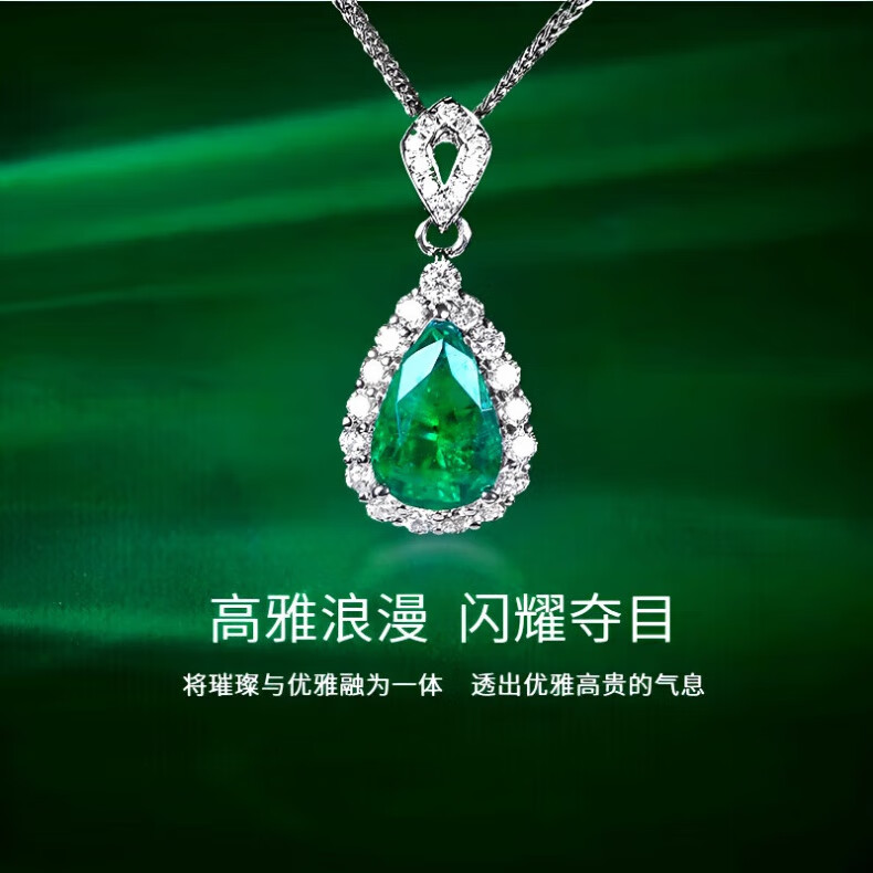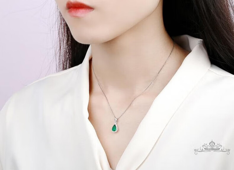 Haikai Necklace Women's Emerald Gemstone Necklace Zambian Luxury Jewelry Chinese Valentine's Day Birthday Gift for Wife Zambian Emerald Necklace (0.86CT/Selected Flawless)