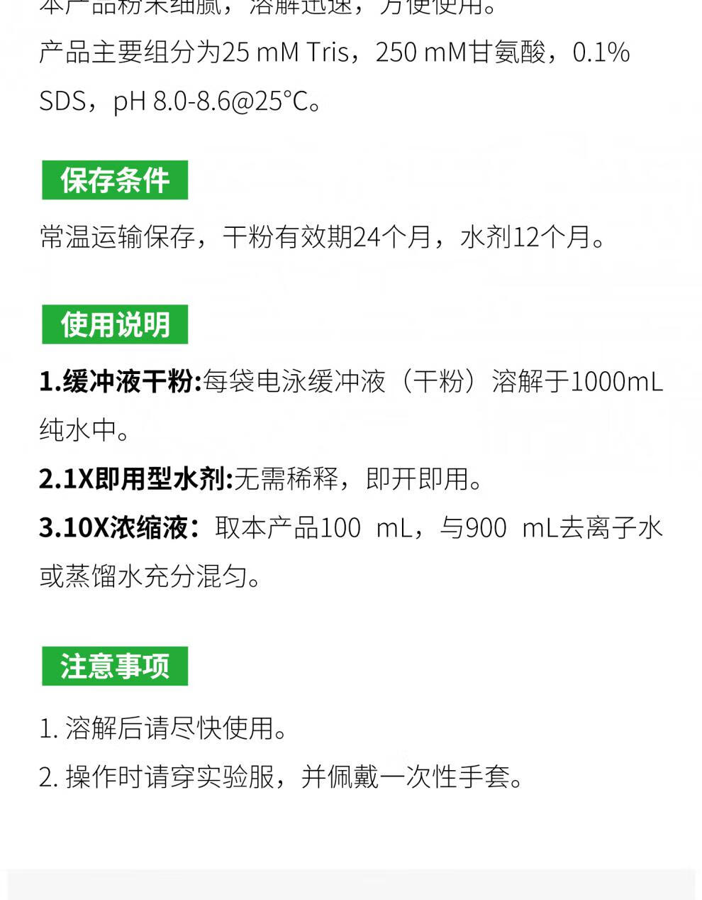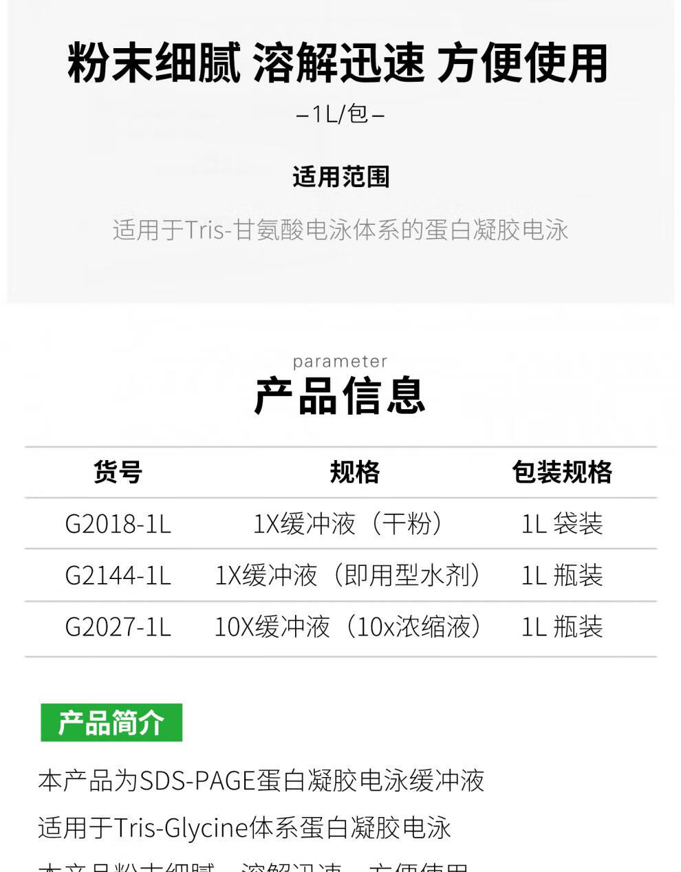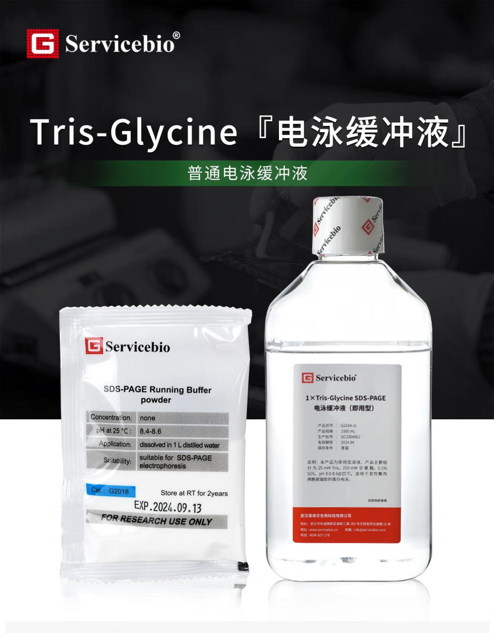 Sevier SDS-PAGE Tris-glycine electrophoresis buffer dry powder ready-to-use G2018 G2144 dry powder 1L*15 pack G2018-15