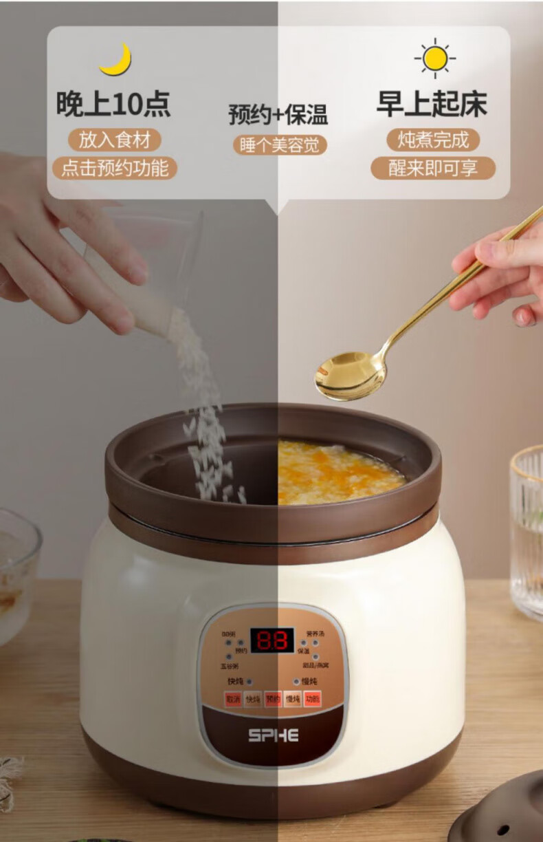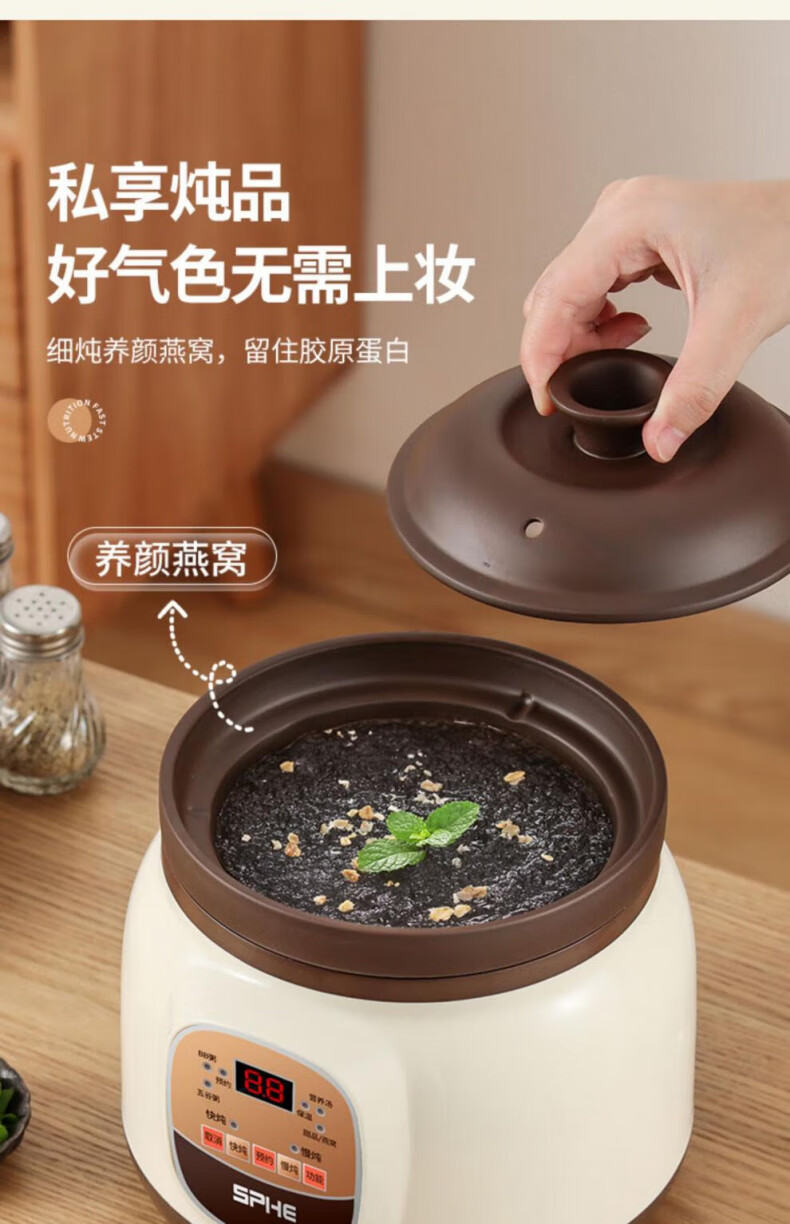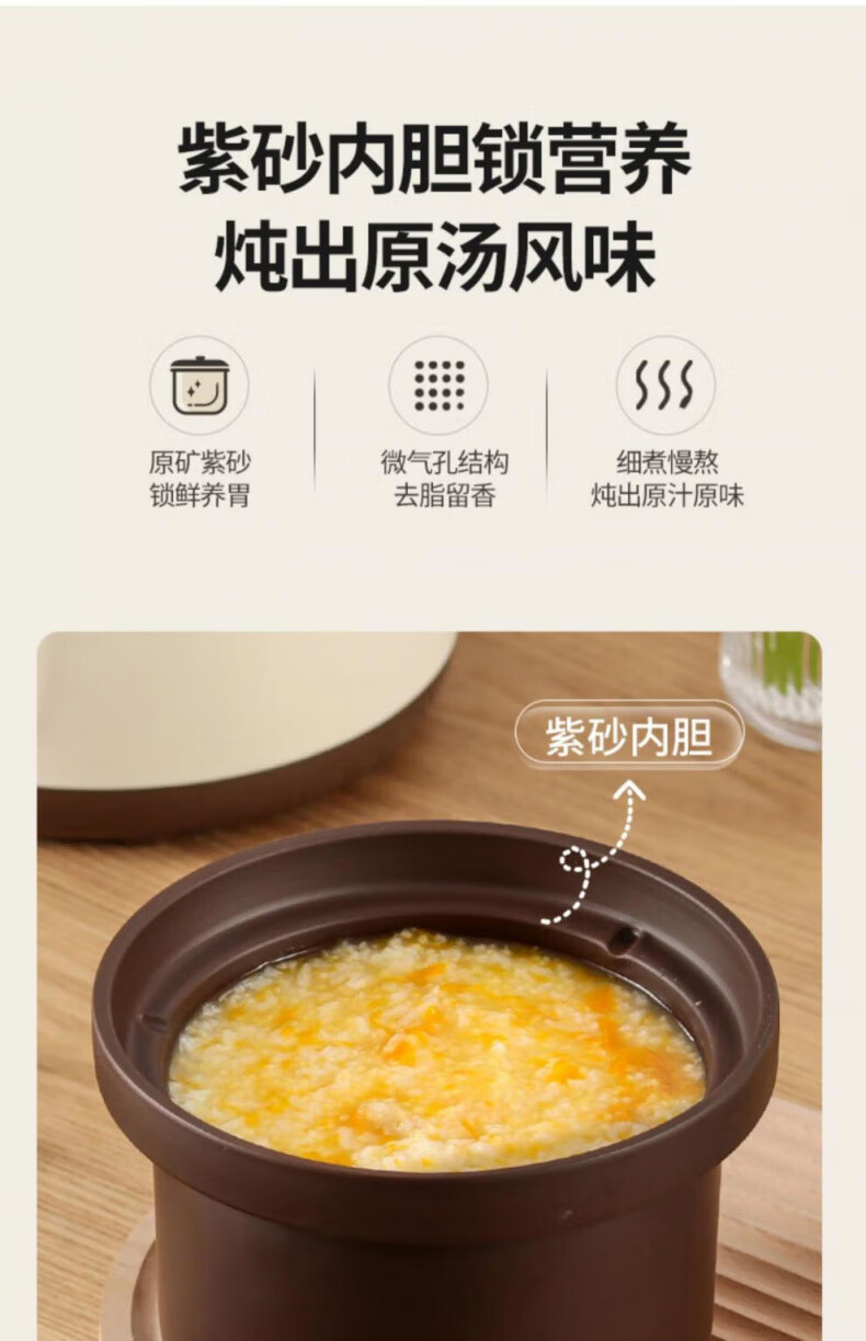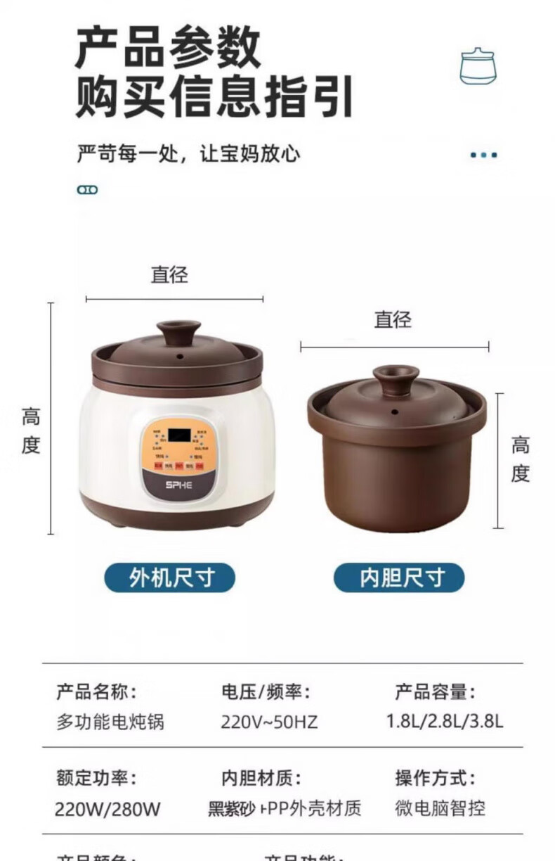 QCSK German Multifunctional Purple Clay Electric Stew Pot for Soup and Porridge Fully Automatic Healthy Pot Home bb Stew Cup Casserole Black Purple Clay Fast and Slow Stew Reservation (Suitable for 1-3 People) 1.8L