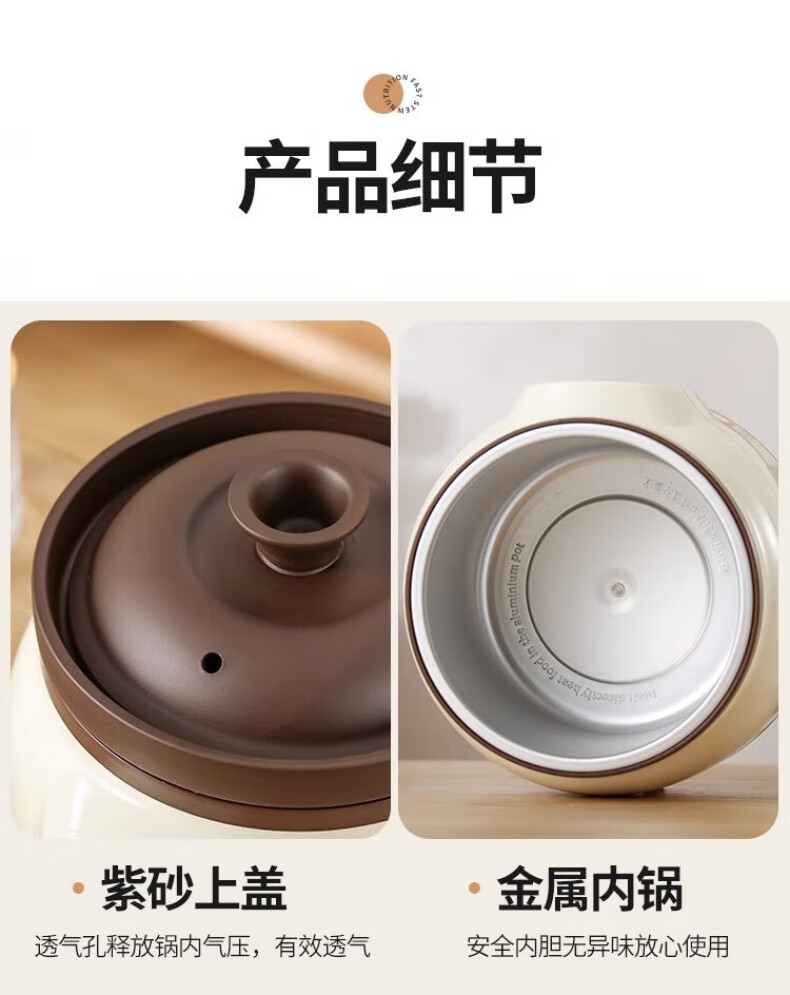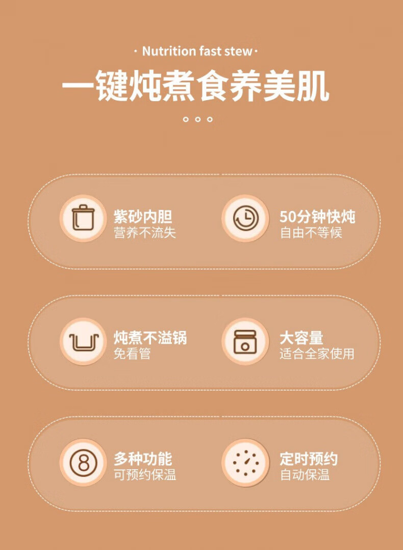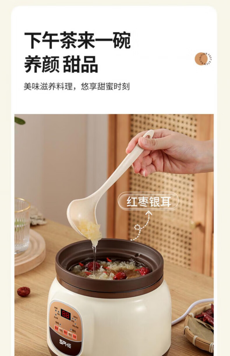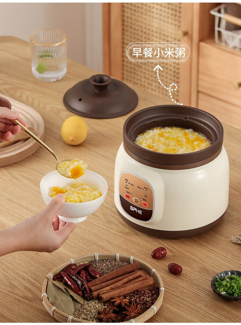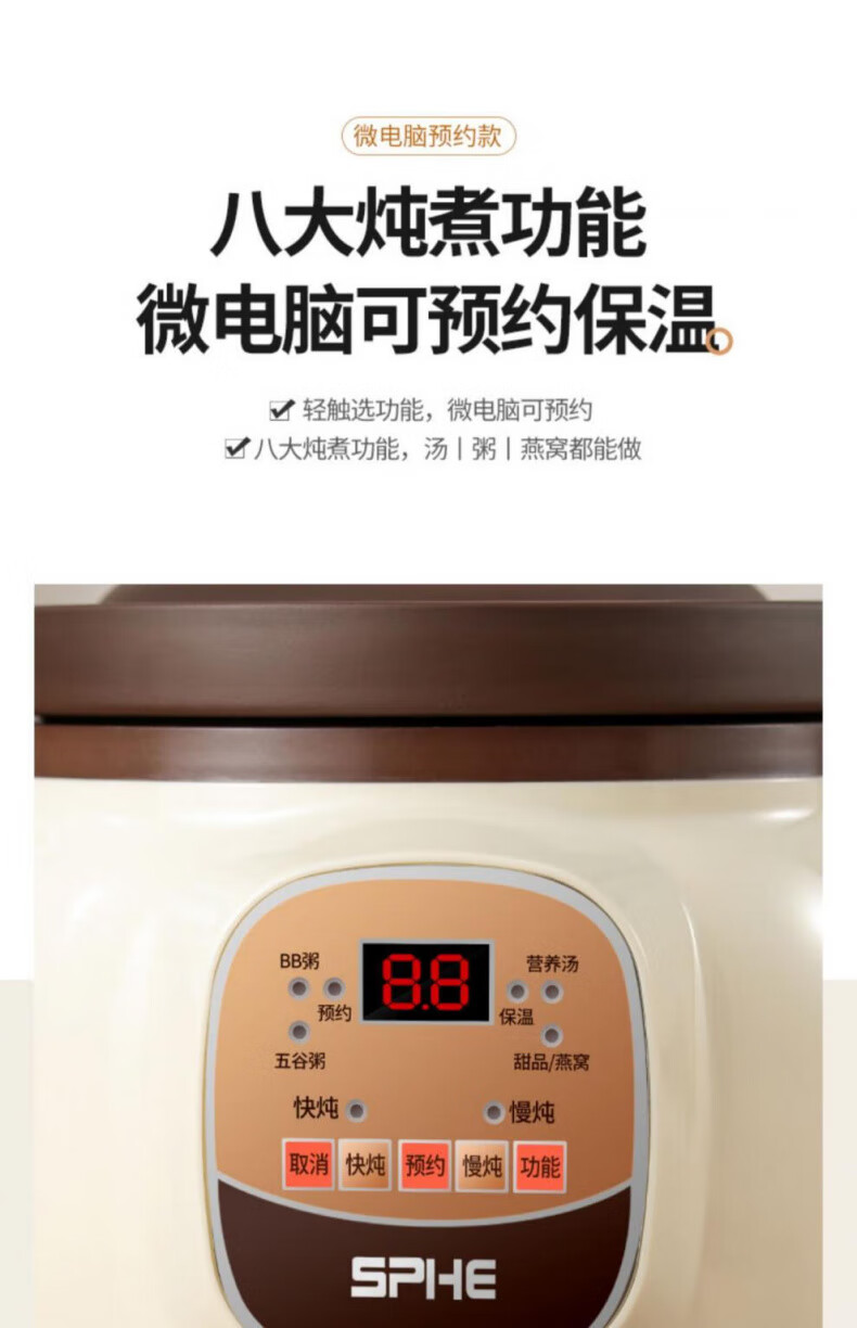 QCSK German Multifunctional Purple Clay Electric Stew Pot for Soup and Porridge Fully Automatic Healthy Pot Home bb Stew Cup Casserole Black Purple Clay Fast and Slow Stew Reservation (Suitable for 1-3 People) 1.8L