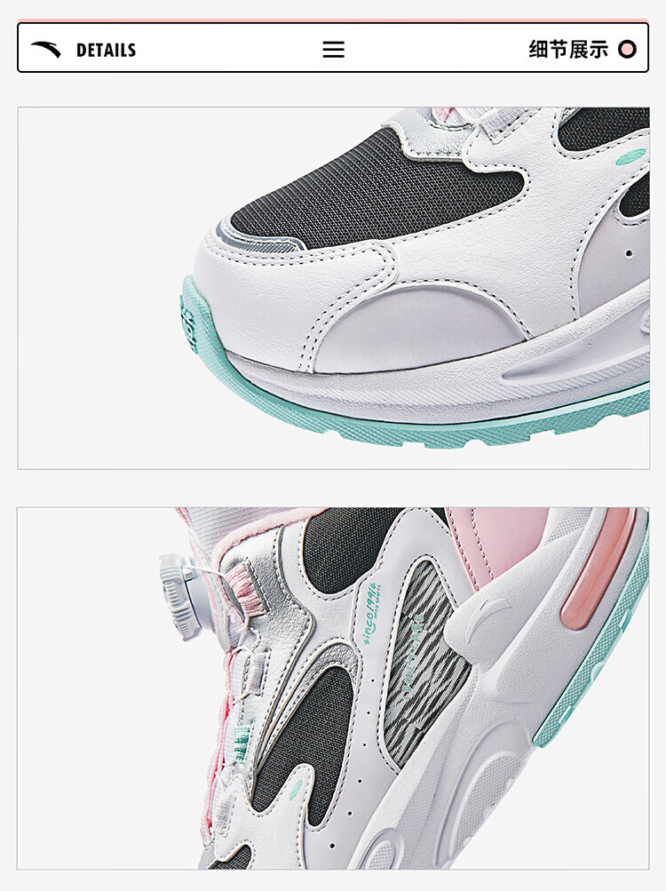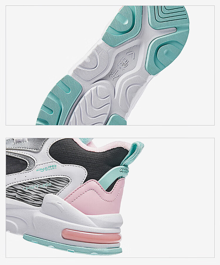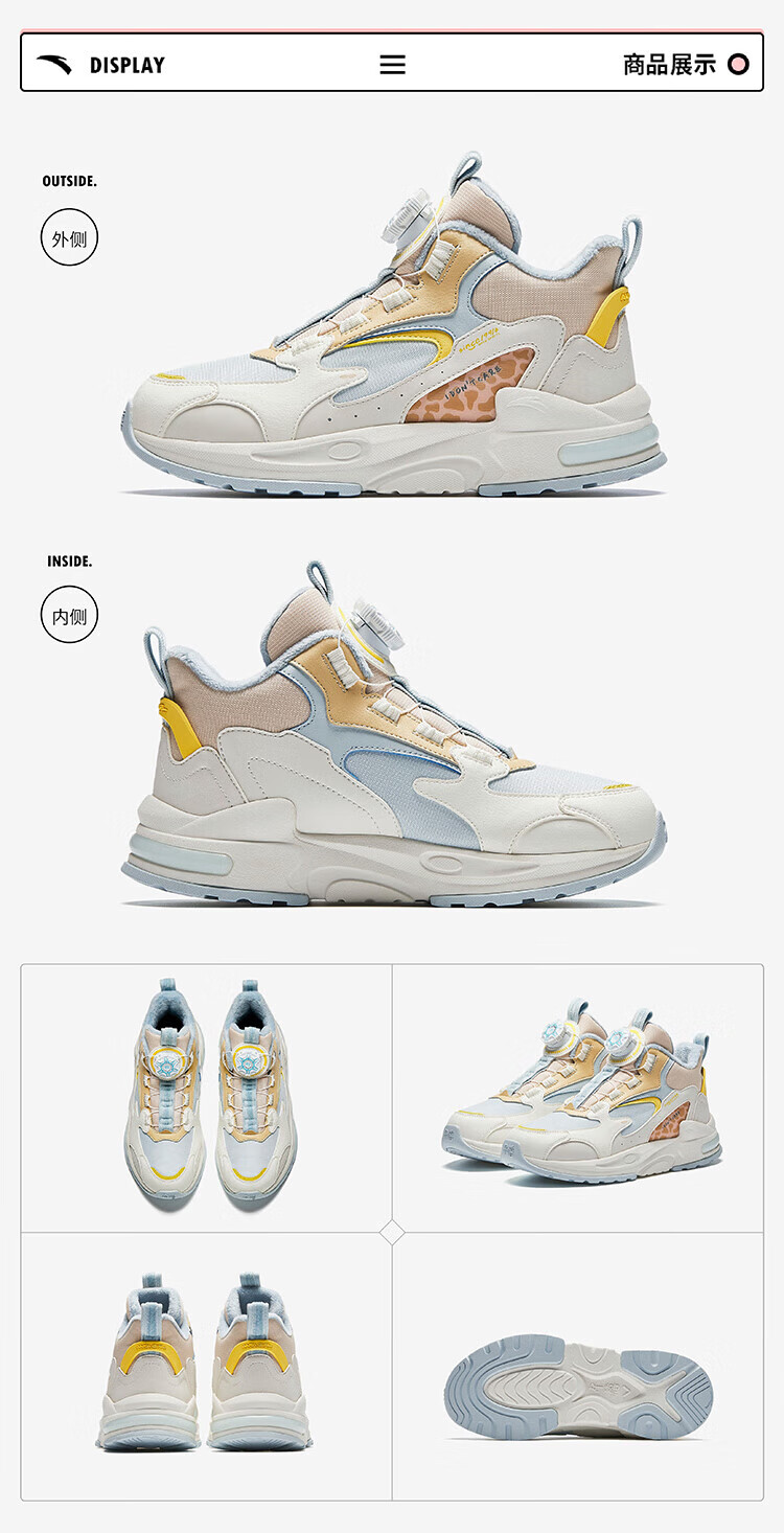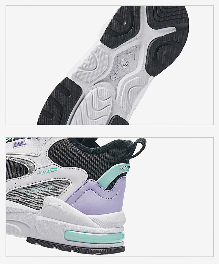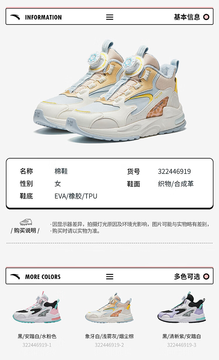 ANTA Children's Cotton Shoes for Men and Women Big Kids' Shoes 2024 Winter Plus Velvet Warm Knob Buckle Snow Non-Slip Succulent Cotton Boots Women's Leather Black/Fresh Purple/White 6919N-2 36
