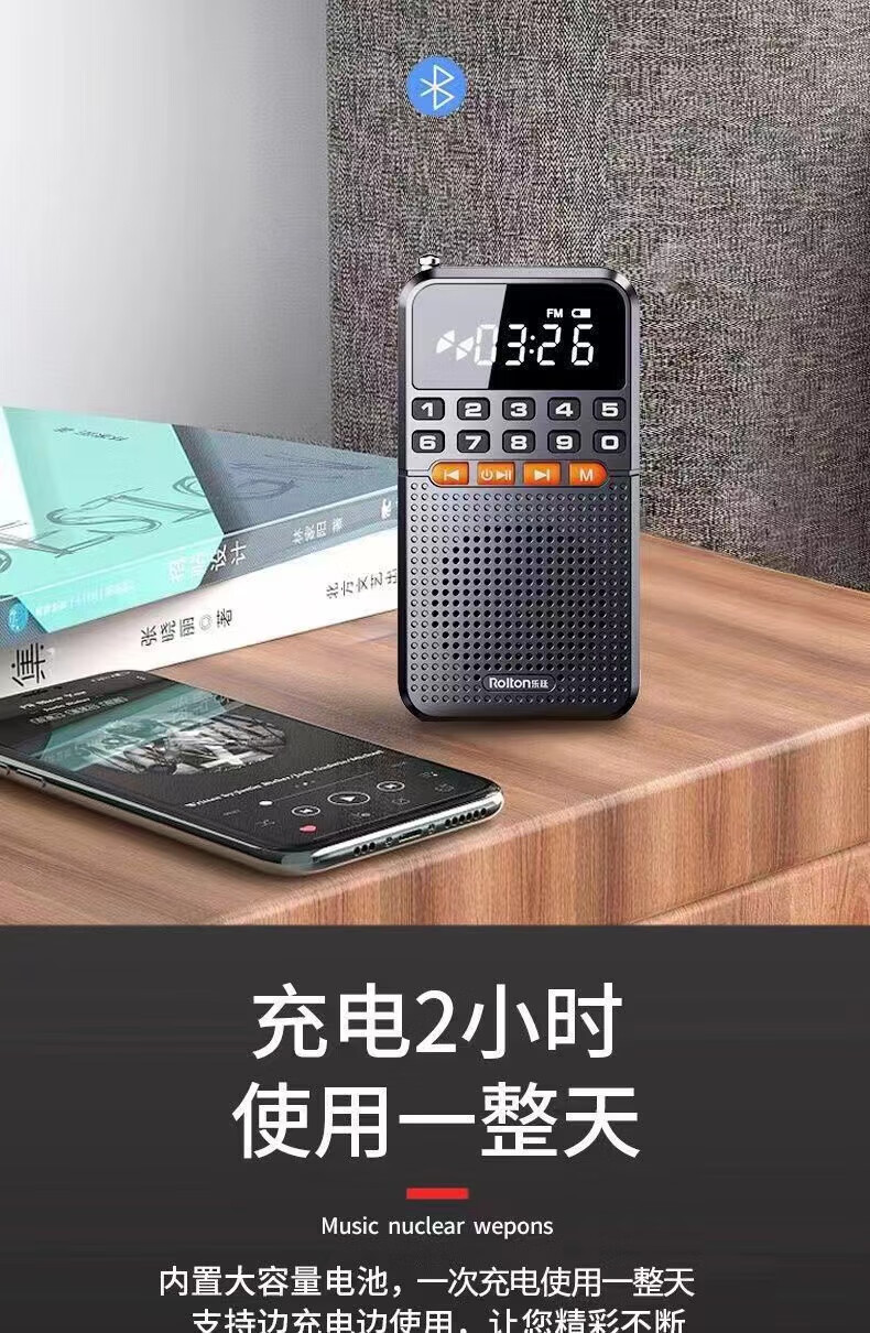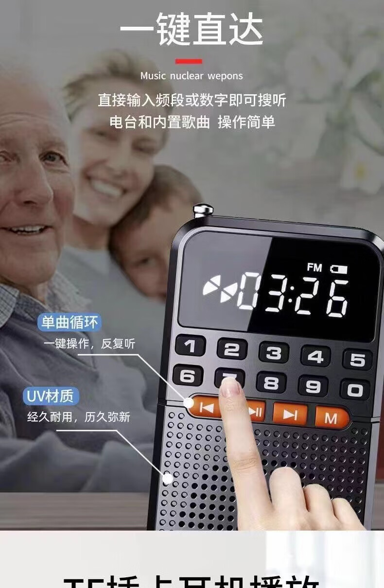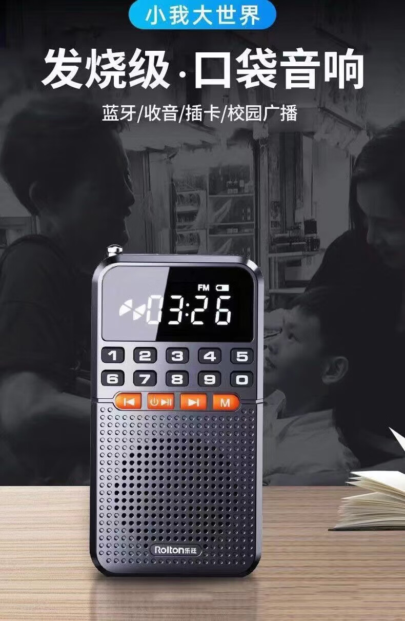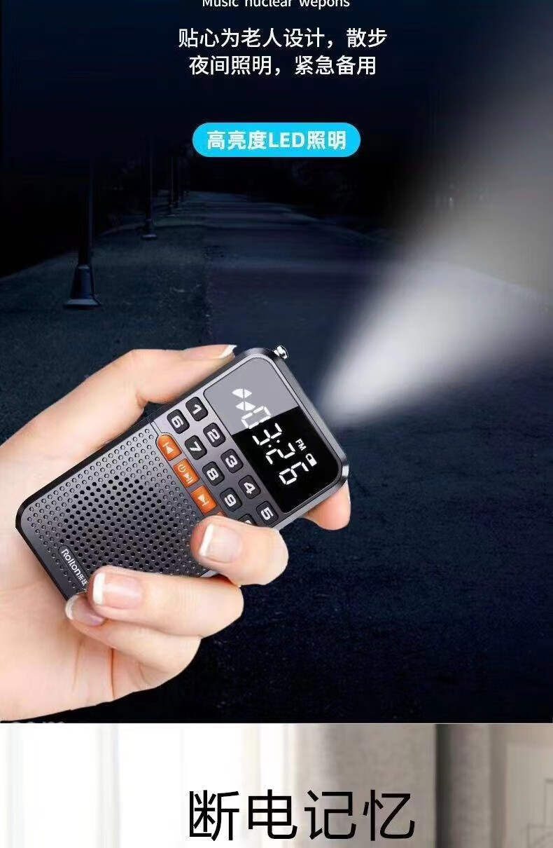 Laoting's new mini radio multi-function Bluetooth card player for the elderly semiconductor flashlight FM broadcast standard cool black