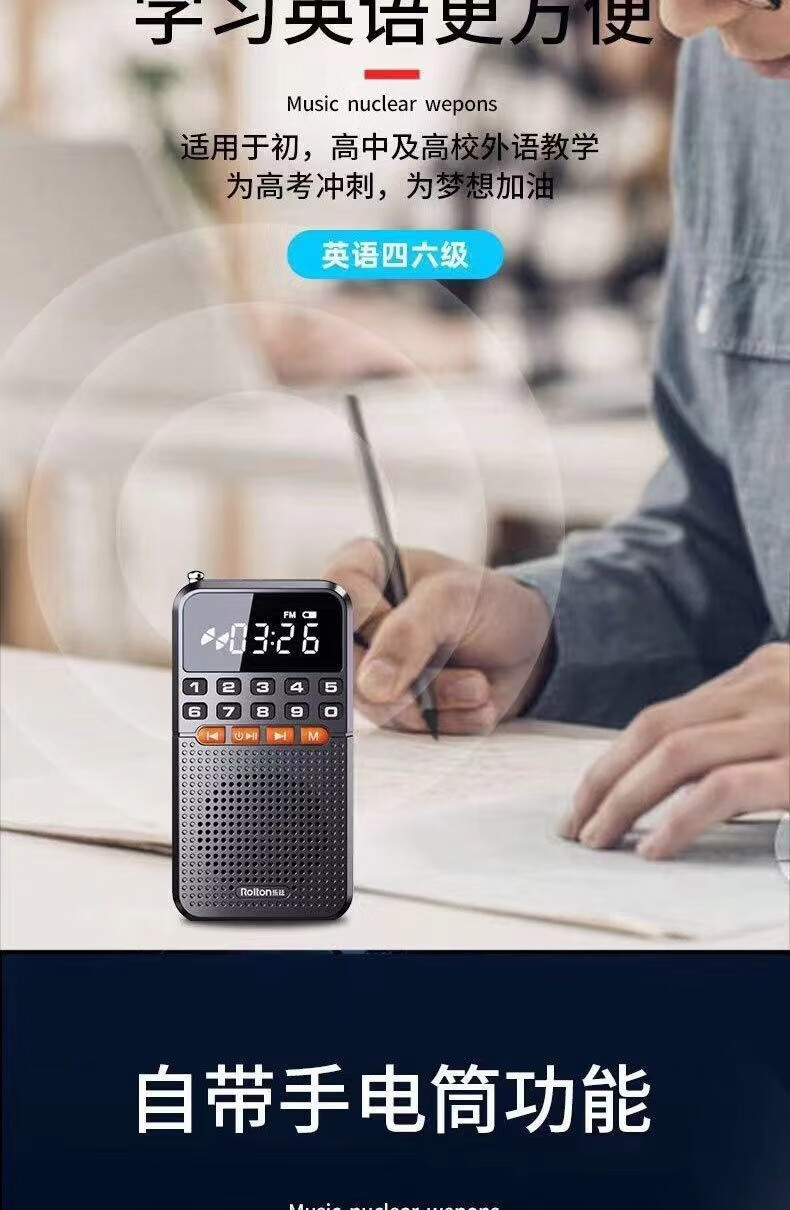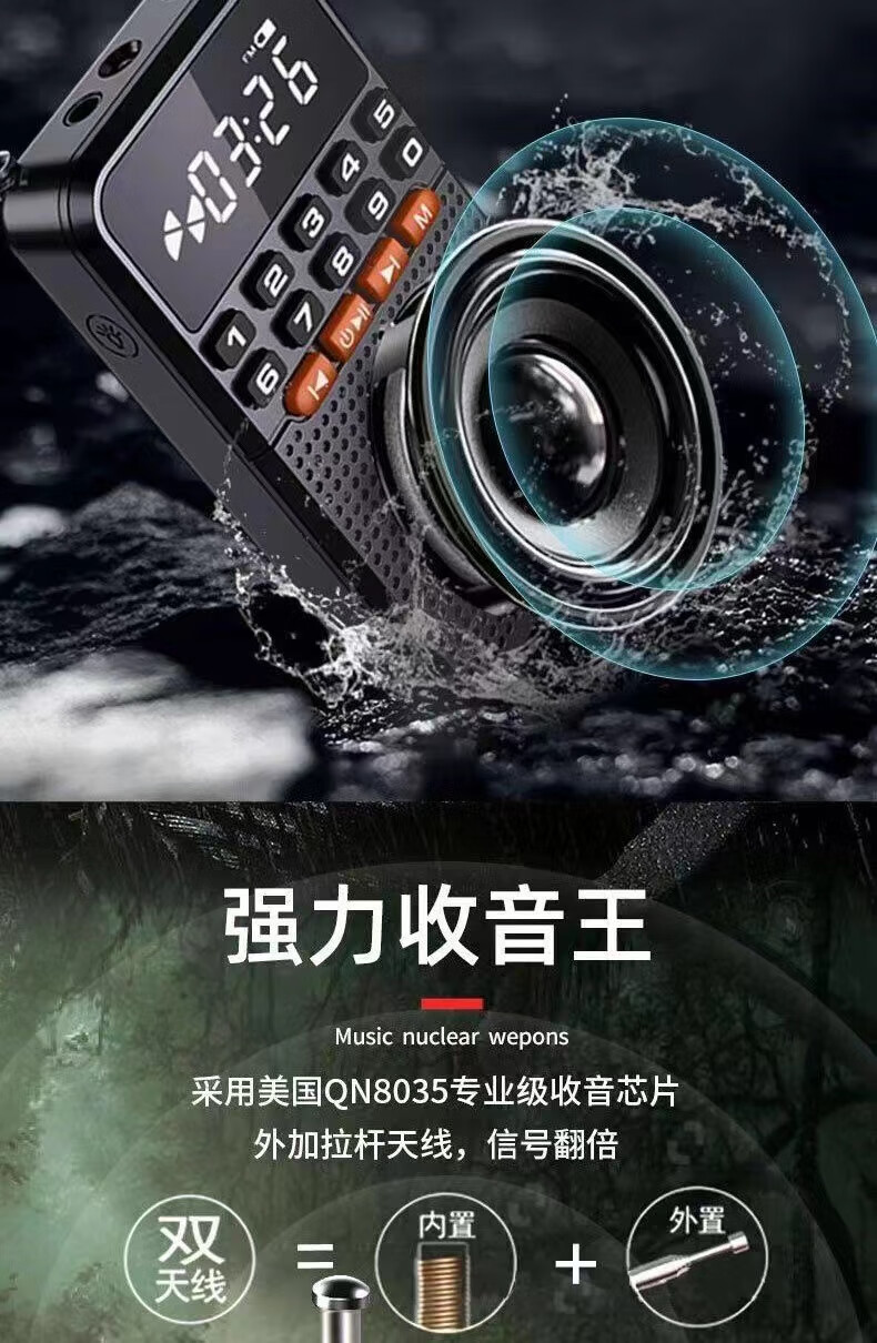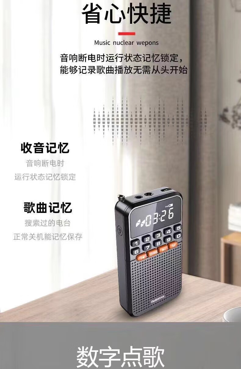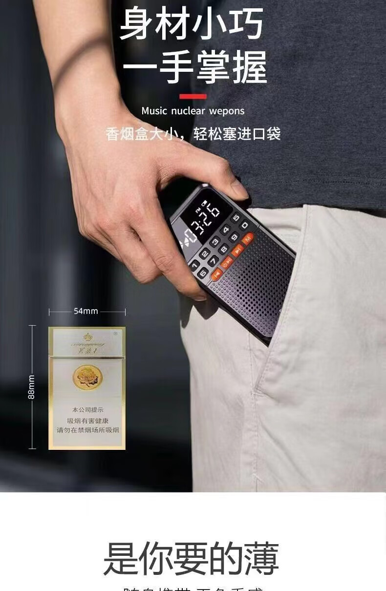 Laoting's new mini radio multi-function Bluetooth card player for the elderly semiconductor flashlight FM broadcast standard cool black