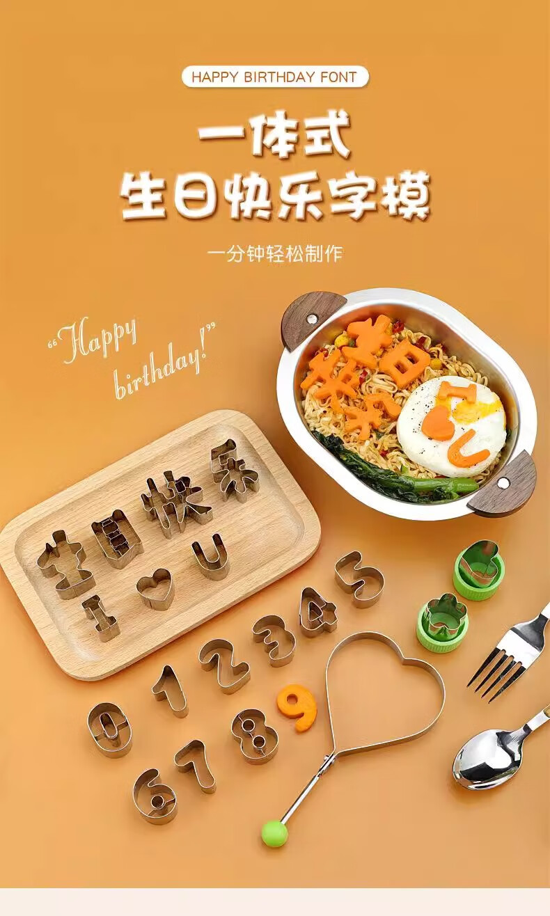Weiyi Happy Birthday Biscuit Mold Engraving, Cutting and Printing Household Digital Love Shape Mold Baking Integrated Shape l Heart U+Happy Birthday+Number Mold Fifteen-piece Set