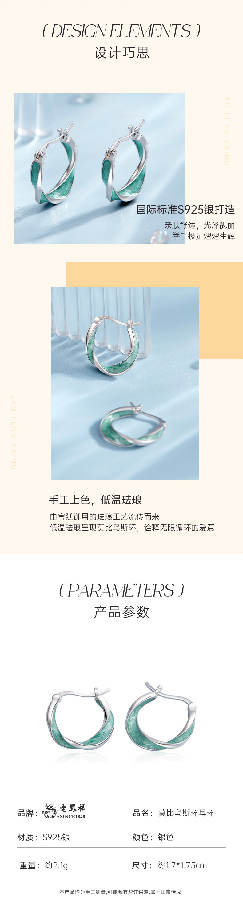 Lao Fengxiang S925 sterling silver earrings for women, Mobius high-end ear jewelry, anniversary birthday gift for girlfriend and wife, Mobius* brand gift box (local warehouse/next day delivery)