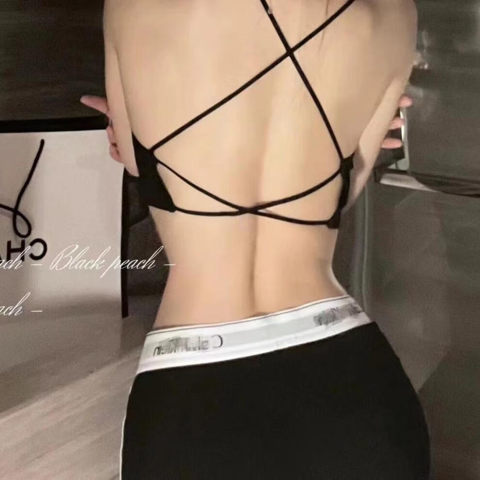 SKONWAT underwear for girls Korean style students without steel rims sexy gathered sagging beautiful back small chest suspender cross vest tube bra white + black small size 70-100Jin Jin is equal to 0.5 kg