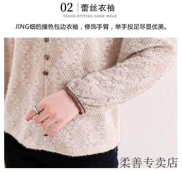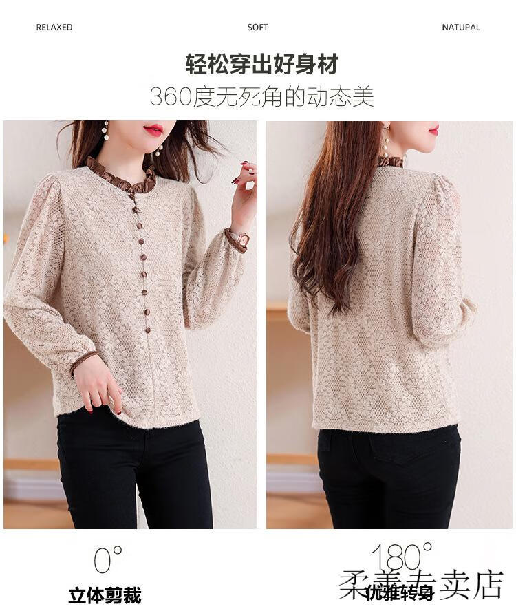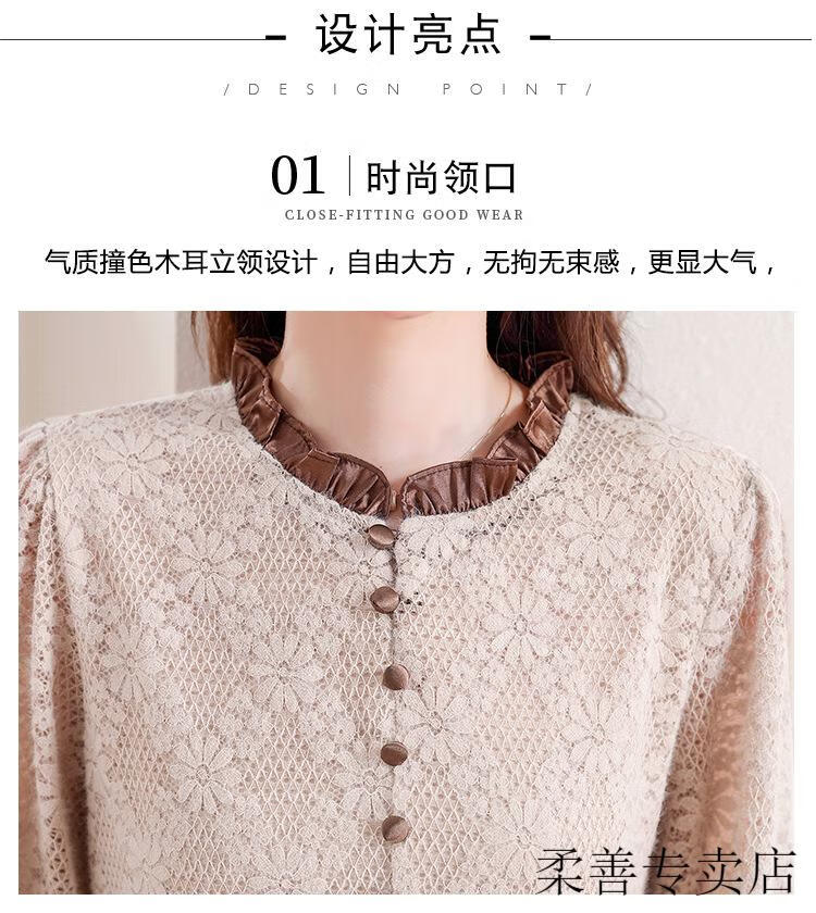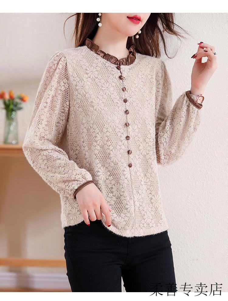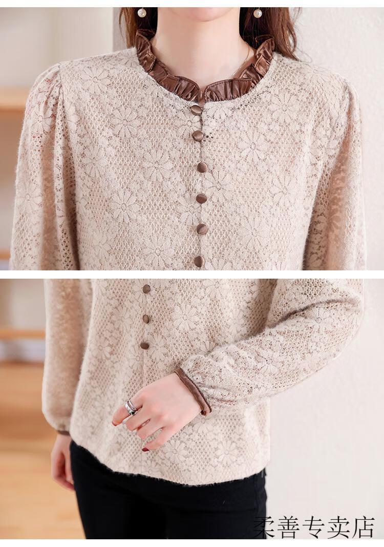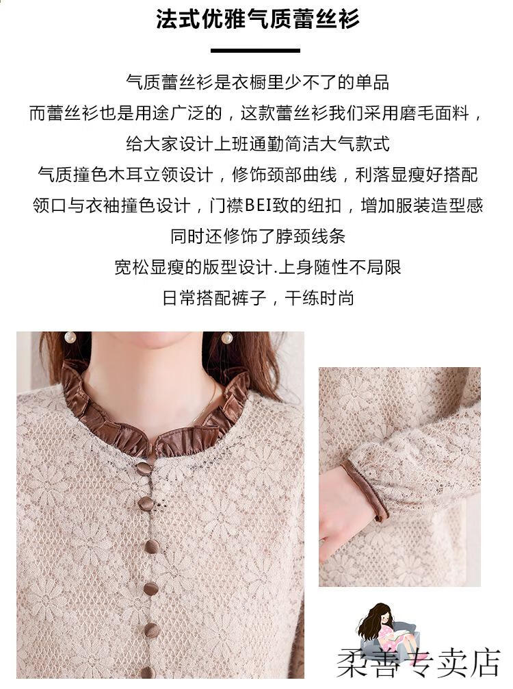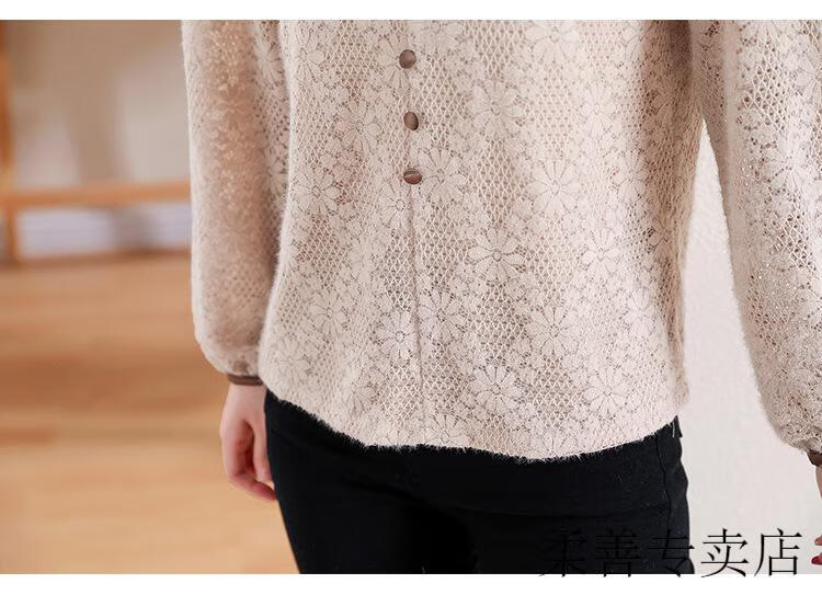 Woodpecker Stand Collar Lace Plus Velvet Thickened Bottoming Shirt Women 20204 Autumn and Winter New Style Age Reducing Top Shirt Cotton Thick Khaki L Recommended 110-119 Jin Jin equals 0.5 kg