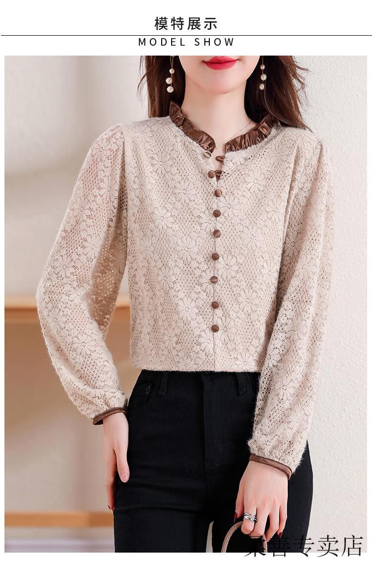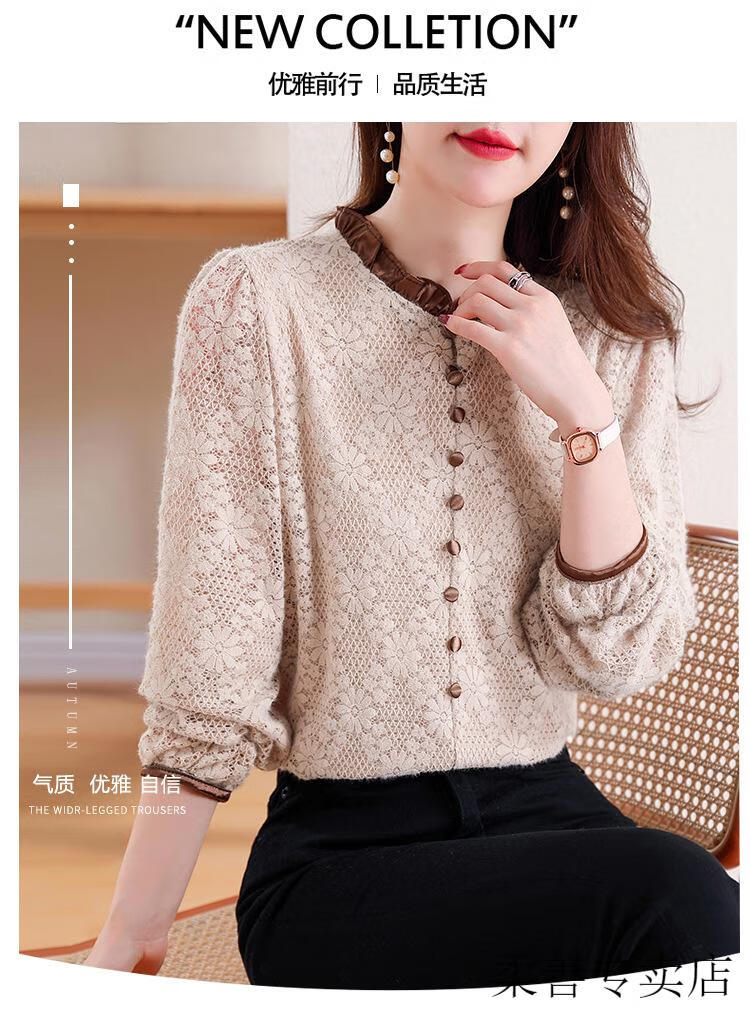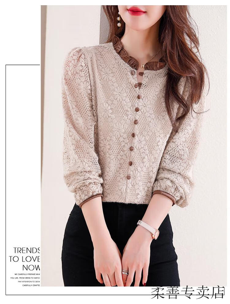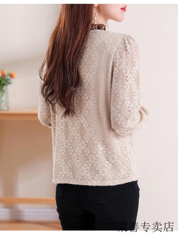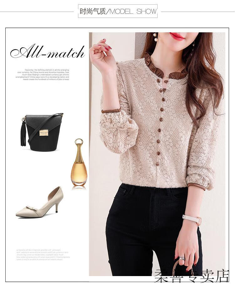 Woodpecker Stand Collar Lace Plus Velvet Thickened Bottoming Shirt Women 20204 Autumn and Winter New Style Age Reducing Top Shirt Cotton Thick Khaki L Recommended 110-119 Jin Jin equals 0.5 kg
