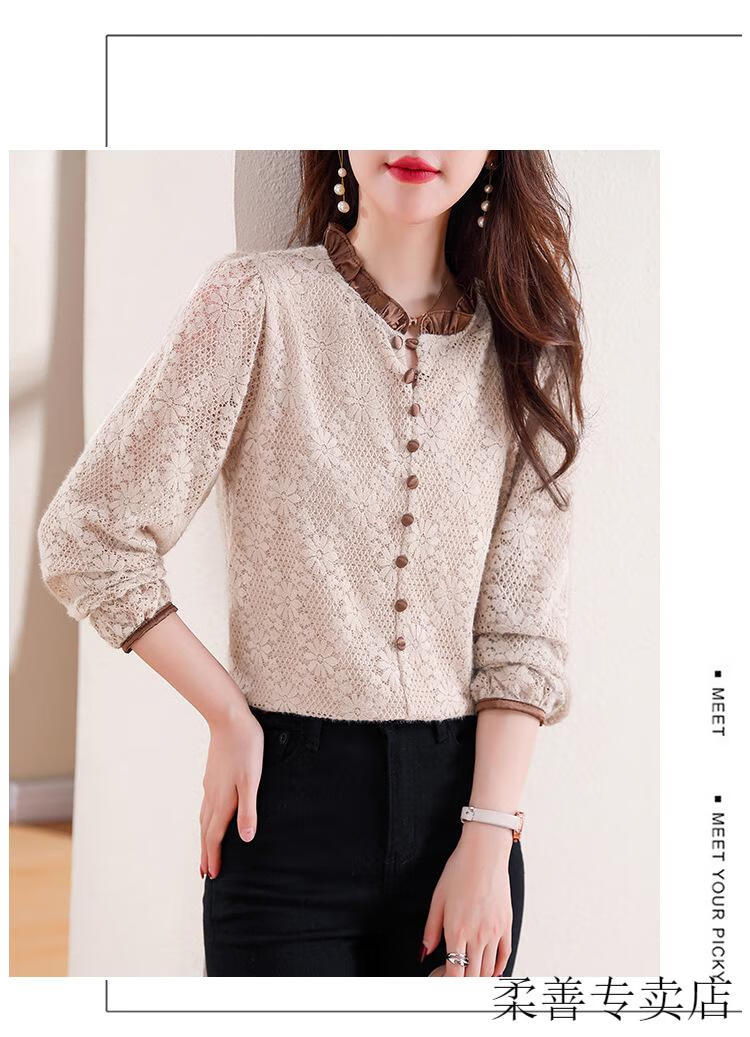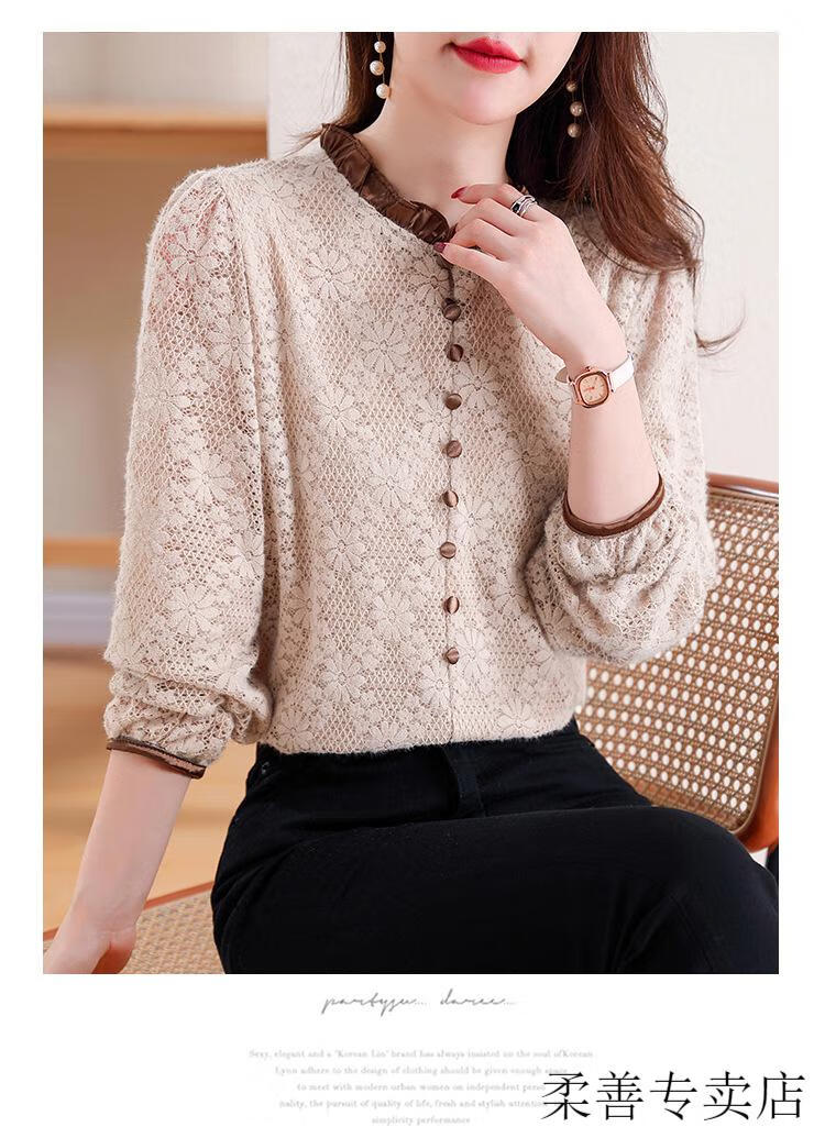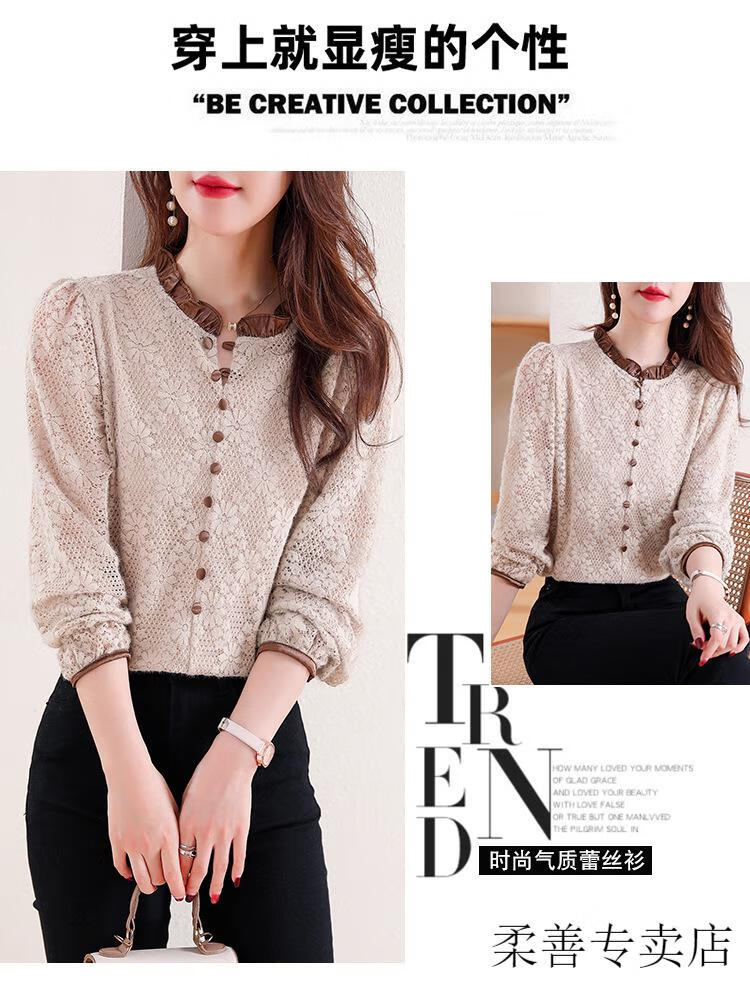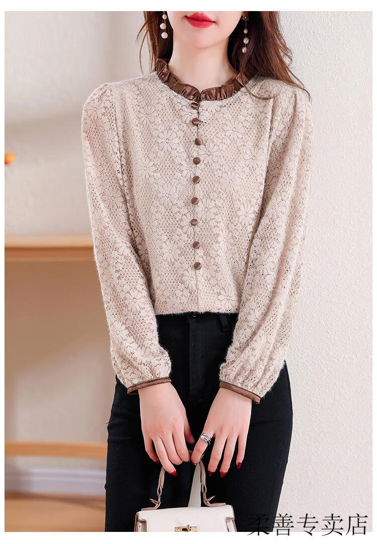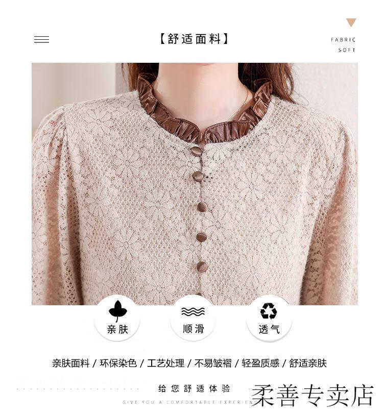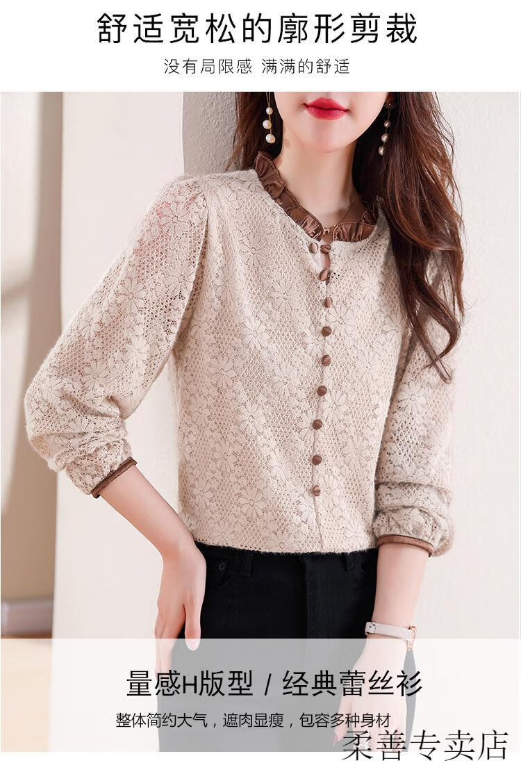 Woodpecker Stand Collar Lace Plus Velvet Thickened Bottoming Shirt Women 20204 Autumn and Winter New Style Age Reducing Top Shirt Cotton Thick Khaki L Recommended 110-119 Jin Jin equals 0.5 kg
