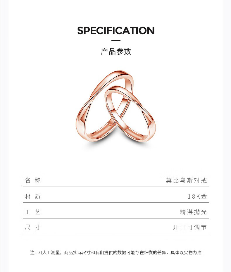 Shixi Möbius ring 18K gold couple ring, a pair of rose gold plain ring tail rings, Chinese Valentine's Day confession gift for girlfriend, K color gold Möbius couple ring, a pair