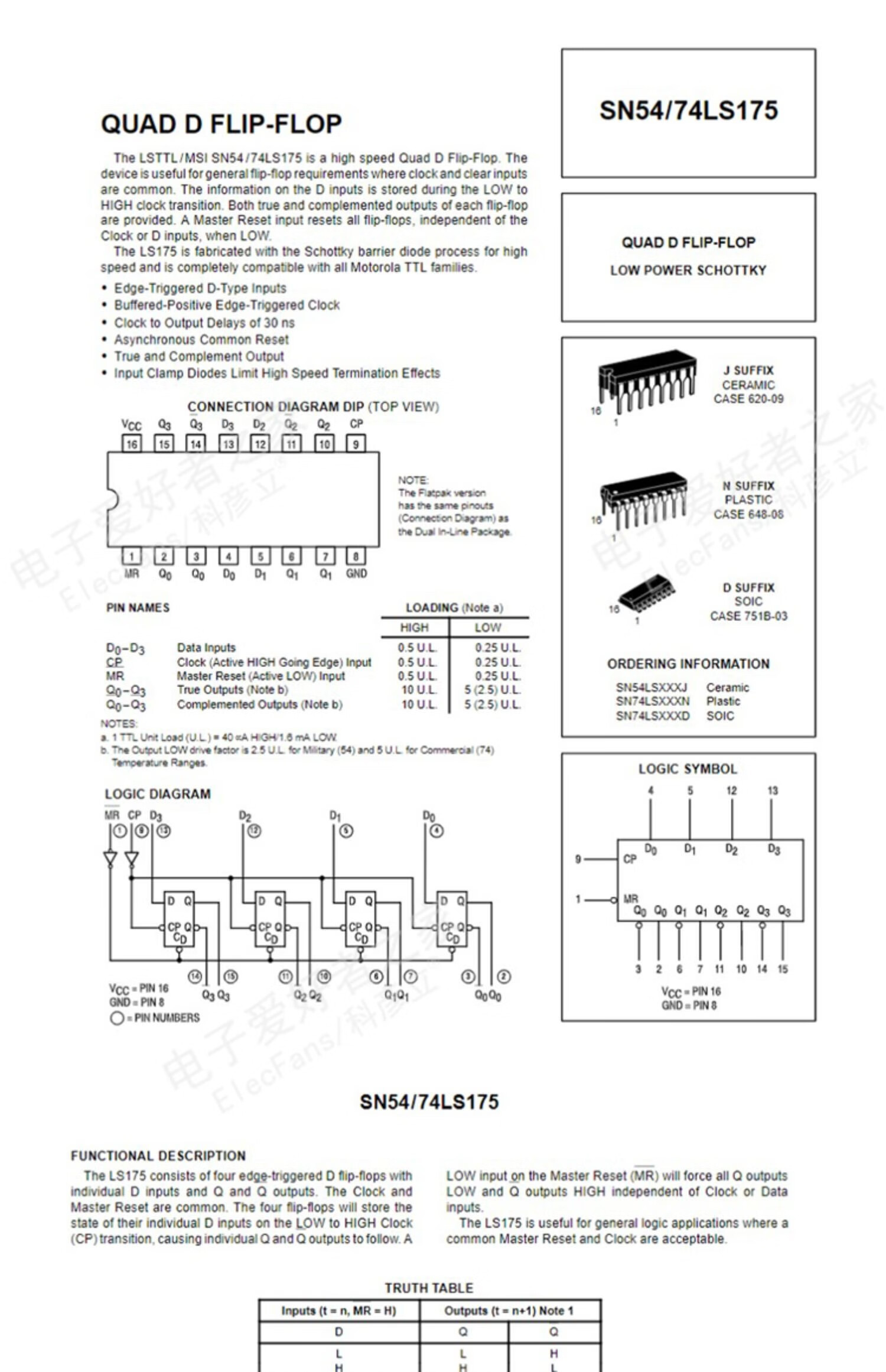 Four-way D-type flip-flop logic chip SN74LS175N (2 pcs) straight plug 74LS175 DIP-16